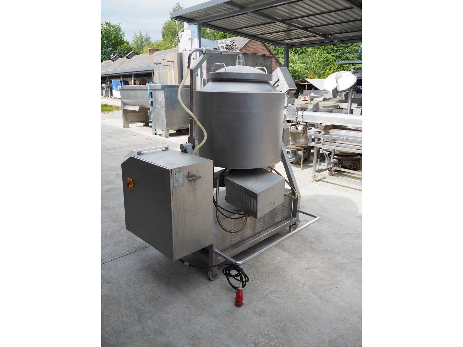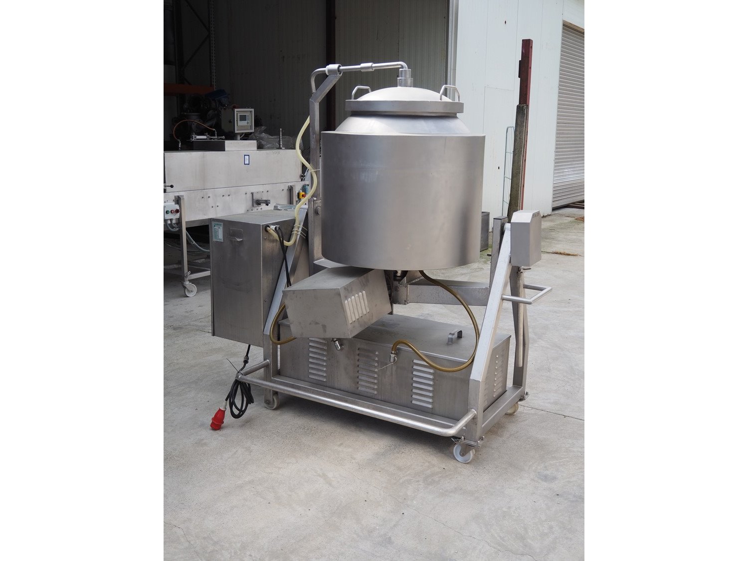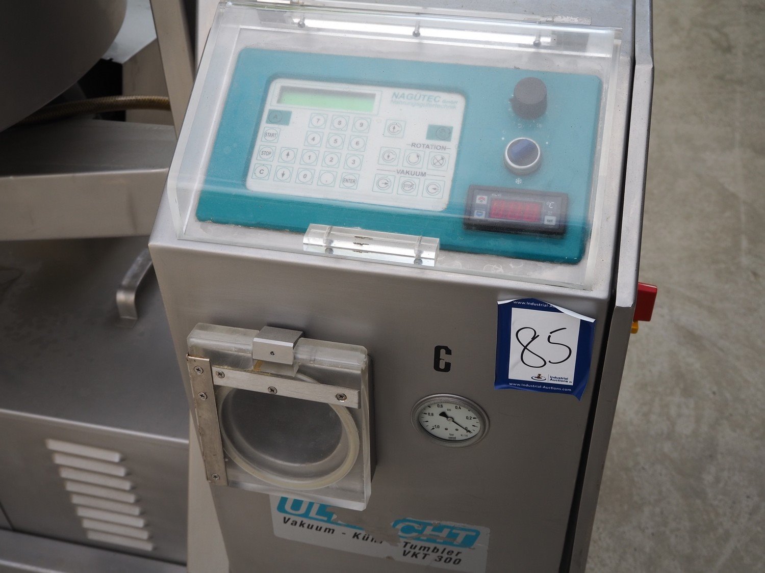 Ulbricht mobile cooled vacuum tumbler, type: KKT 300, machine number: 10108, year of construction: 1994, 380 V, 50 Hz, 8.2/16 A, 3.8 kW, weight: 380 kg, capacity: 300 liter, Busch vacuum pump, type: 021 336, number: 458461, capacity: 508 m³/h, dimensions: 1870 mm x 1050 mm x 1900 mm.