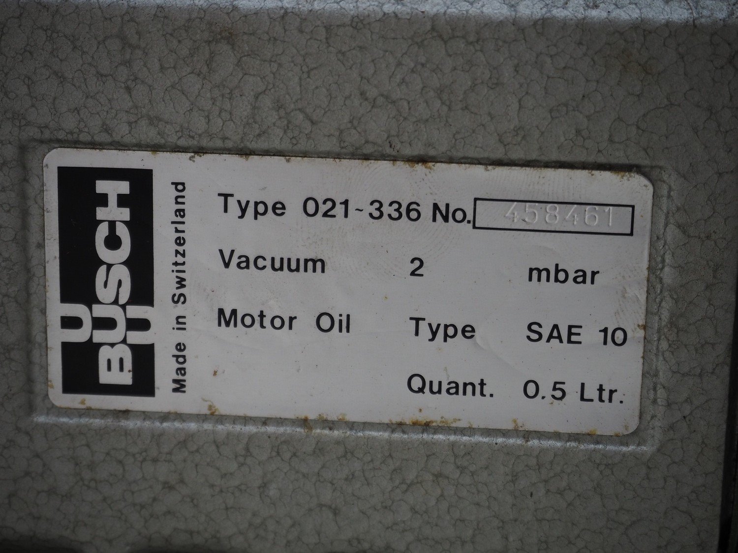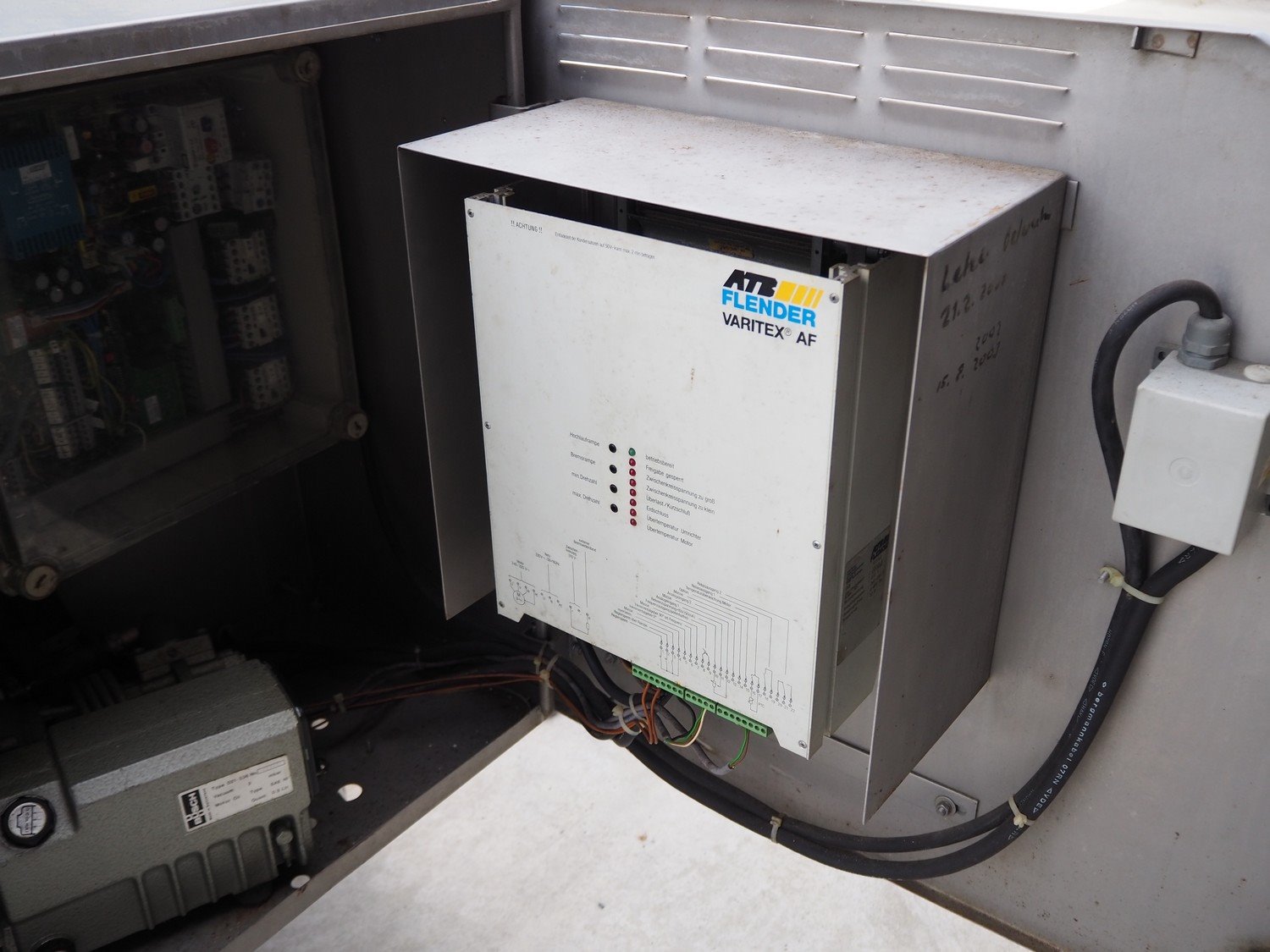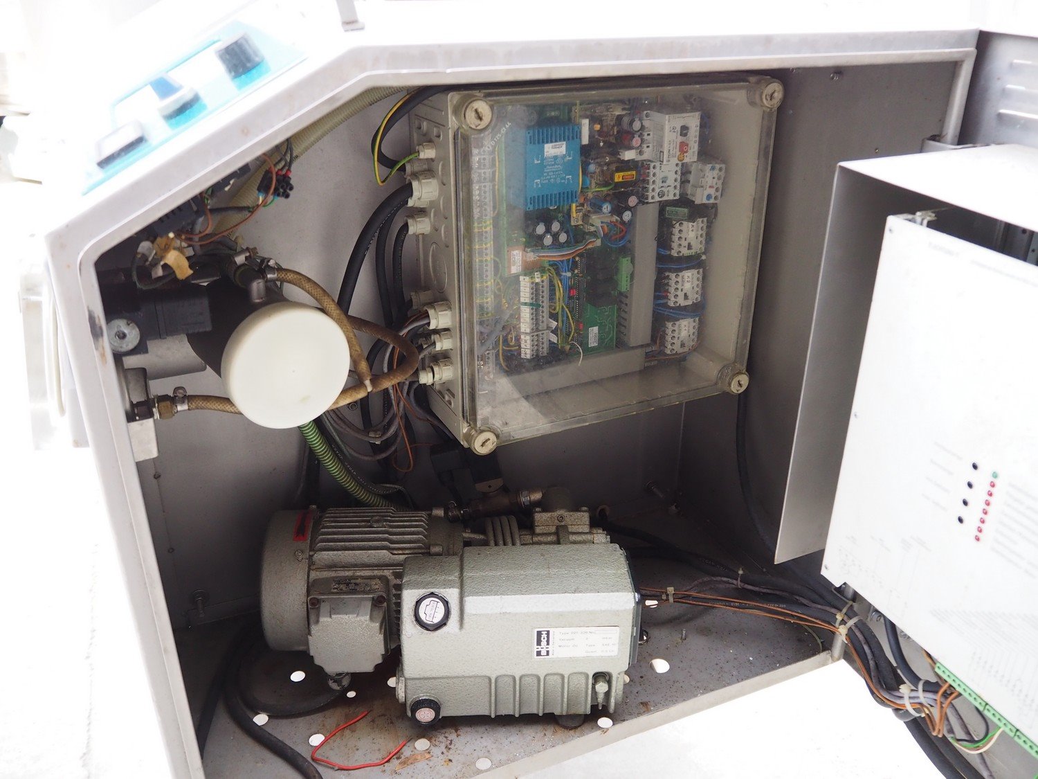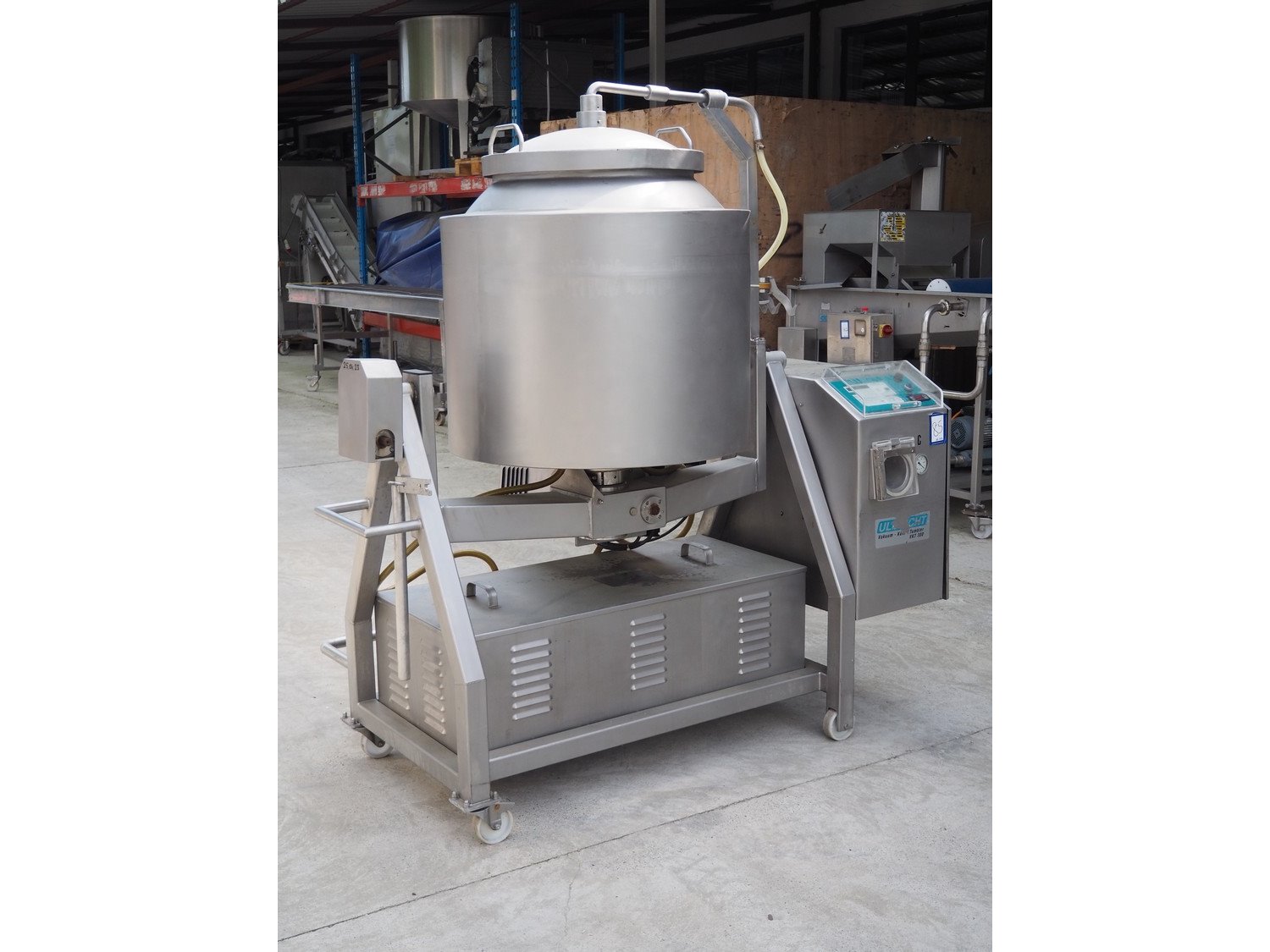 Ulbricht mobile cooled vacuum tumbler, type: KKT 300, machine number: 10108, year of construction: 1994, 380 V, 50 Hz, 8.2/16 A, 3.8 kW, weight: 380 kg, capacity: 300 liter, Busch vacuum pump, type: 021 336, number: 458461, capacity: 508 m³/h, dimensions: 1870 mm x 1050 mm x 1900 mm.