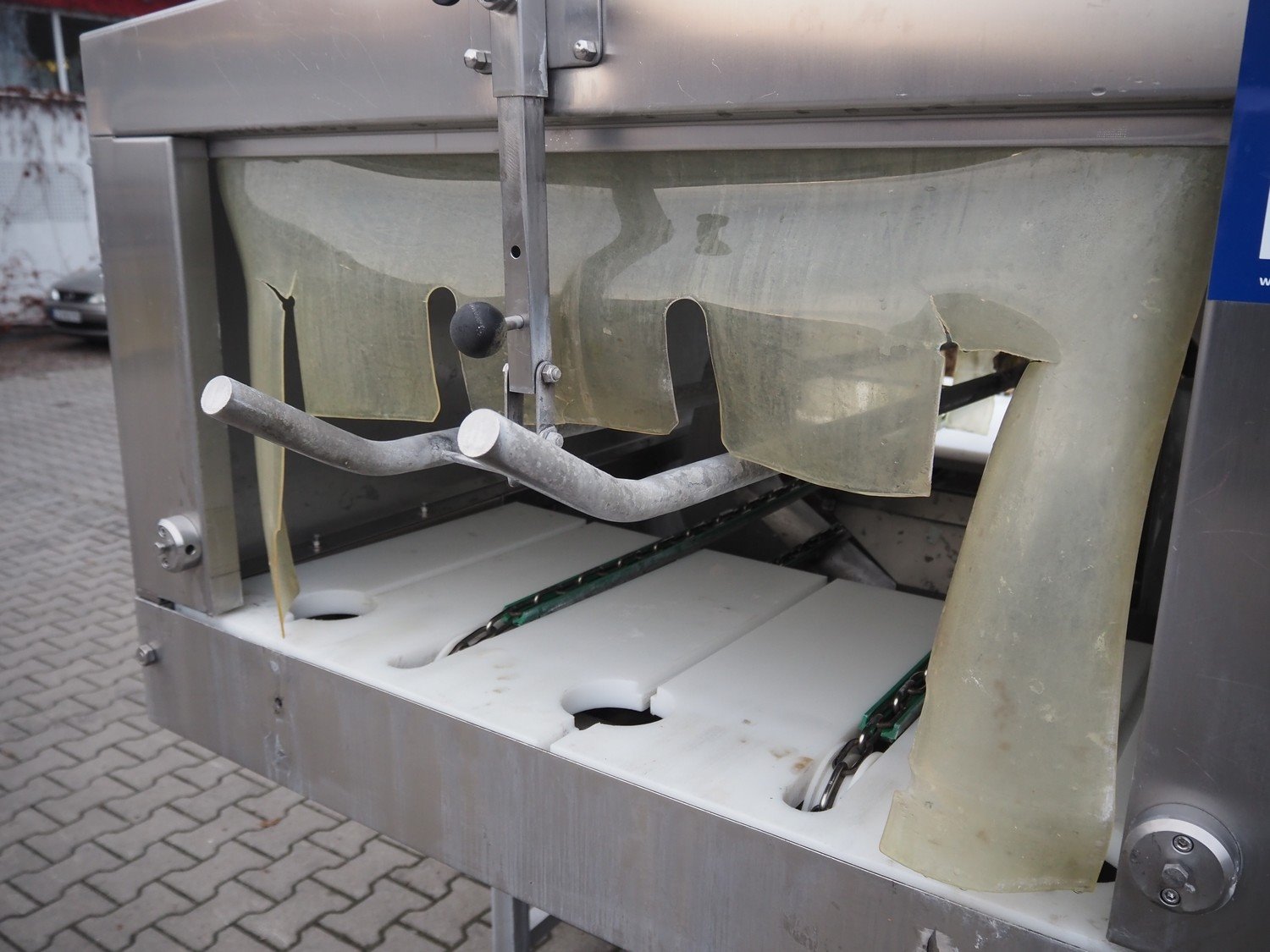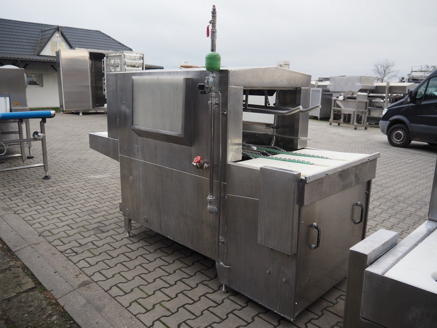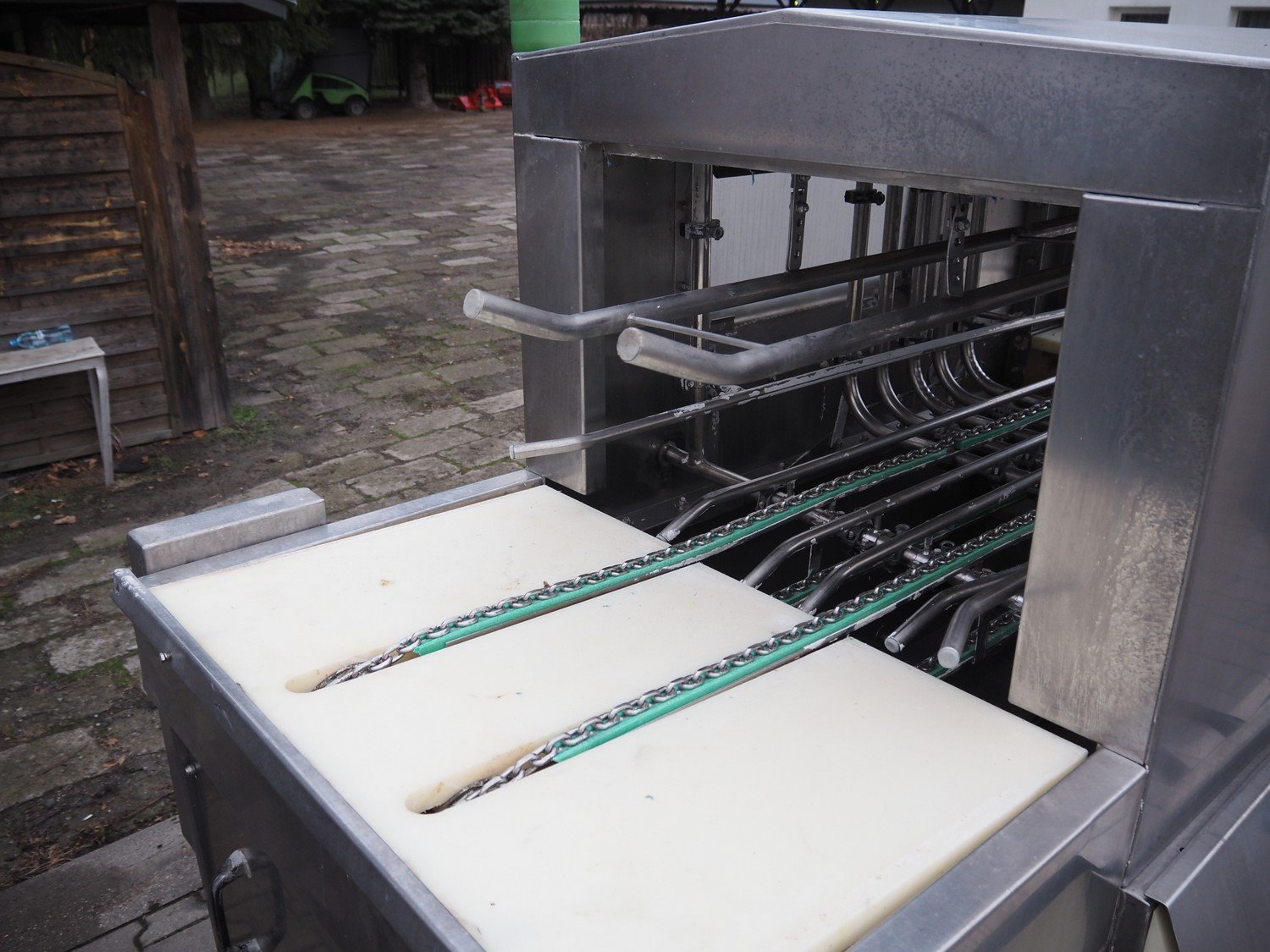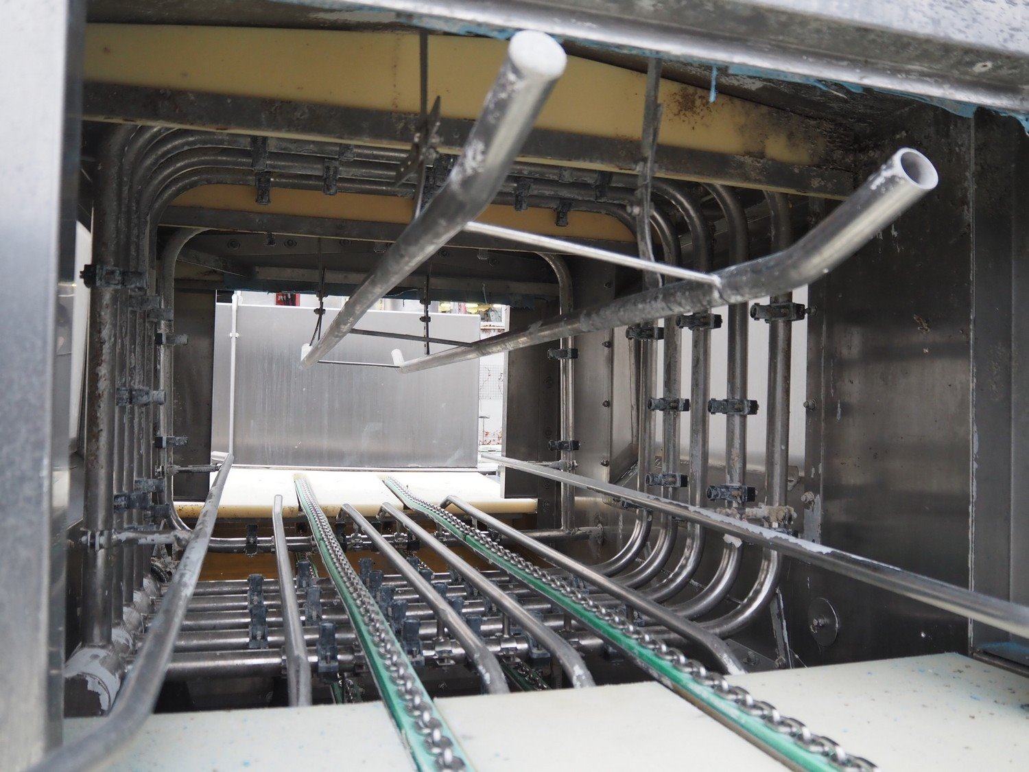 Nieros crate washer and dryer, number: 9028, clearance: 600 mm x 320 mm, total dimensions washer: 2650 mm x 1350 mm x 2000 mm, total dimension dryer: 2400 mm x 1300 mm x 2400 mm. Including in and outfeed belts, plastic rollers, roller width: 640 mm, total dimensions: 2000 mm x 750 mm x 700 mm and 3000 mm x 1700 mm.