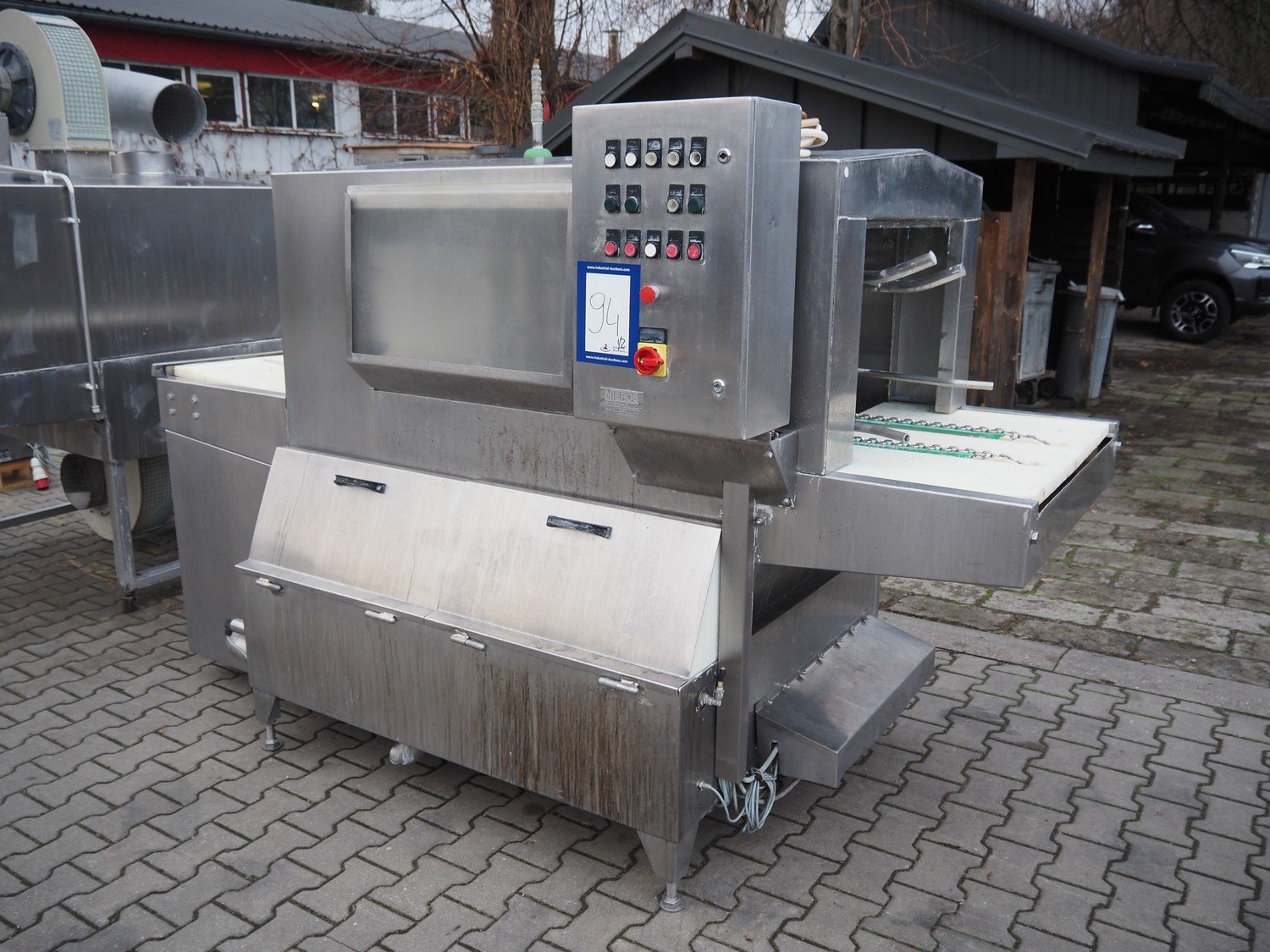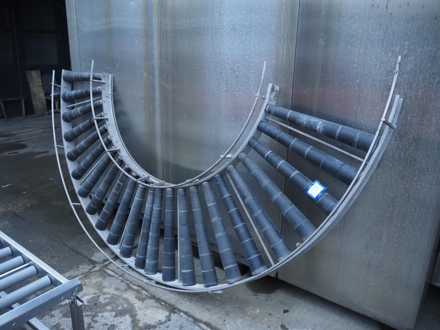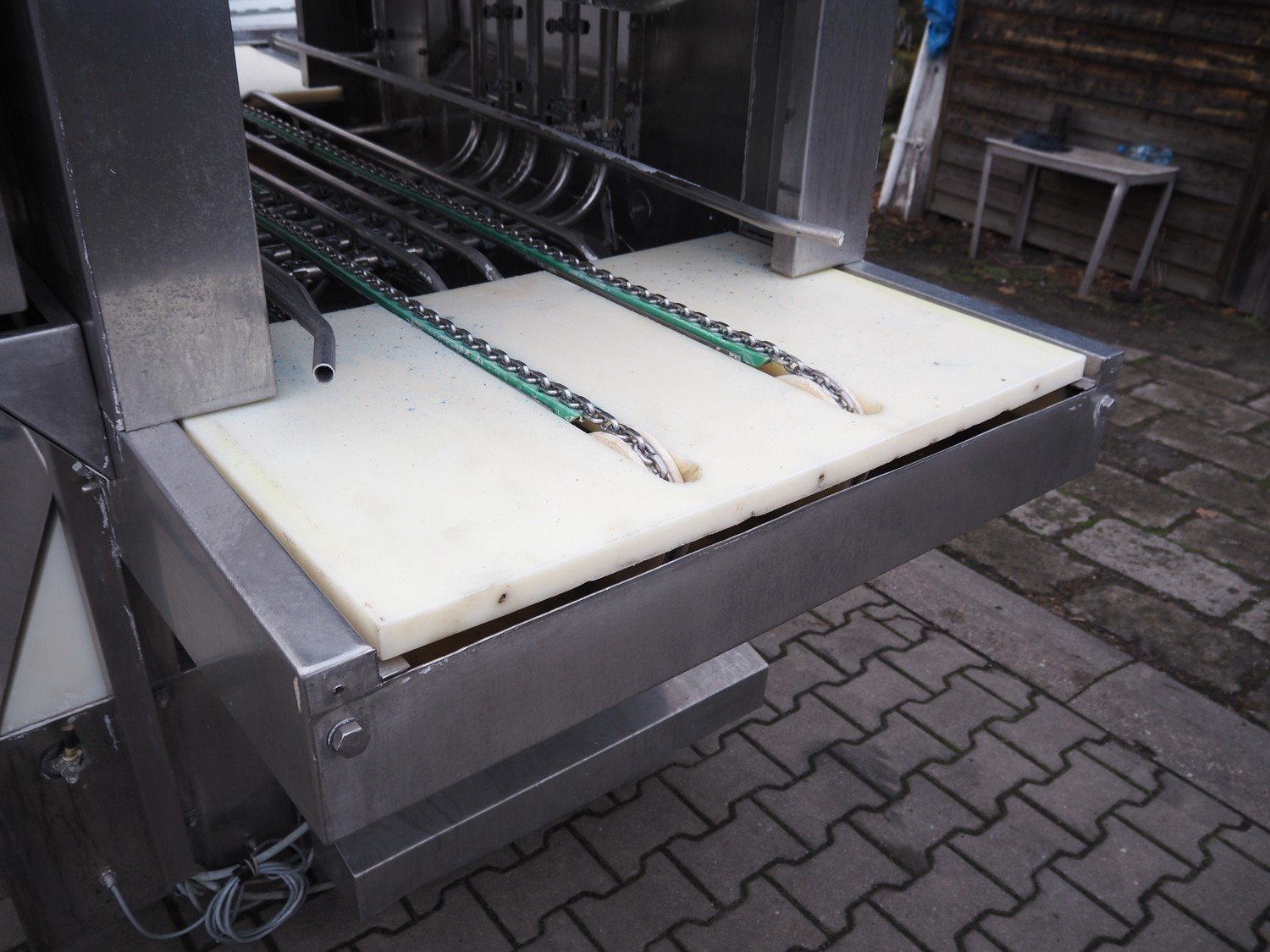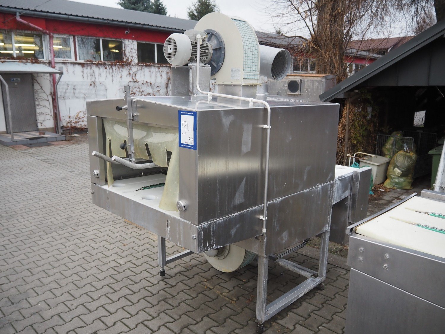 Nieros crate washer and dryer, number: 9028, clearance: 600 mm x 320 mm, total dimensions washer: 2650 mm x 1350 mm x 2000 mm, total dimension dryer: 2400 mm x 1300 mm x 2400 mm. Including in and outfeed belts, plastic rollers, roller width: 640 mm, total dimensions: 2000 mm x 750 mm x 700 mm and 3000 mm x 1700 mm.