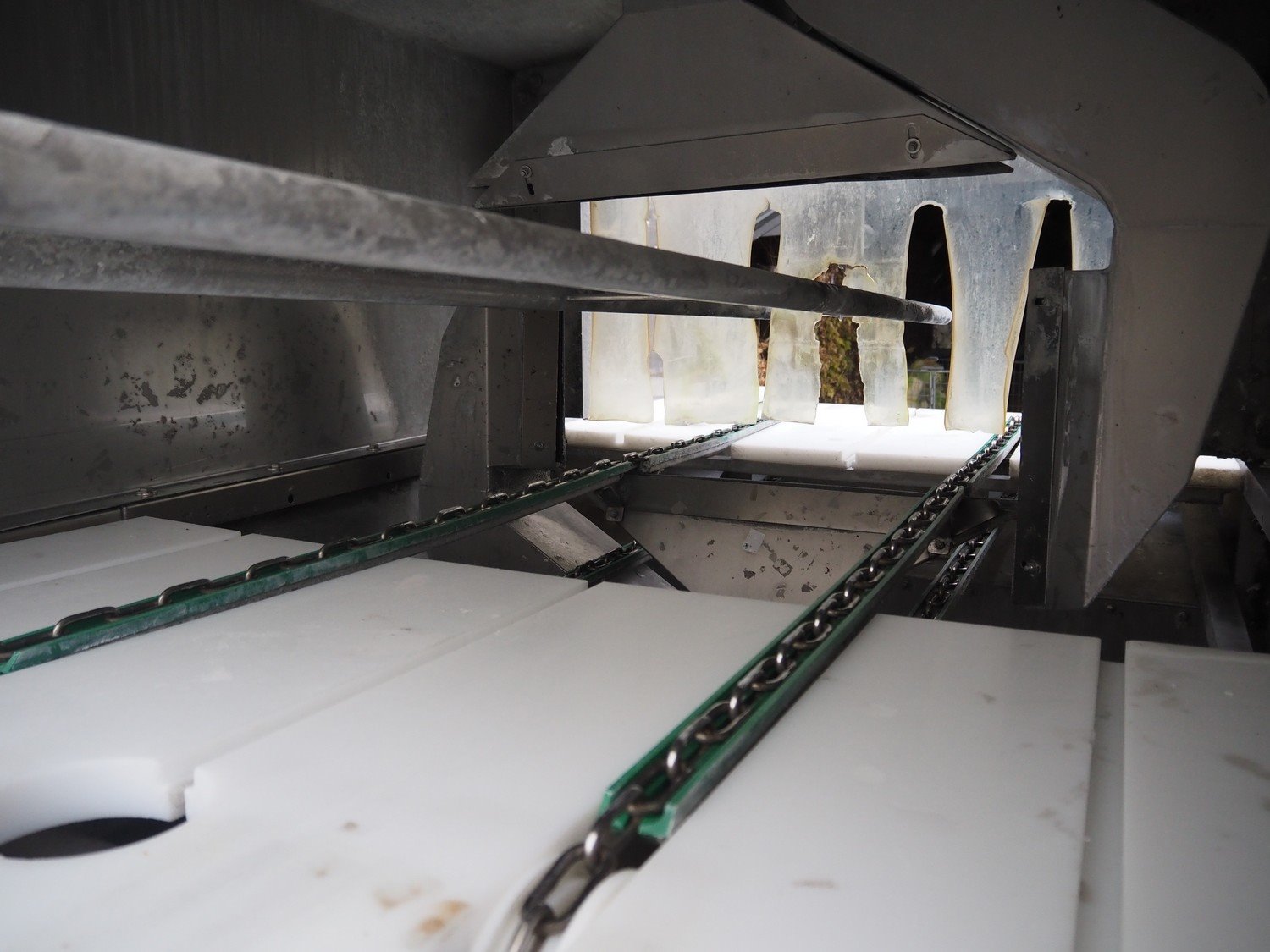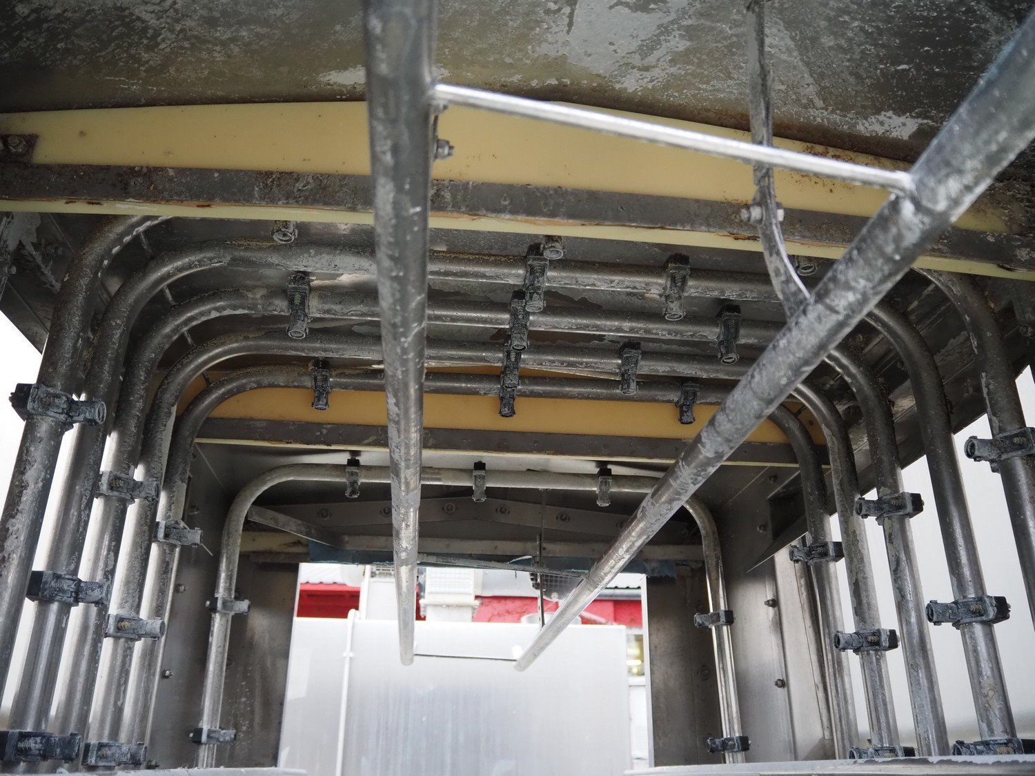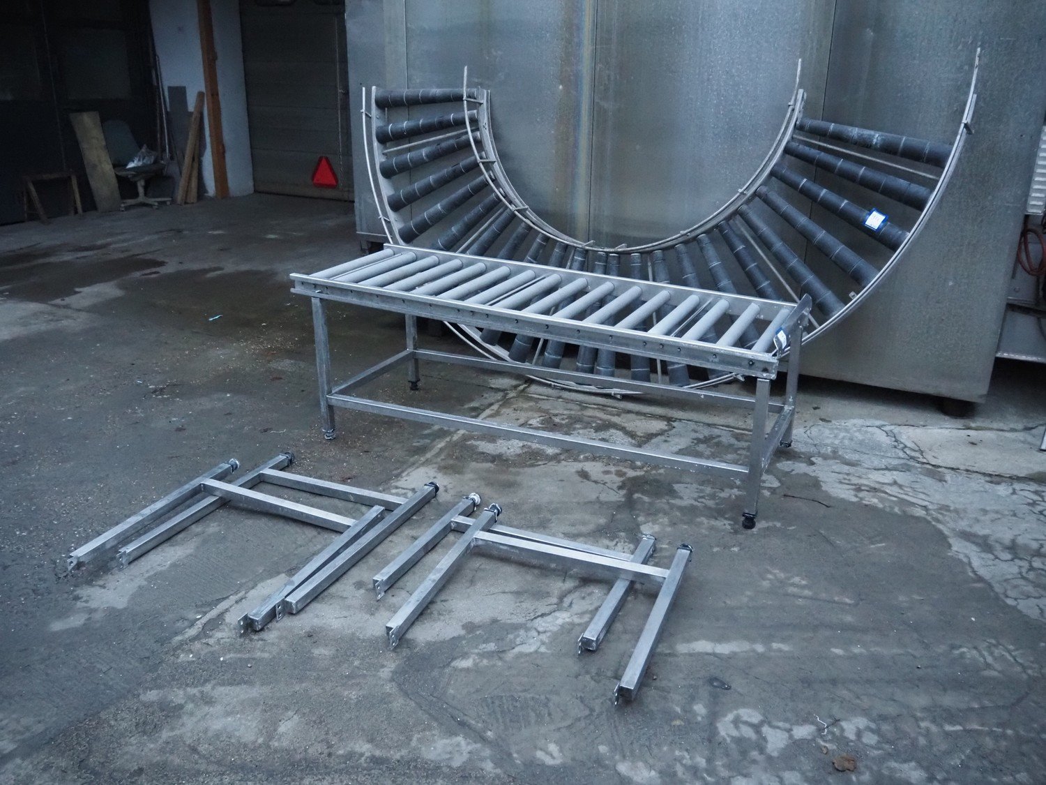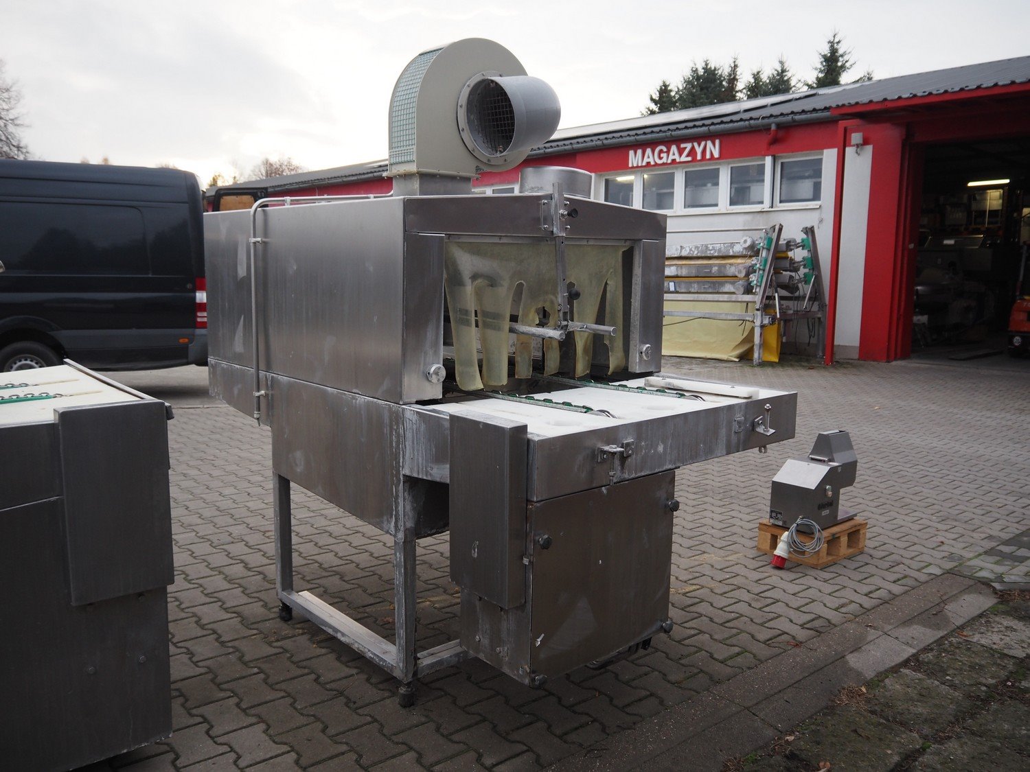 Nieros crate washer and dryer, number: 9028, clearance: 600 mm x 320 mm, total dimensions washer: 2650 mm x 1350 mm x 2000 mm, total dimension dryer: 2400 mm x 1300 mm x 2400 mm. Including in and outfeed belts, plastic rollers, roller width: 640 mm, total dimensions: 2000 mm x 750 mm x 700 mm and 3000 mm x 1700 mm.
