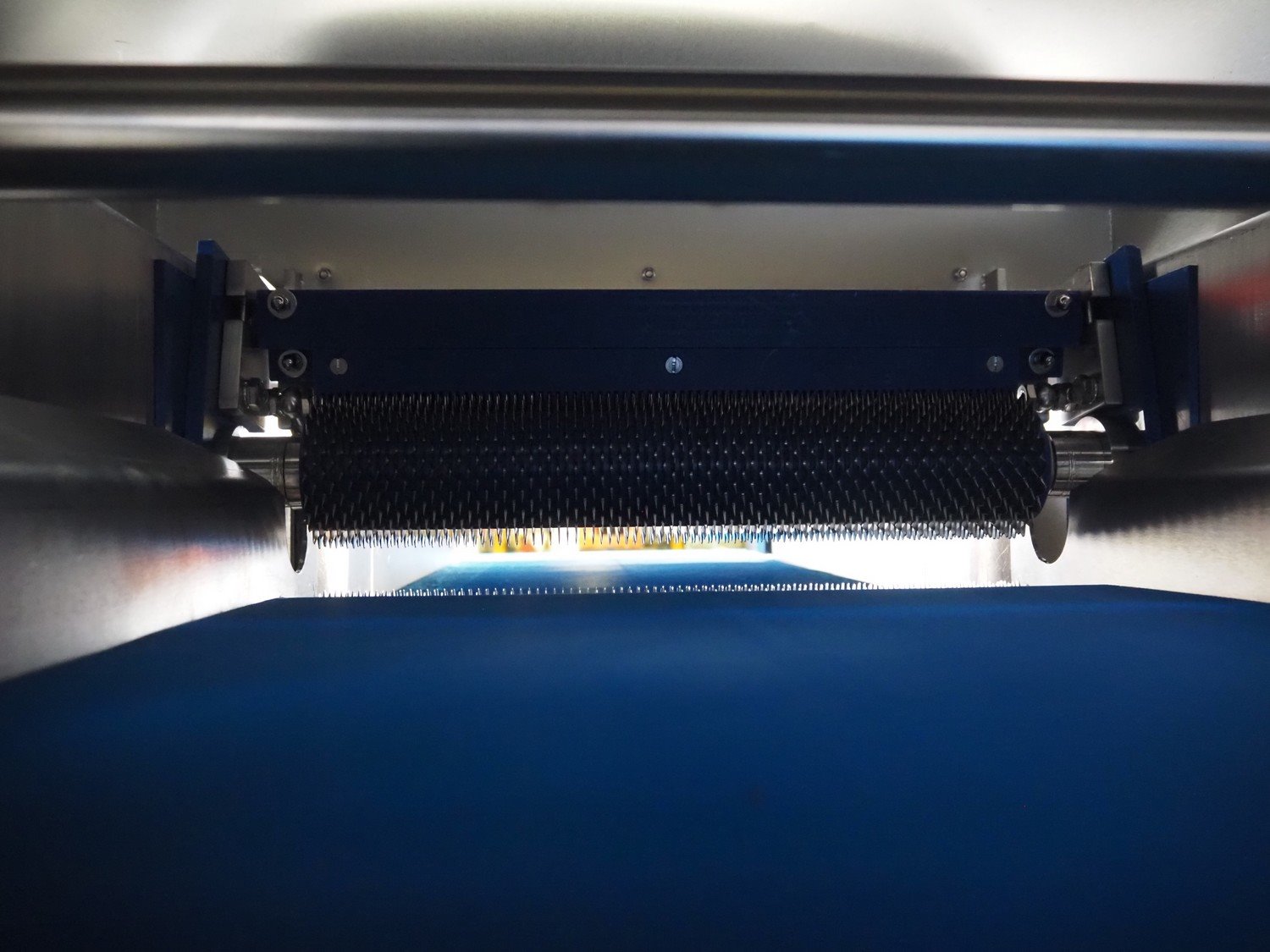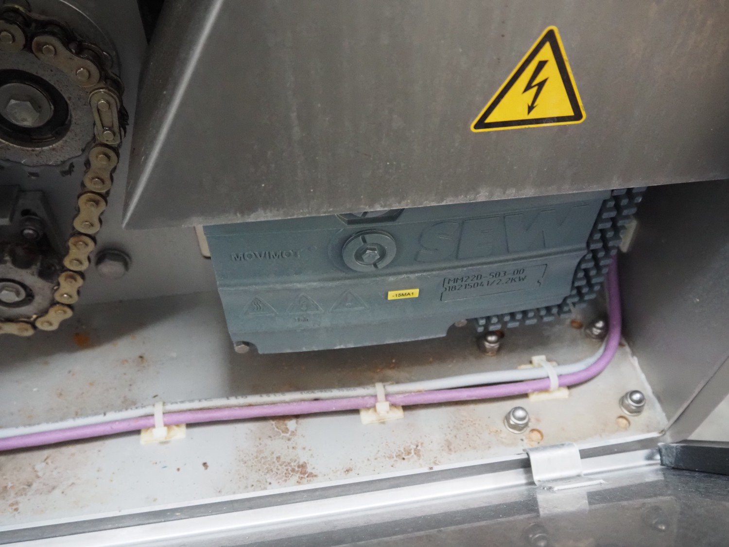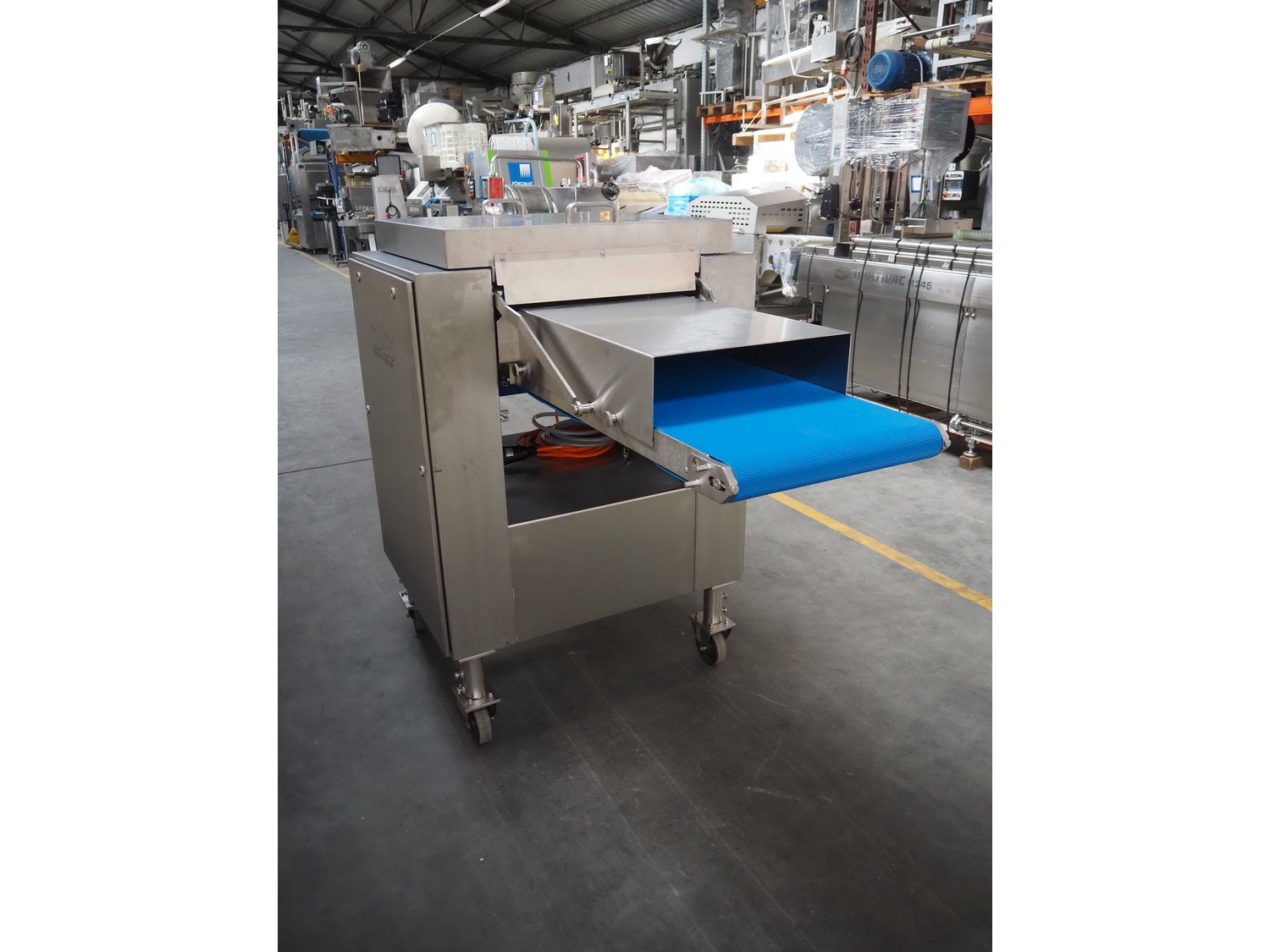 Glass mobile tenderizer, type: GSS-400, number: 4464, year of construction: 2023, 400 V, 3 Ph, 50 Hz, 5.2 A, 2.3 kW, weight: 400 kg, plastic belt, belt width: 440 mm, working width: 420 mm, total dimensions: 2750 mm x 960 mm x 1440 mm.