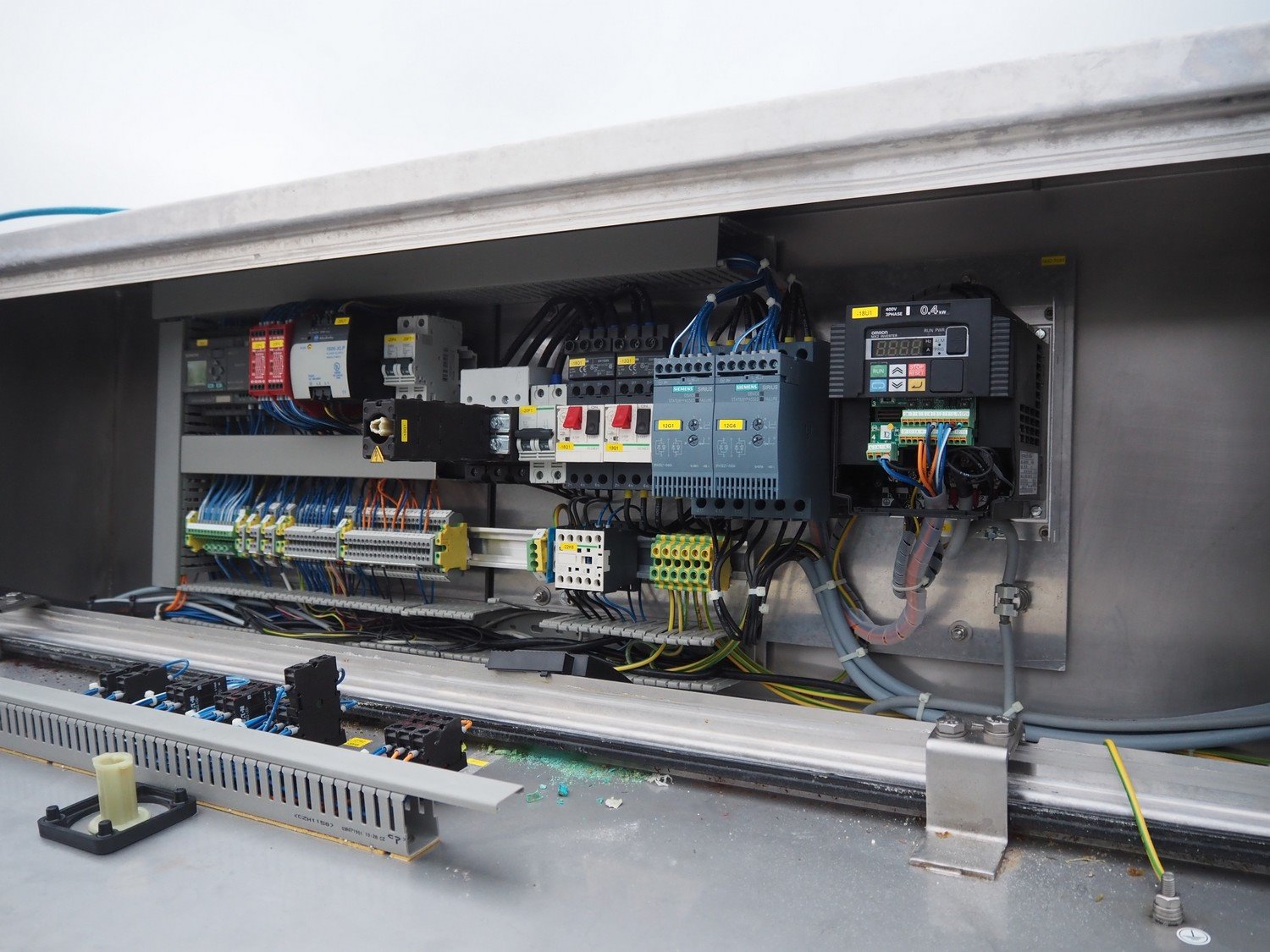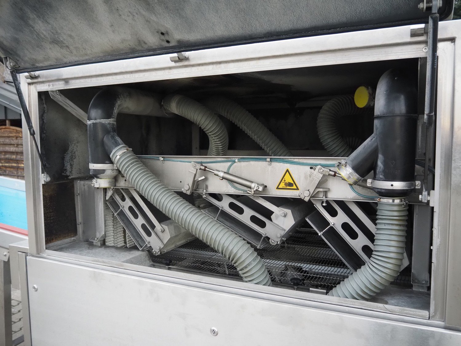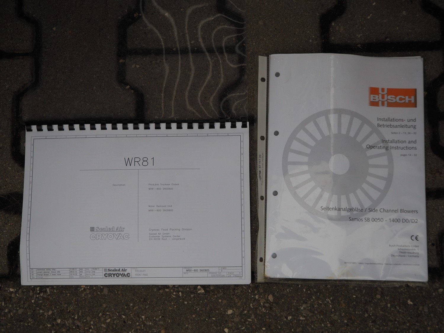 Cryovac dryer, model: WR81-800, serial number: SN00805, s/s mesh belt, belt width: 800 mm, clearance: 800 mm x 300 mm, total dimensions: 2100 mm x 1400 mm x 1700 mm.