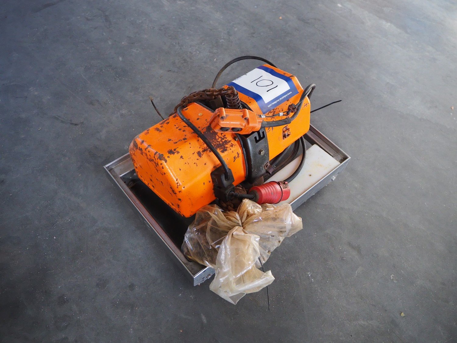 Hitachi electric chain hoist, type: 1FH, number: 9203278006L, lifting height: 6000 mm, weight: 47 kg, maximum capacity: 1000 kg, total dimensions: 500 mm x 250 mm x 200 mm.
