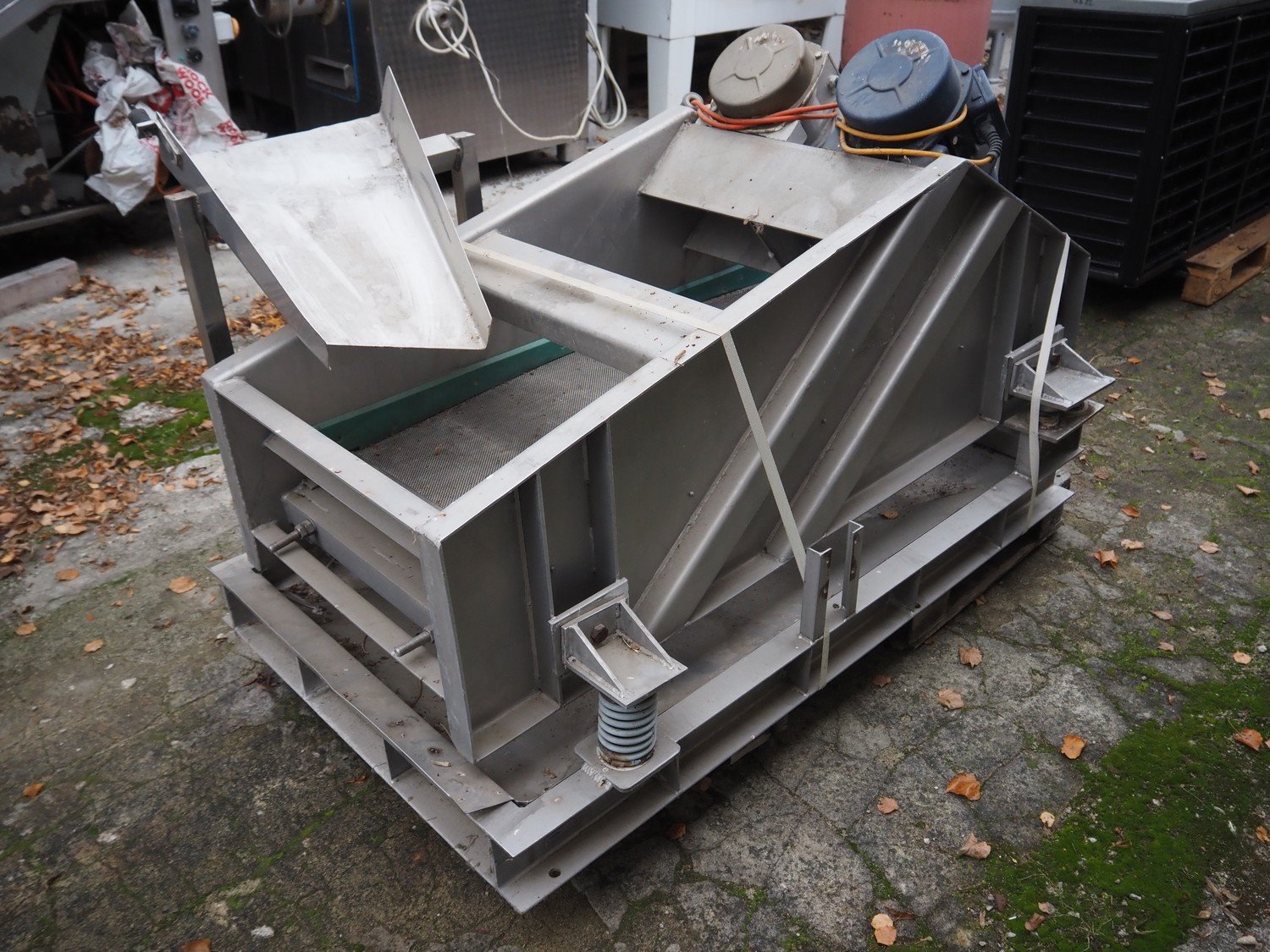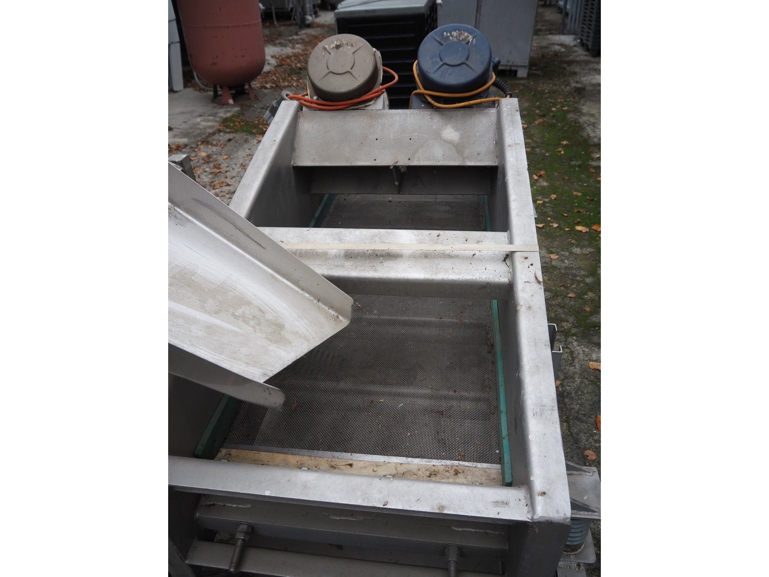 S/s vibrating gutter with filter, gutter width: 580 mm, perforations: 2 mm, total dimensions: 1900 mm x 1000 mm x 1100 mm.