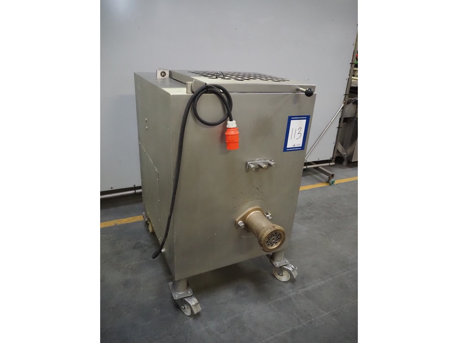 Kolbe mobile paddle mixer-grinder, machine number: 125131, diameter plate: 98 mm, total dimensions: 1140 mm x 770 mm x 1320 mm.