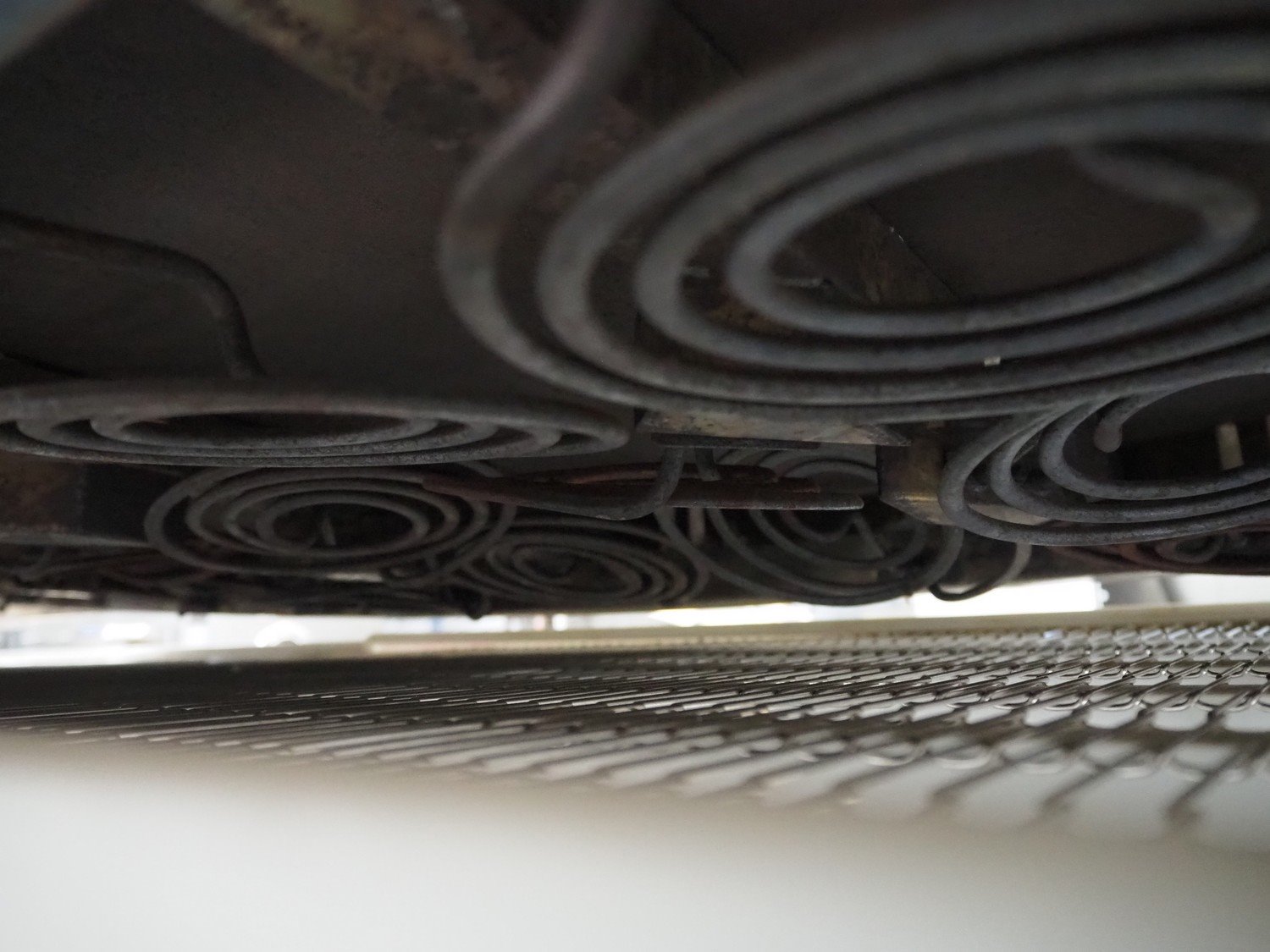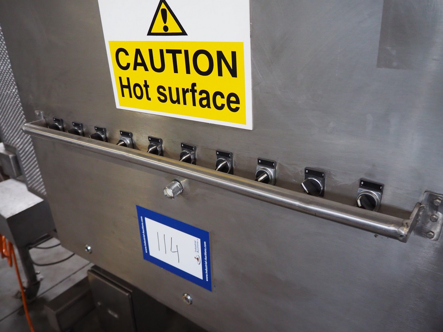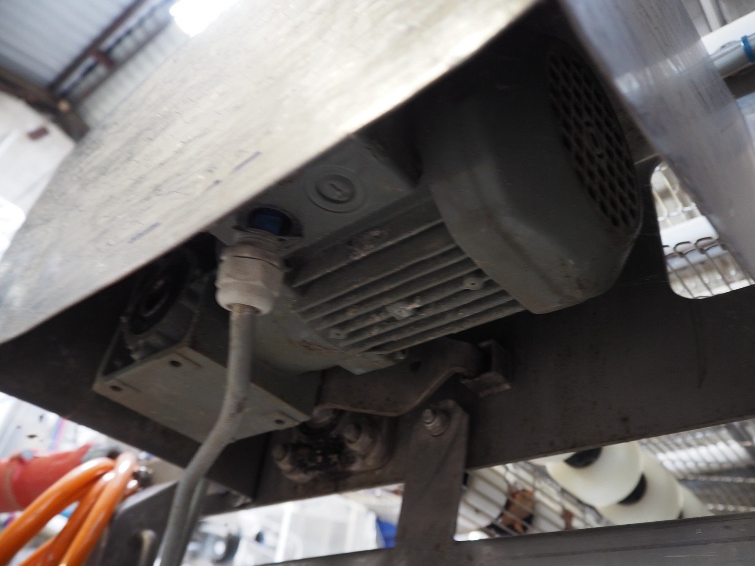 Mobile s/s top grilling belt, grilling surface: 1800 mm x 600 mm, mobile transport belt, s/s frame, s/s mesh belt, belt width: 600 mm, dimensions grilling machine: 2250 mm x 1200 mm x 1900 mm, dimensions transport belt: 3850 mm x 900 mm x 950 mm.