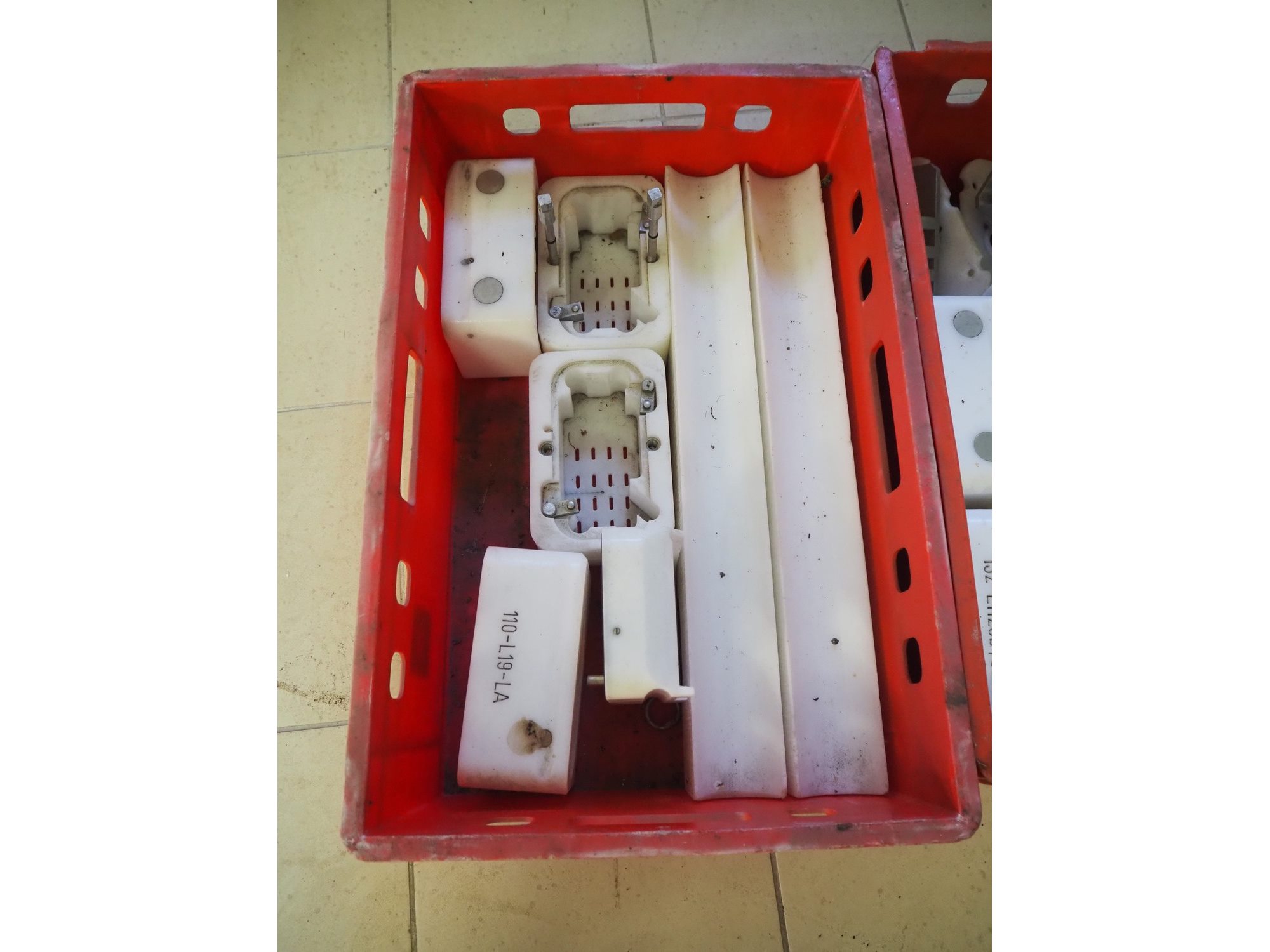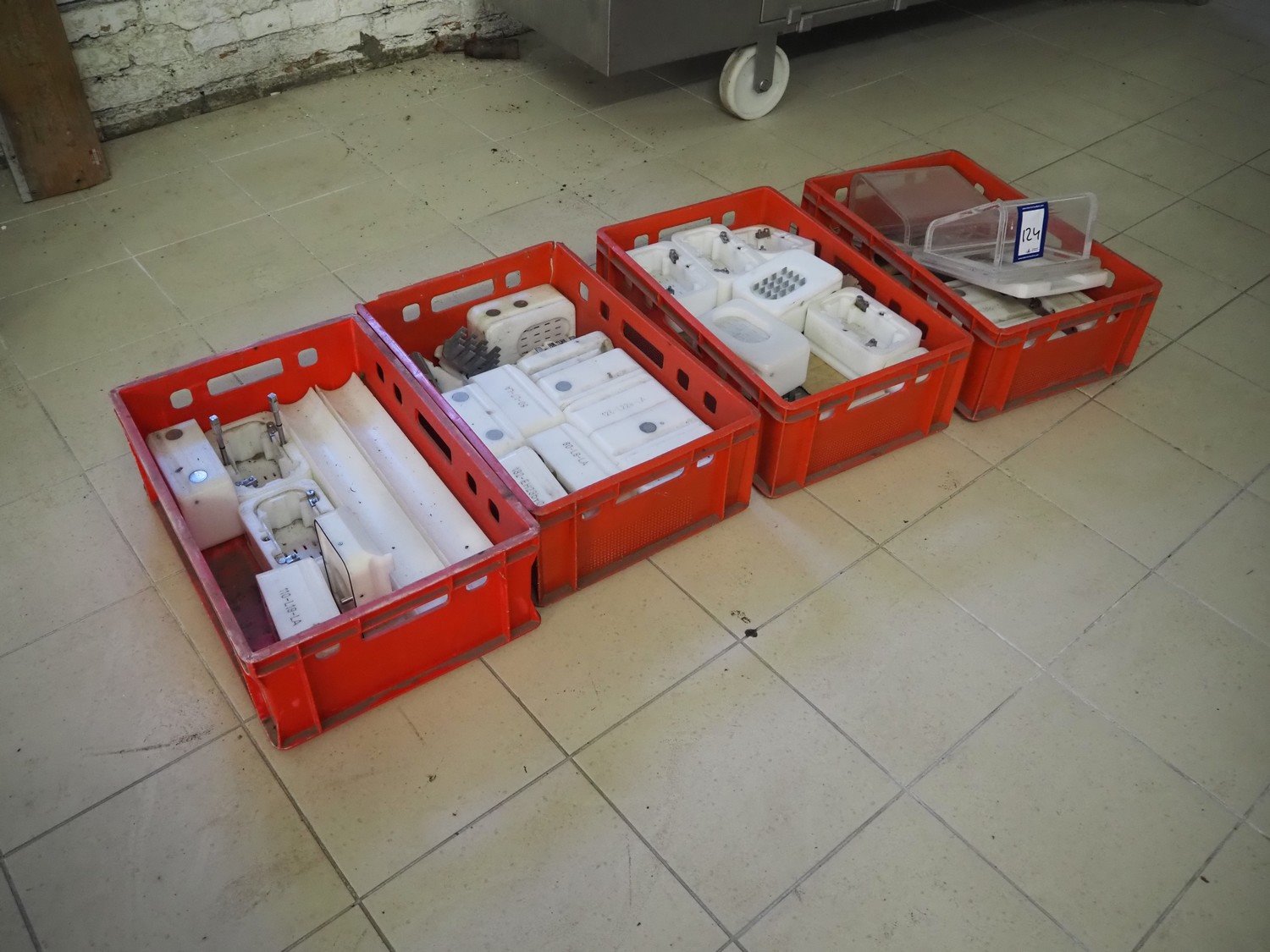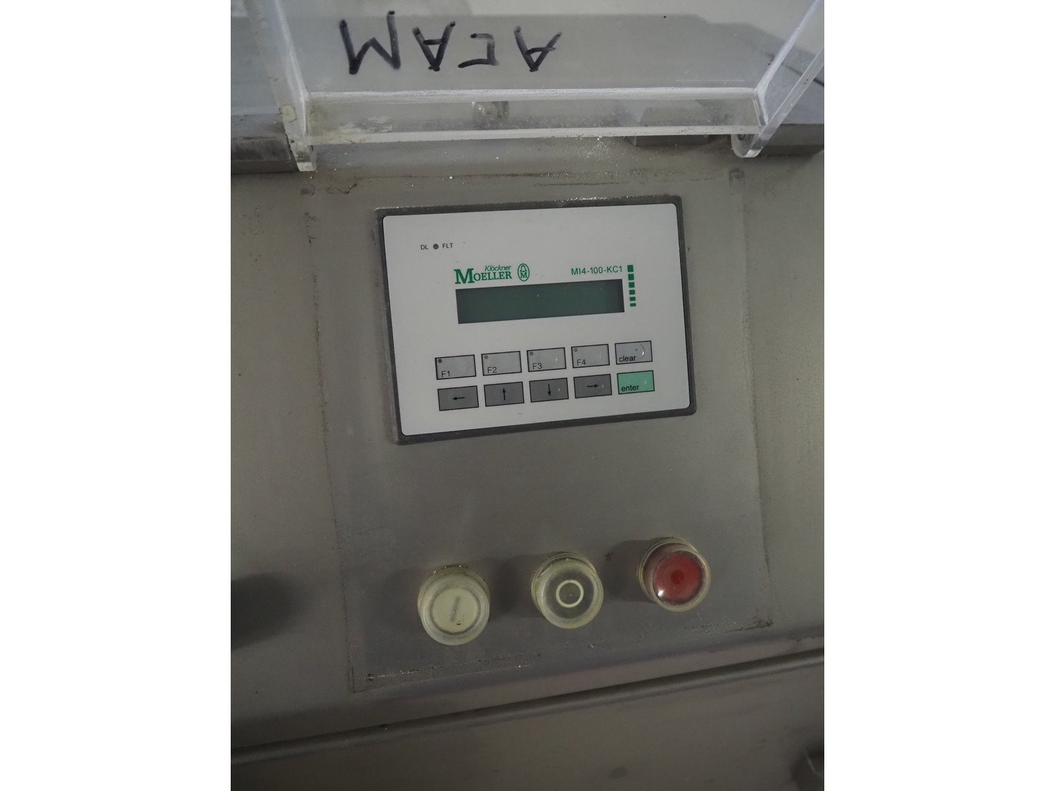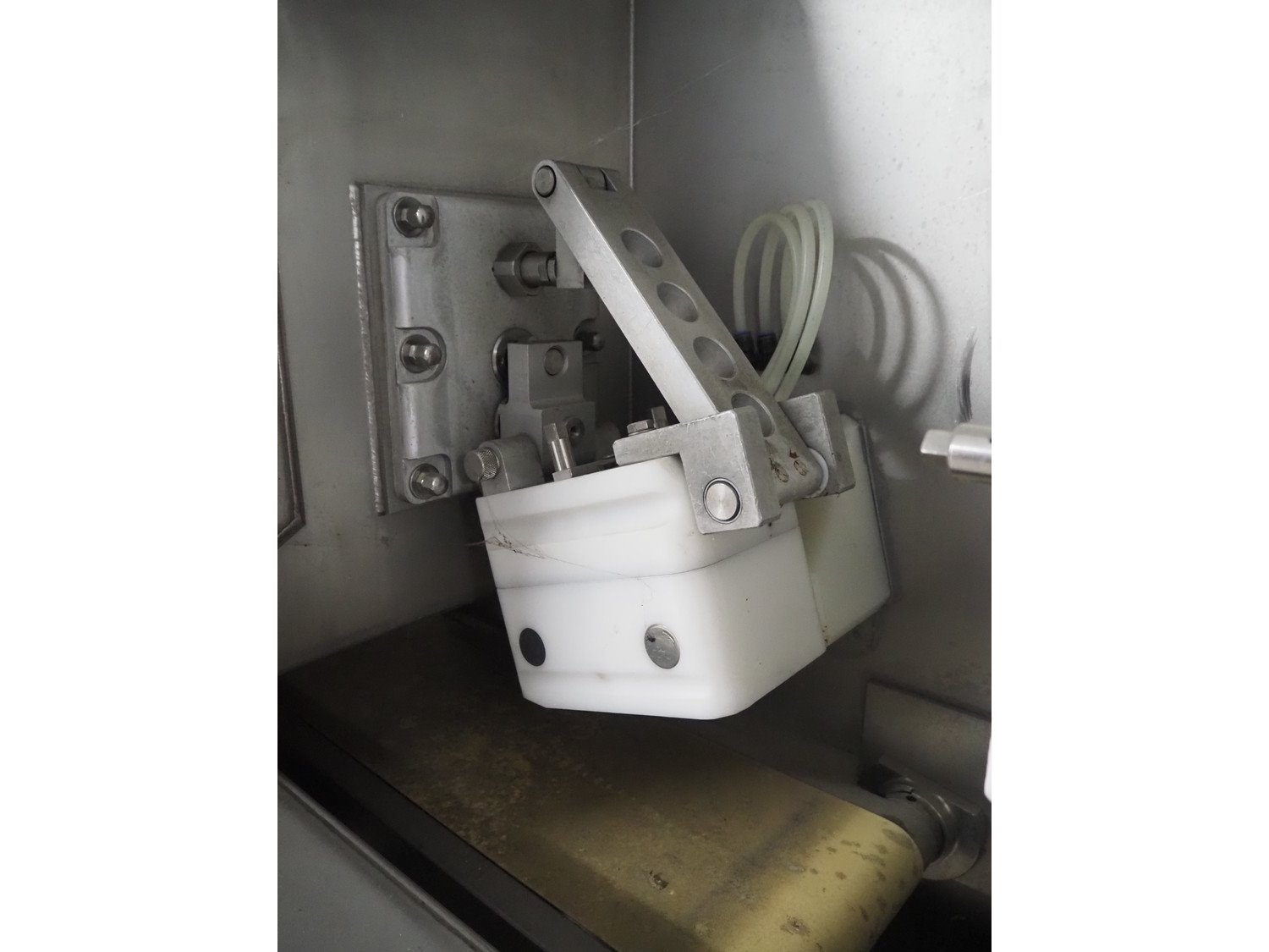 Maja mobile portioning machine, type: FPS 40, serial number: 40927, year of construction: 1999, 400 V, 50 Hz, 3 Ph, 630 kg, capacity: 40-60 pieces per minute, weight range: 11-700 g, plastic belt, belt width: 200 mm, Busch vacuum pump, type: RC 0025 E 501, number: 03013682, capacity: 25 m³ per hour, total dimensions: 2870 mm x 720 mm x 1170 mm. Including crates with extra parts.
