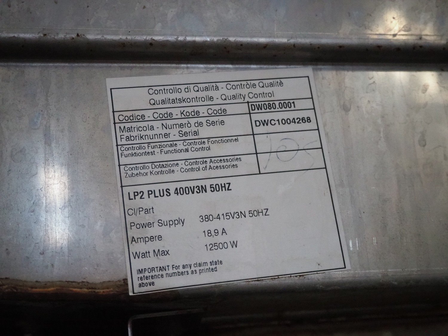DIHR ALI SPA dishwasher, type: LP2 Plus, machine number: DWC 1004268, year of construction: 2008, 380-415 V, 3 Ph, 50 Hz, 18.9 A, 12500 W, inside dimensions: 700 mm x 700 mm x 600 mm, total dimensions: 840 mm x 930 mm x 1800 mm.