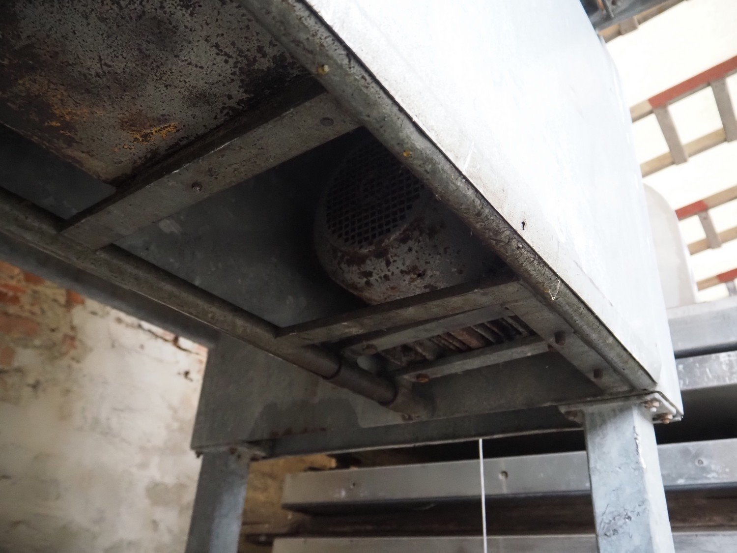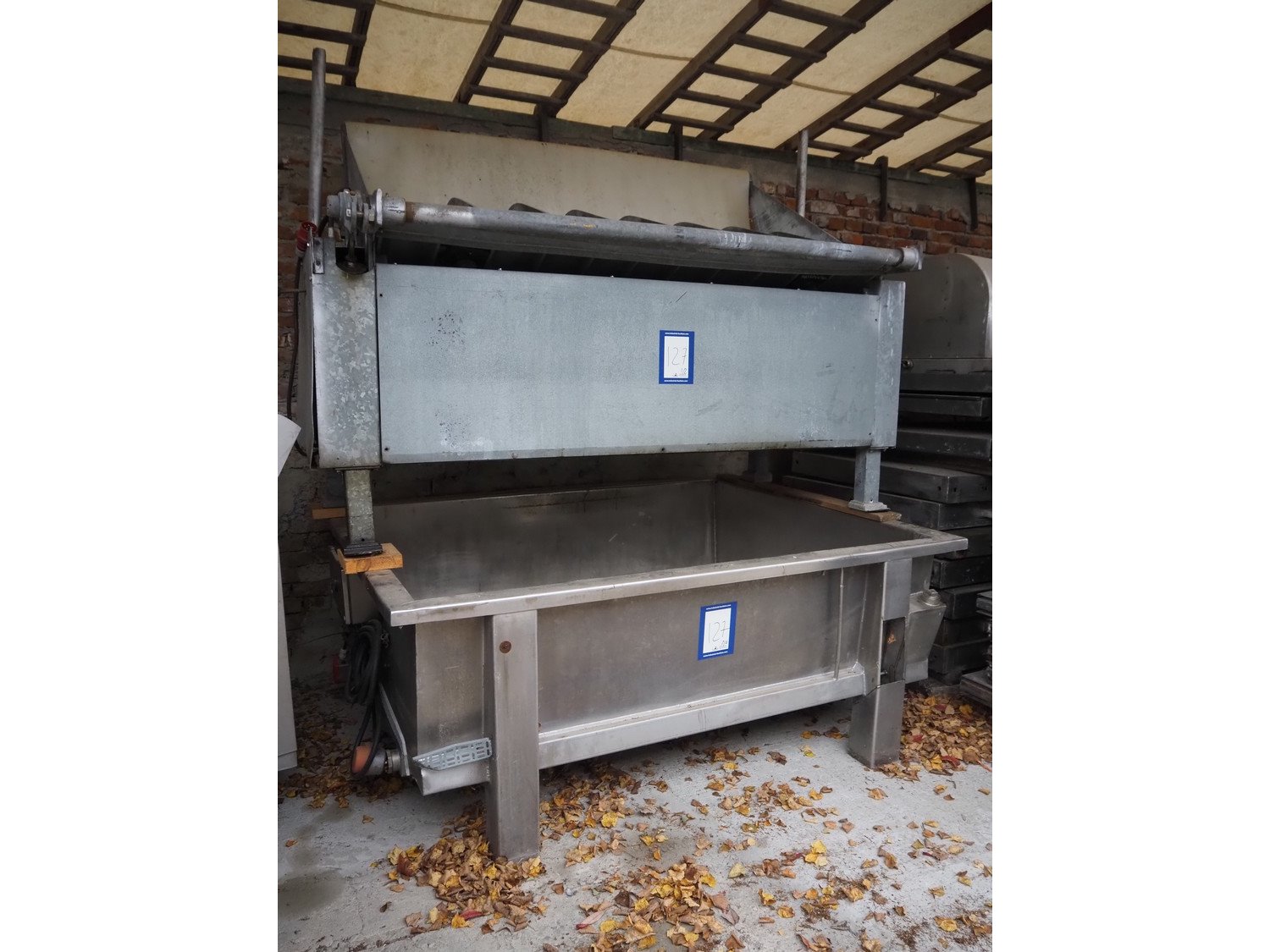 Dehairing machine, working width: 1950 mm, total dimensions: 2300 mm x 1800 mm x 2800 mm.