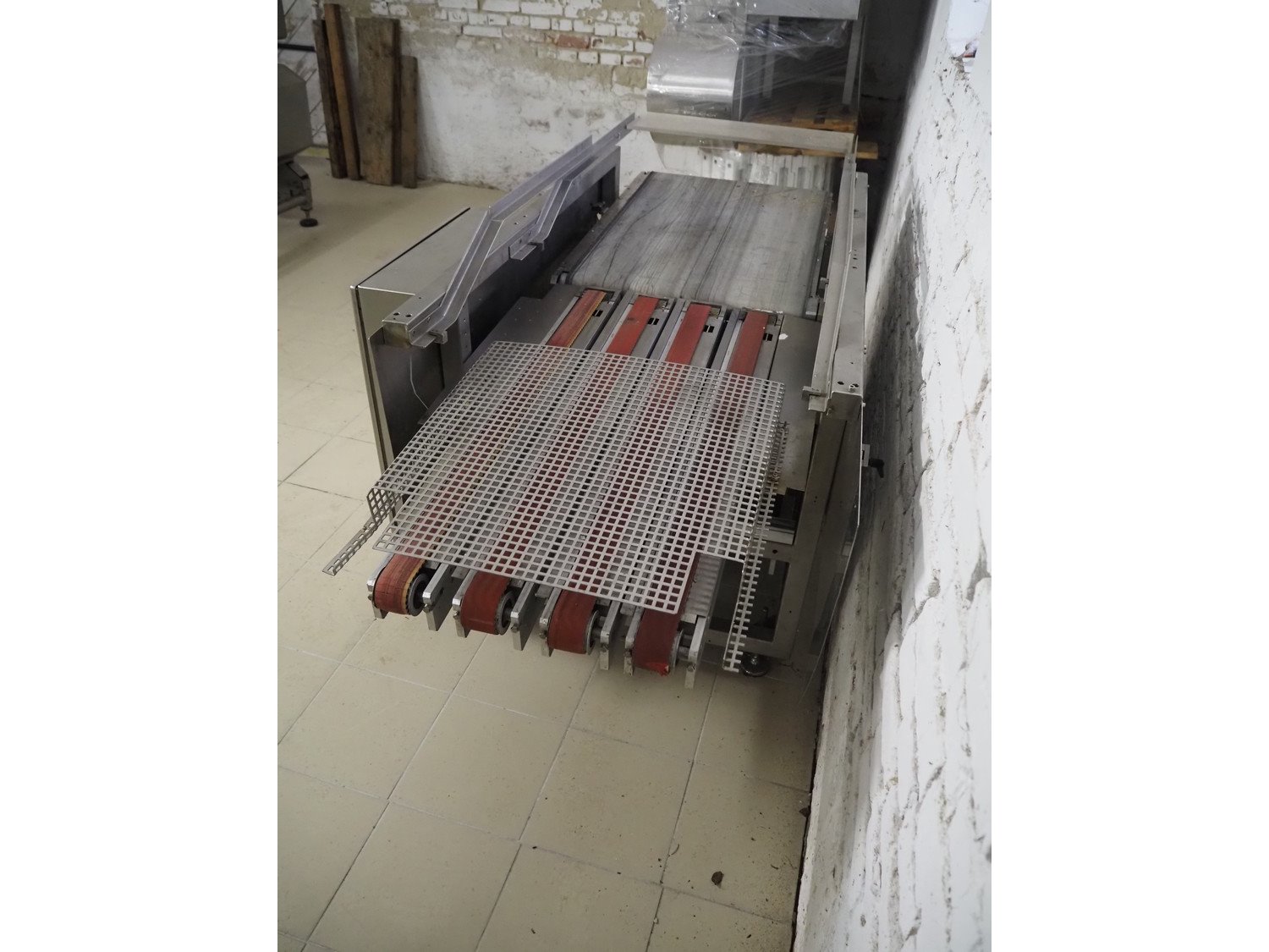 Buhmann Systems GmbH inliner 4 to 1 line, type: Linienvereinzeler_PF601 4-1, machine number: 12.131.044, year of construction: 2007, 400 V, 50 Hz, 16 A, plastic belt, belt width: (4x) 50 mm and (1x) 600 mm, total dimensions: 2200 mm x 1100 mm x 1050 mm.