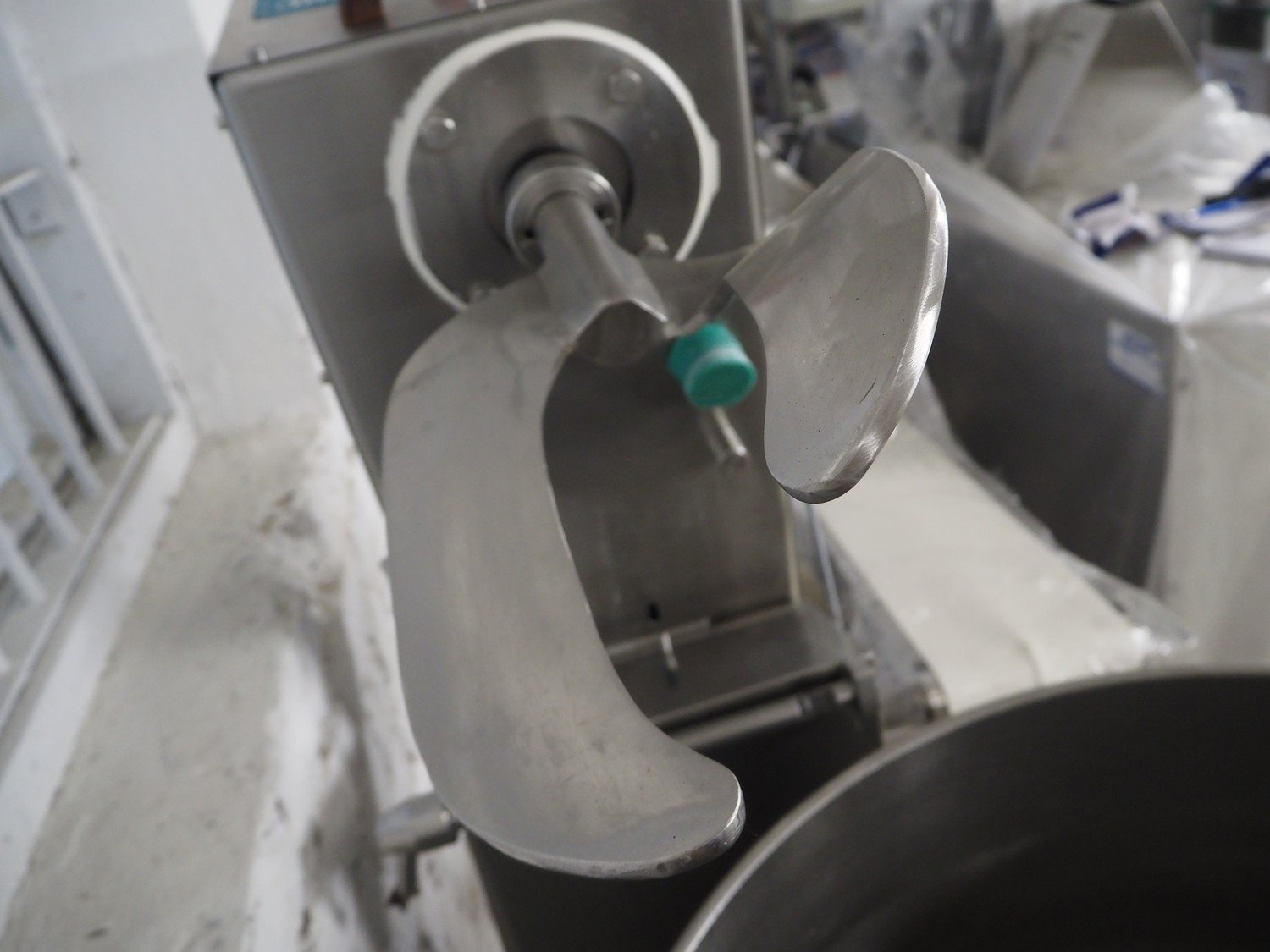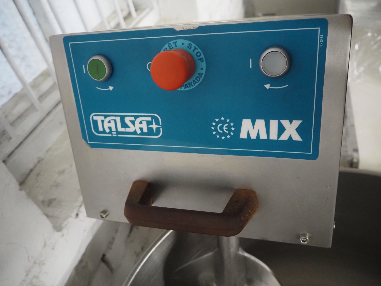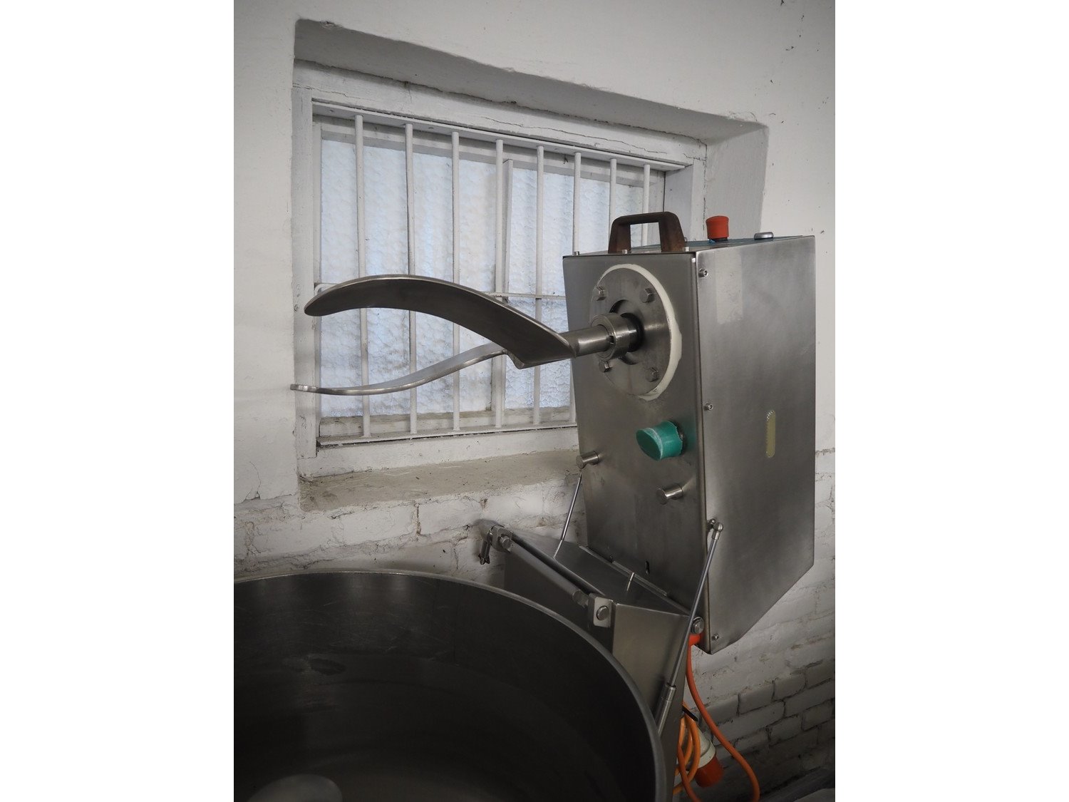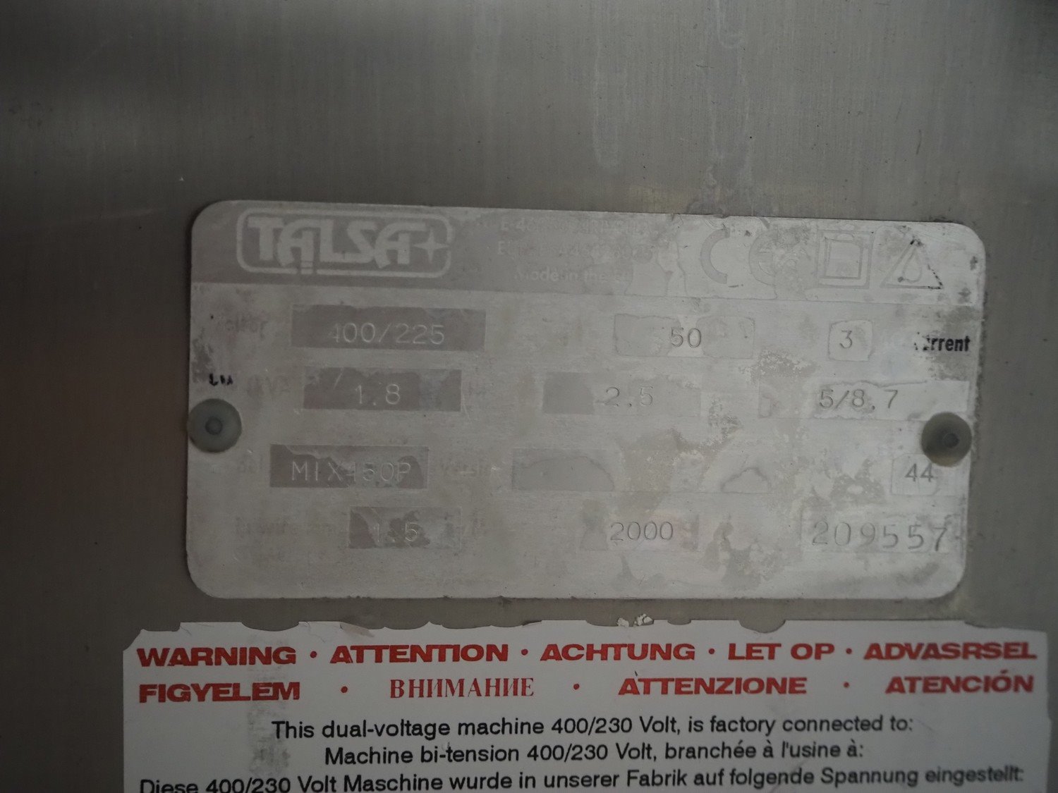 Talsa bowl mixer on s/s frame, type: MIX150P, serial number: 209557, year of construction: 2000, 400 V, 3 Ph, 50 Hz, volume: 150 liter, total dimensions: 1200 mm x 800 mm x 1700 mm.