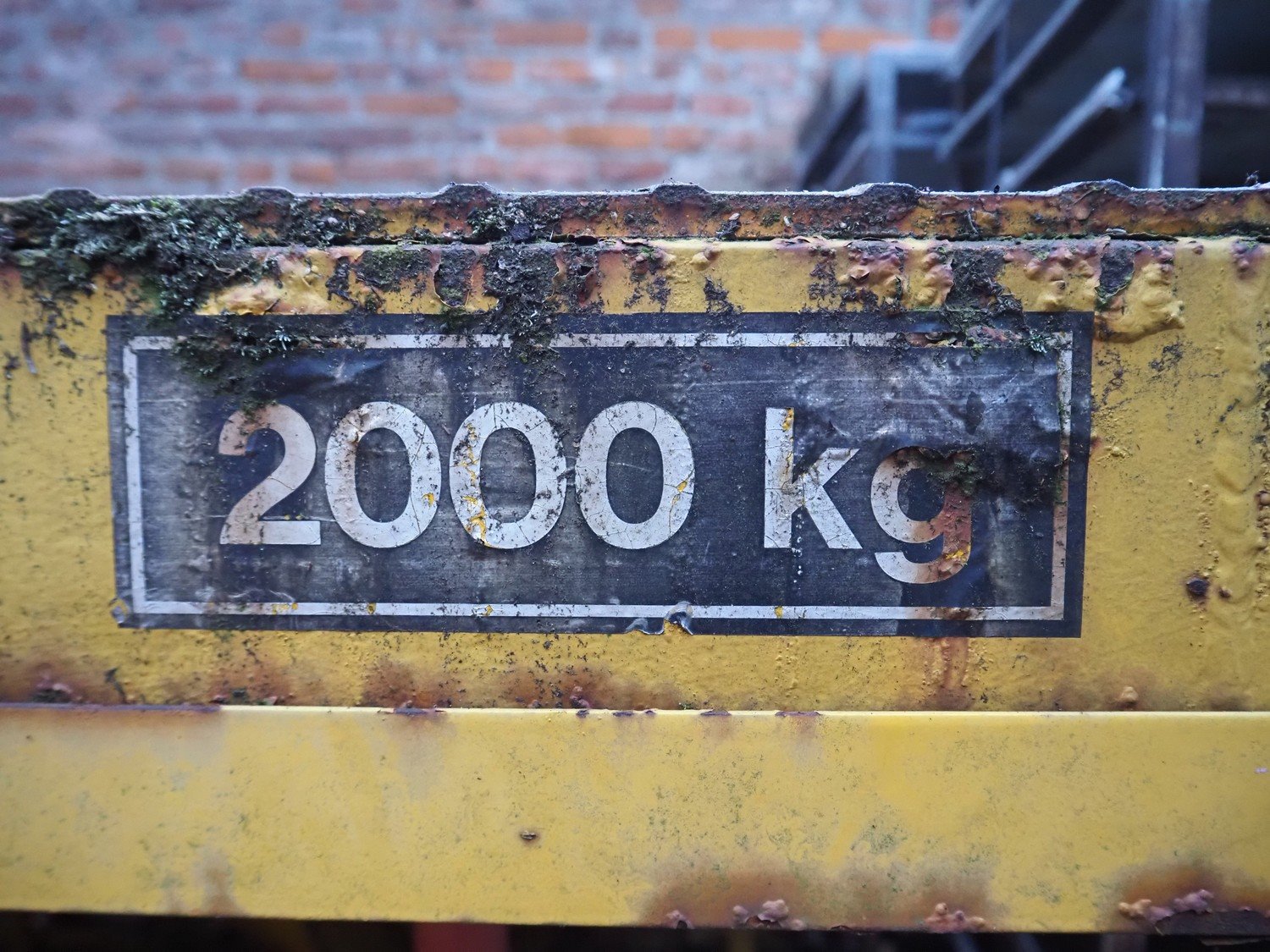 Hywema lifting platform, type: SHT/IN, fabrication number: 16280, year of construction: 1985, capacity: 2000 kg, platform dimensions: 3520 mm x 2000 mm, total dimensions: 3520 mm x 2000 mm x 1300 mm.