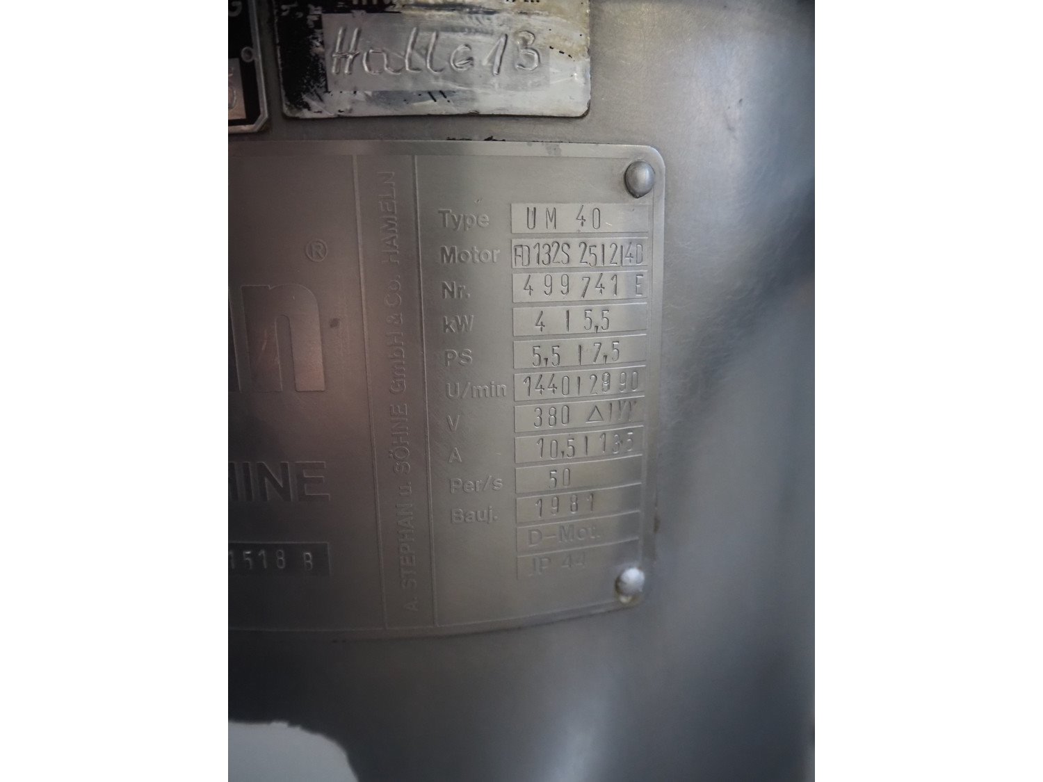 Stephan mobile universal machine, type: UM 40, number: 499741E, year of construction: 1981, 380 V, 50 Hz, 10.5/13.5 A, 4/5.5 kW, volume: 40 liter, dimensions: 750 mm x 550 mm x 1000 mm.