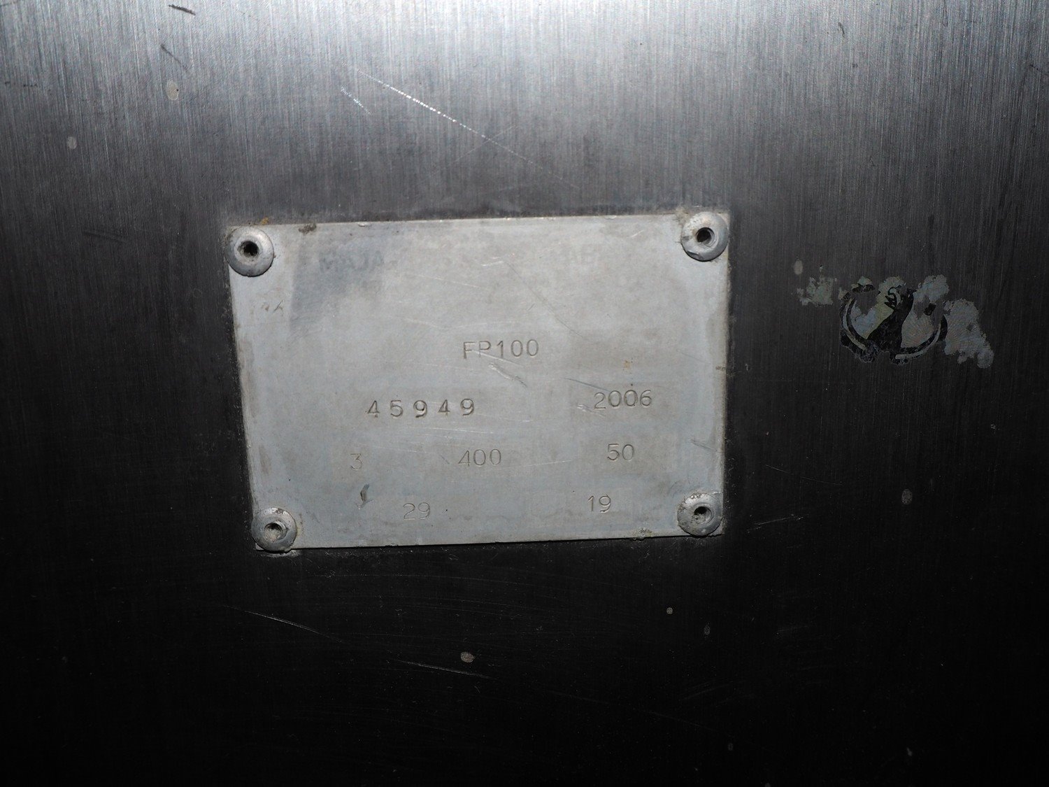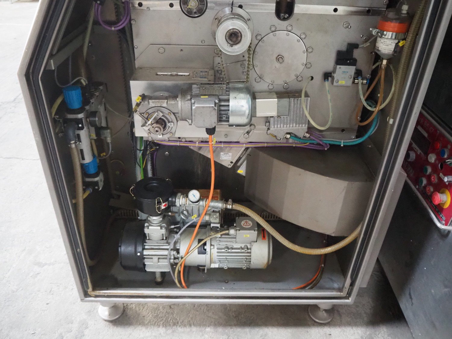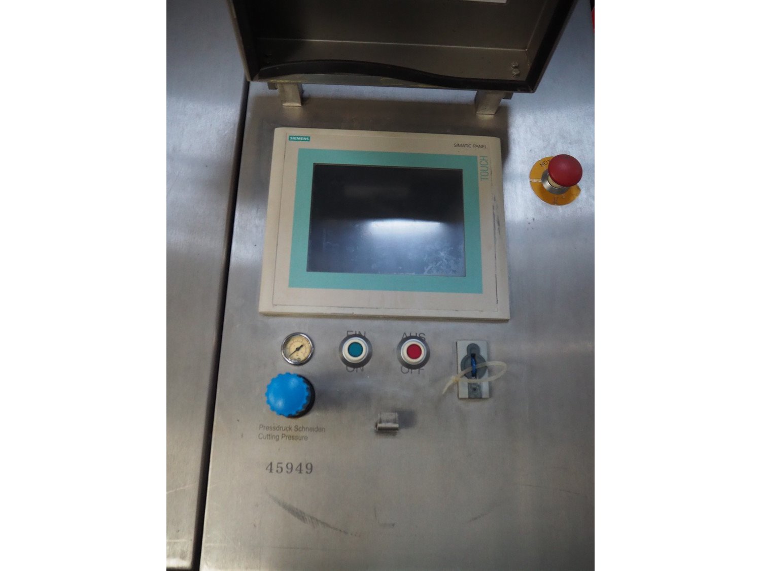 Maja portion control slicer, type: FP100, number: 45949, year of construction: 2006, 400 V, 50 Hz, Busch vacuum pump, number: 060062236, capacity: 160 m³ per hour, dimensions: 1900 mm x 1100 mm x 2000 mm. Including s/s trolley with moulds.