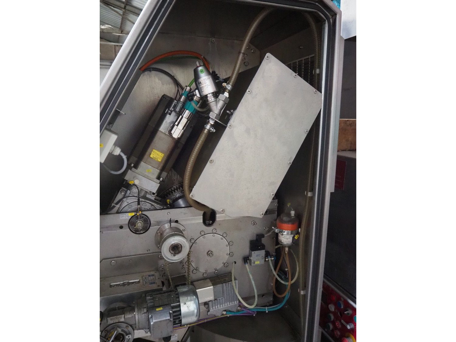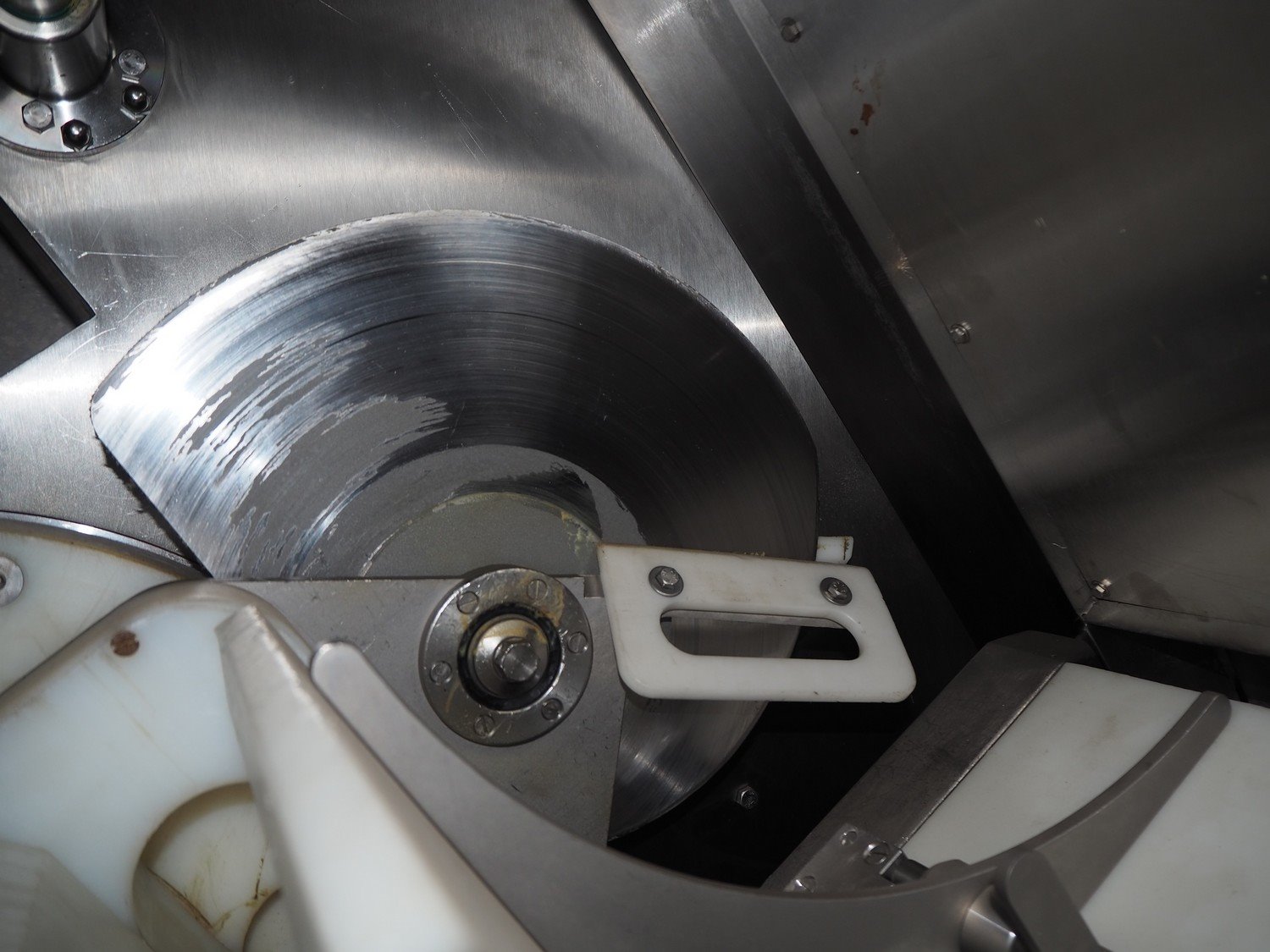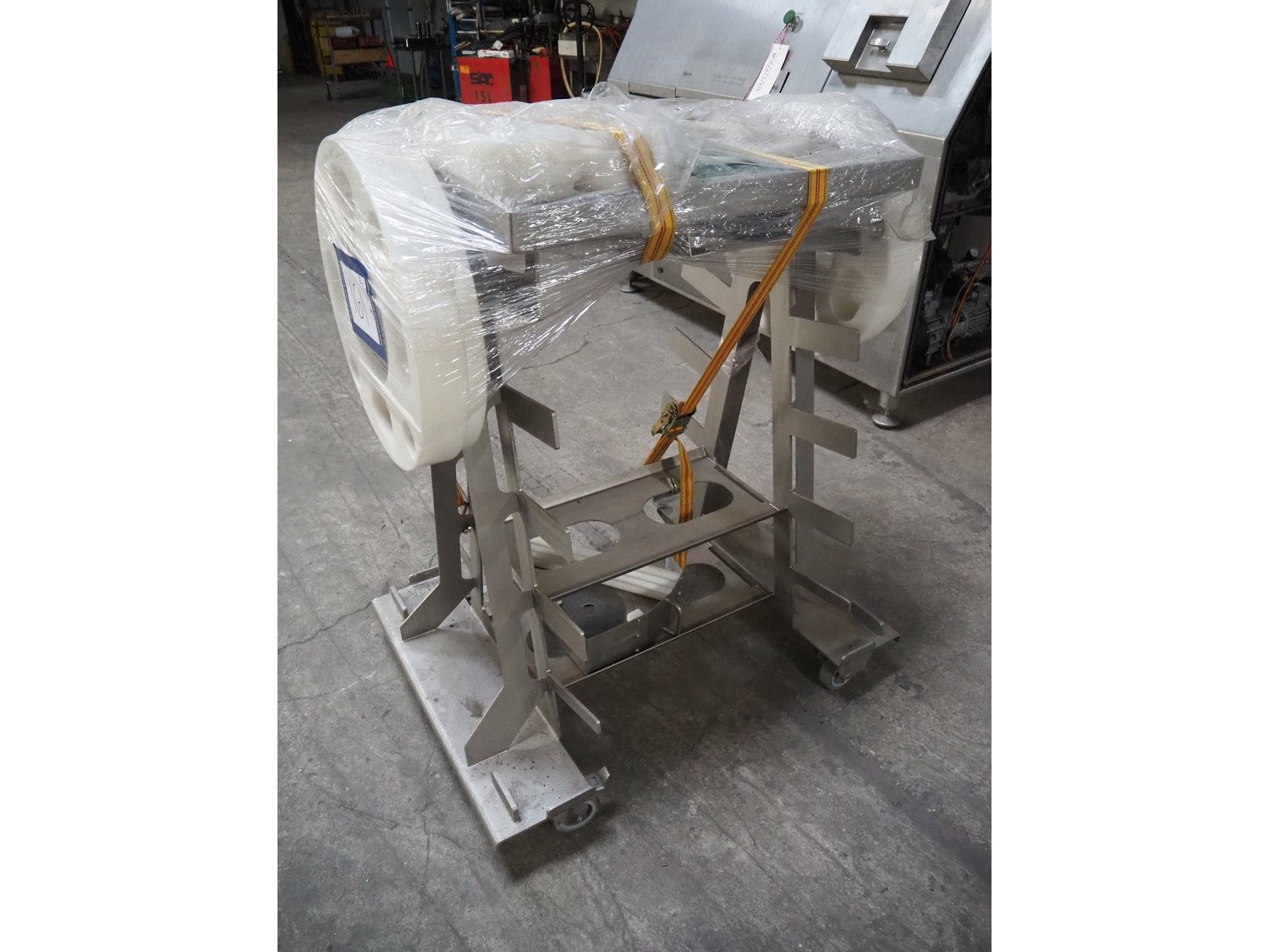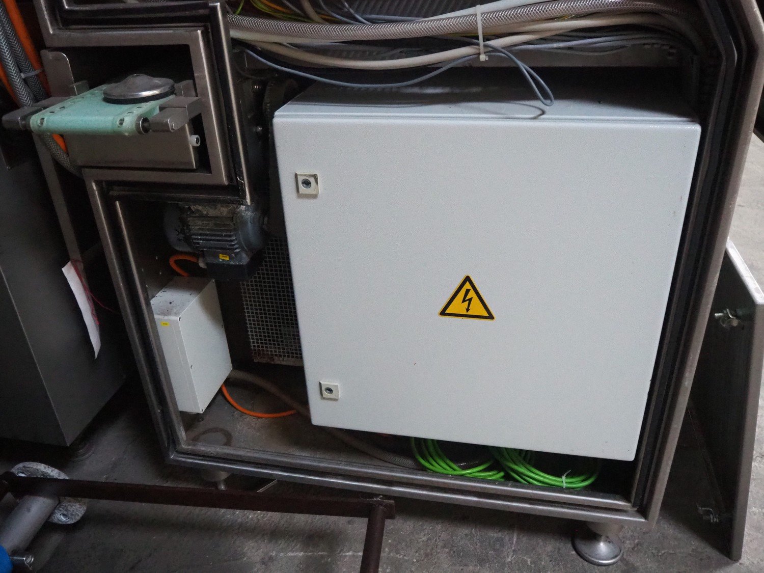Maja portion control slicer, type: FP100, number: 45949, year of construction: 2006, 400 V, 50 Hz, Busch vacuum pump, number: 060062236, capacity: 160 m³ per hour, dimensions: 1900 mm x 1100 mm x 2000 mm. Including s/s trolley with moulds.