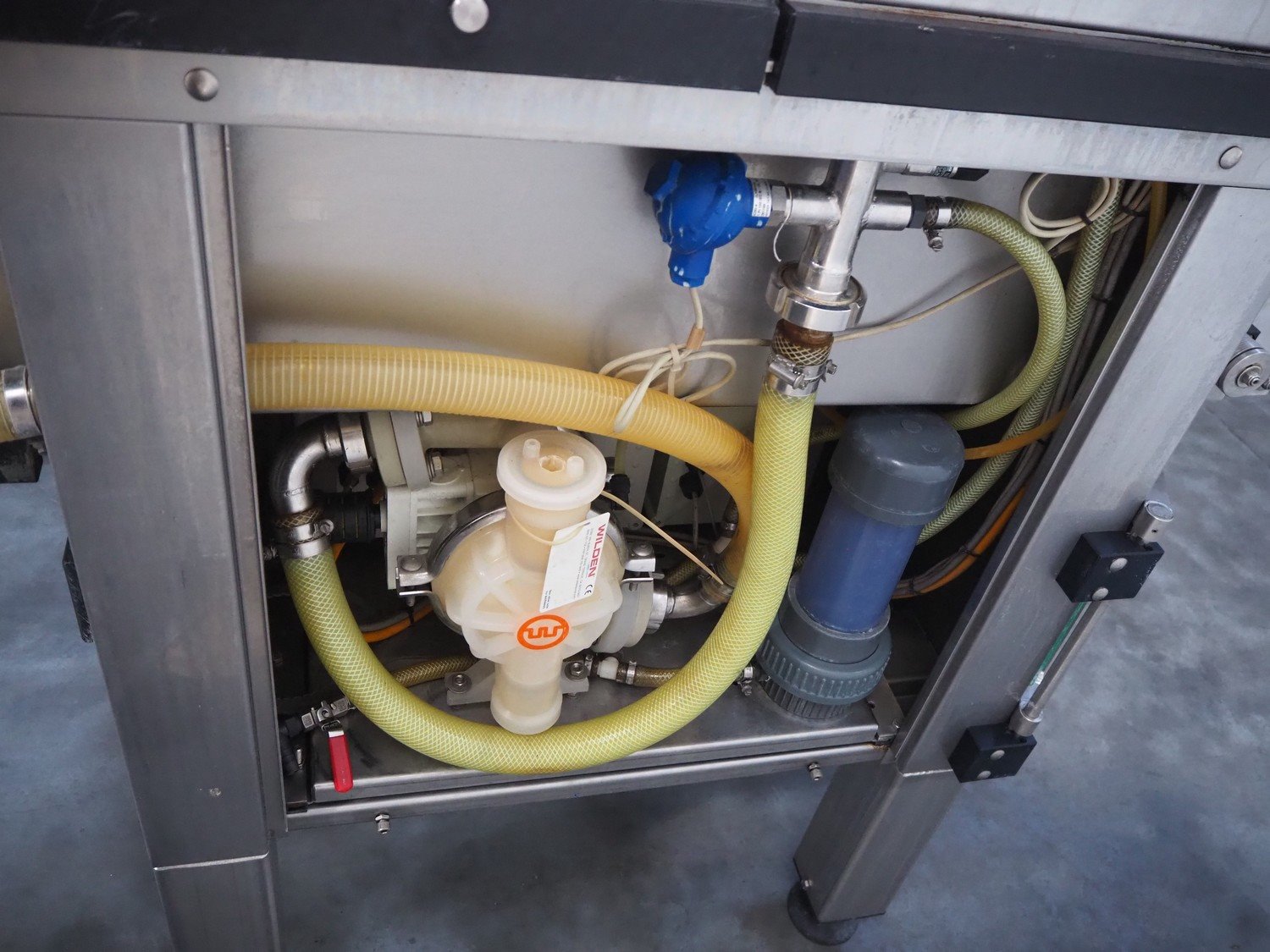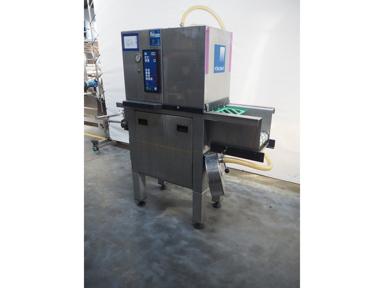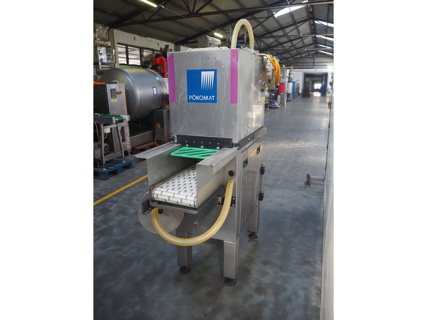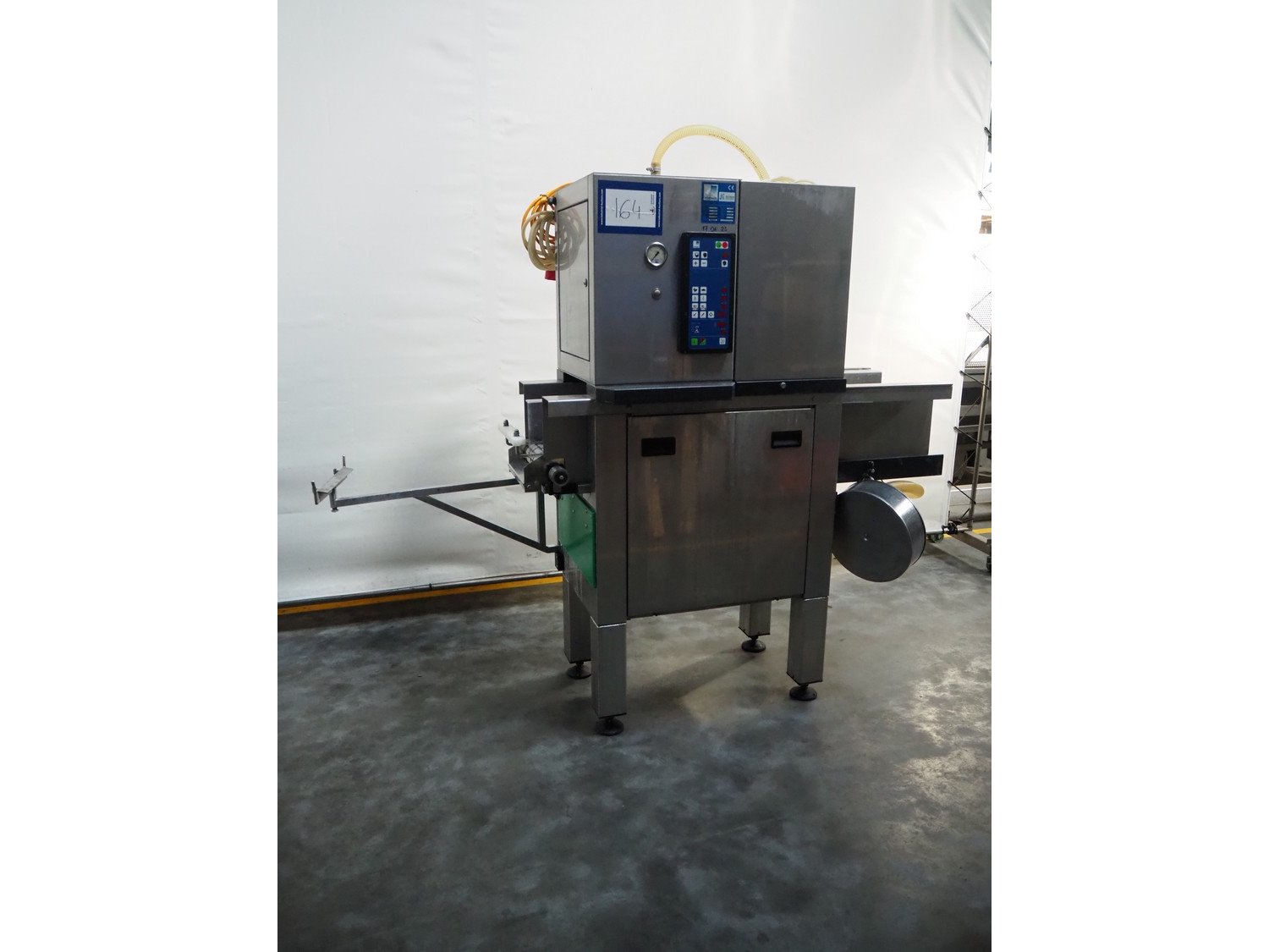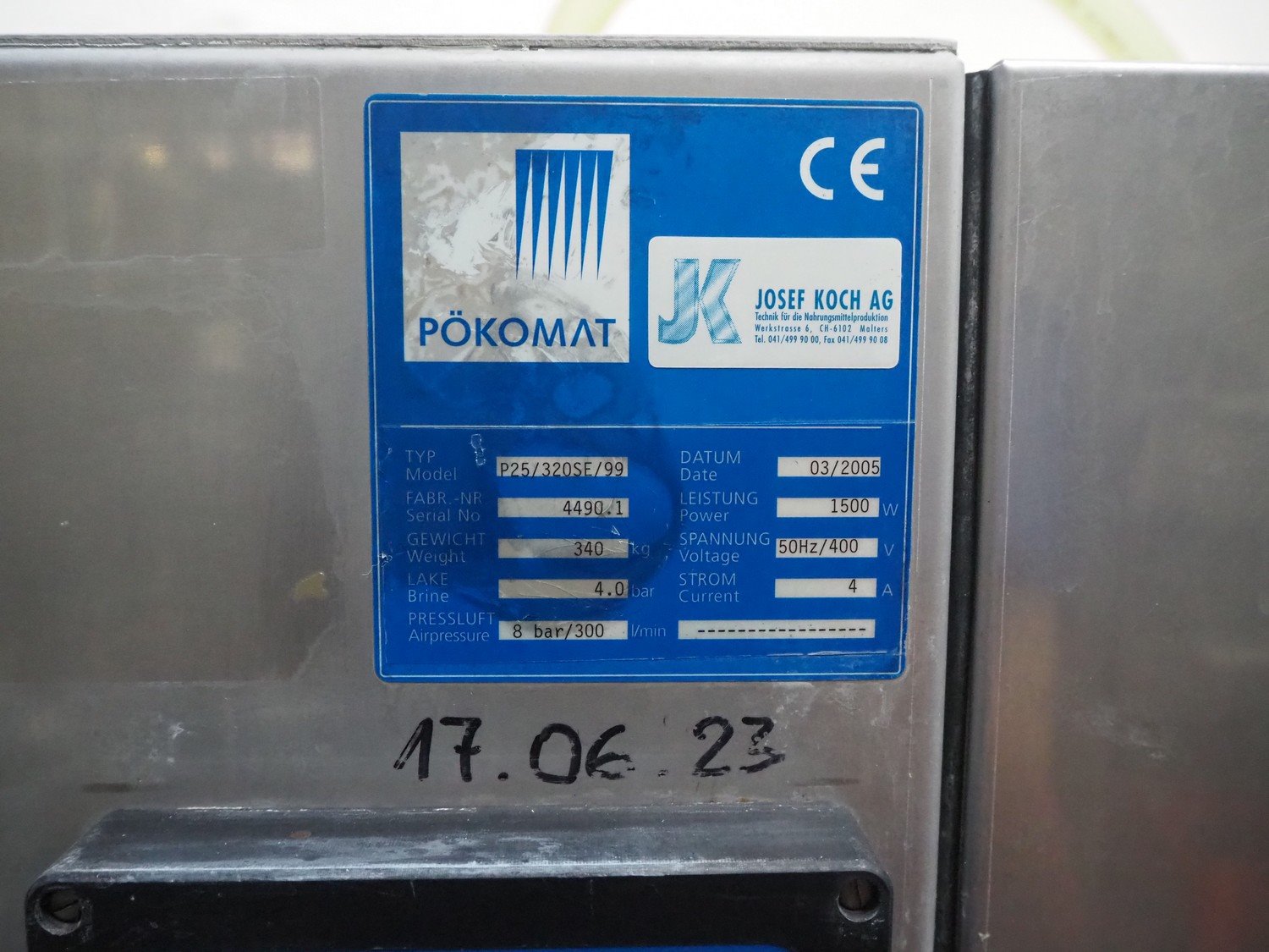 Pökomat injector, type: P25/320SE/99, number: 4490.1, year of construction: 2005, 400 V, 50 Hz, 4 A, 1500 W, 340 kg, 25 needles, s/s mesh belt, belt width: 300 mm, dimensions: 1850 mm x 950 mm x 2000 mm.