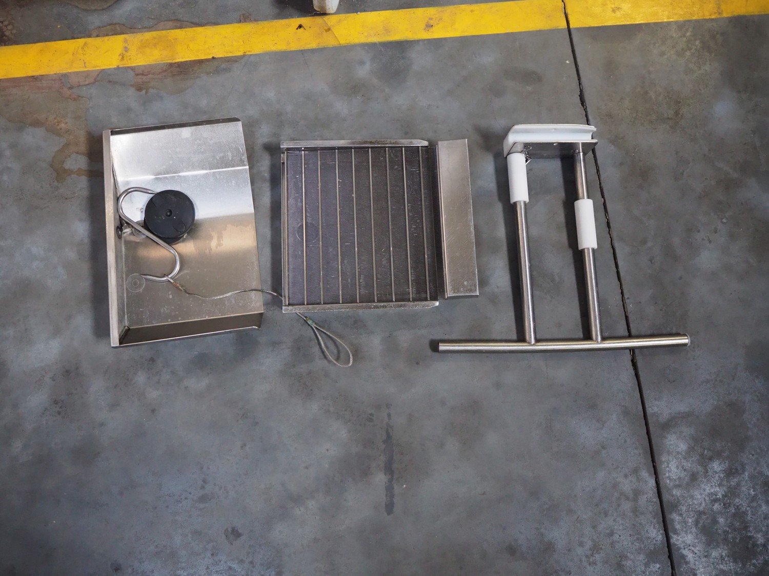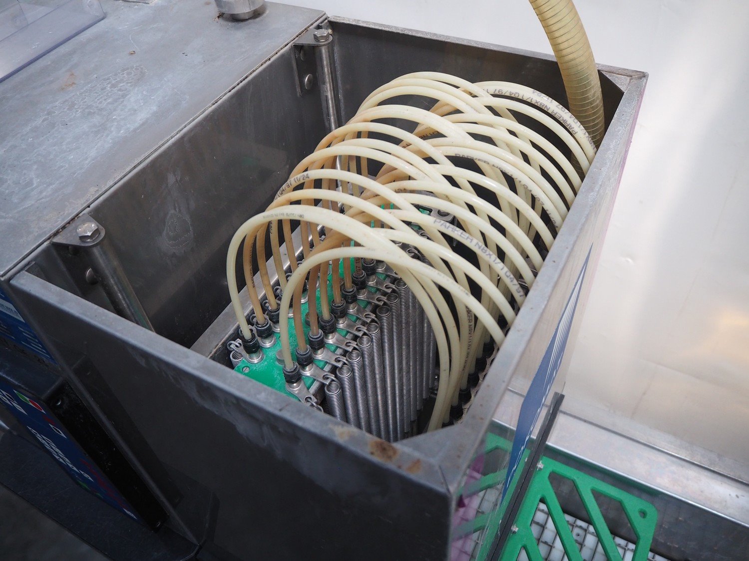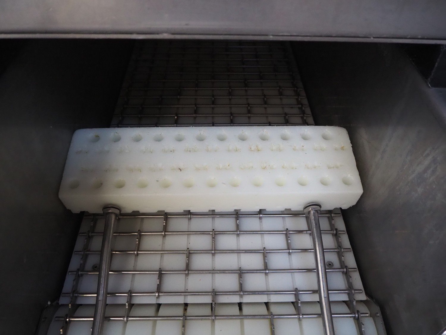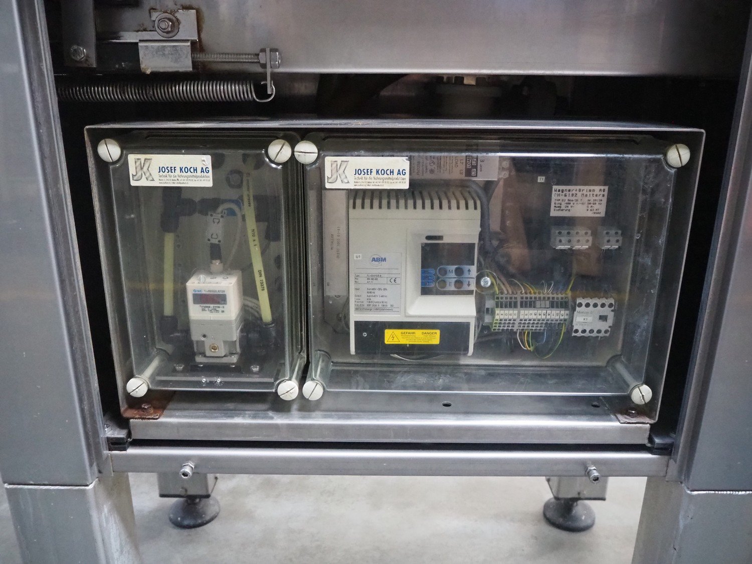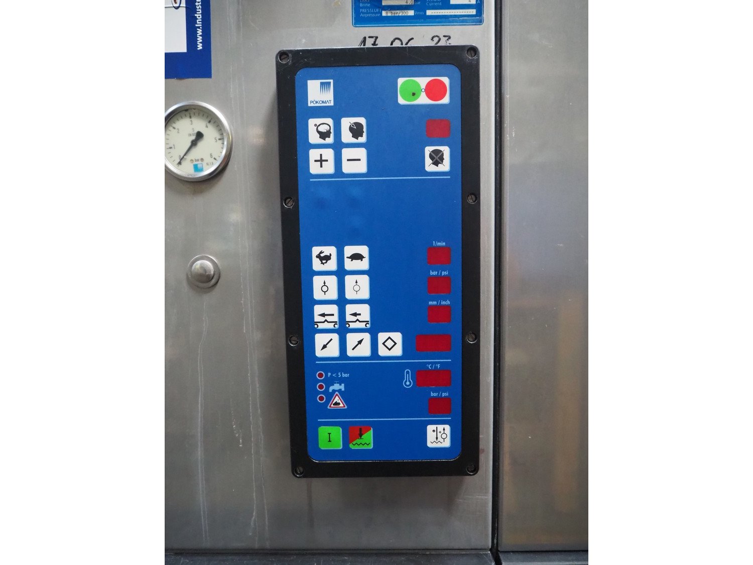Pökomat injector, type: P25/320SE/99, number: 4490.1, year of construction: 2005, 400 V, 50 Hz, 4 A, 1500 W, 340 kg, 25 needles, s/s mesh belt, belt width: 300 mm, dimensions: 1850 mm x 950 mm x 2000 mm.