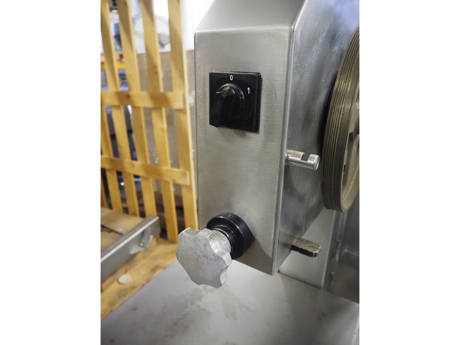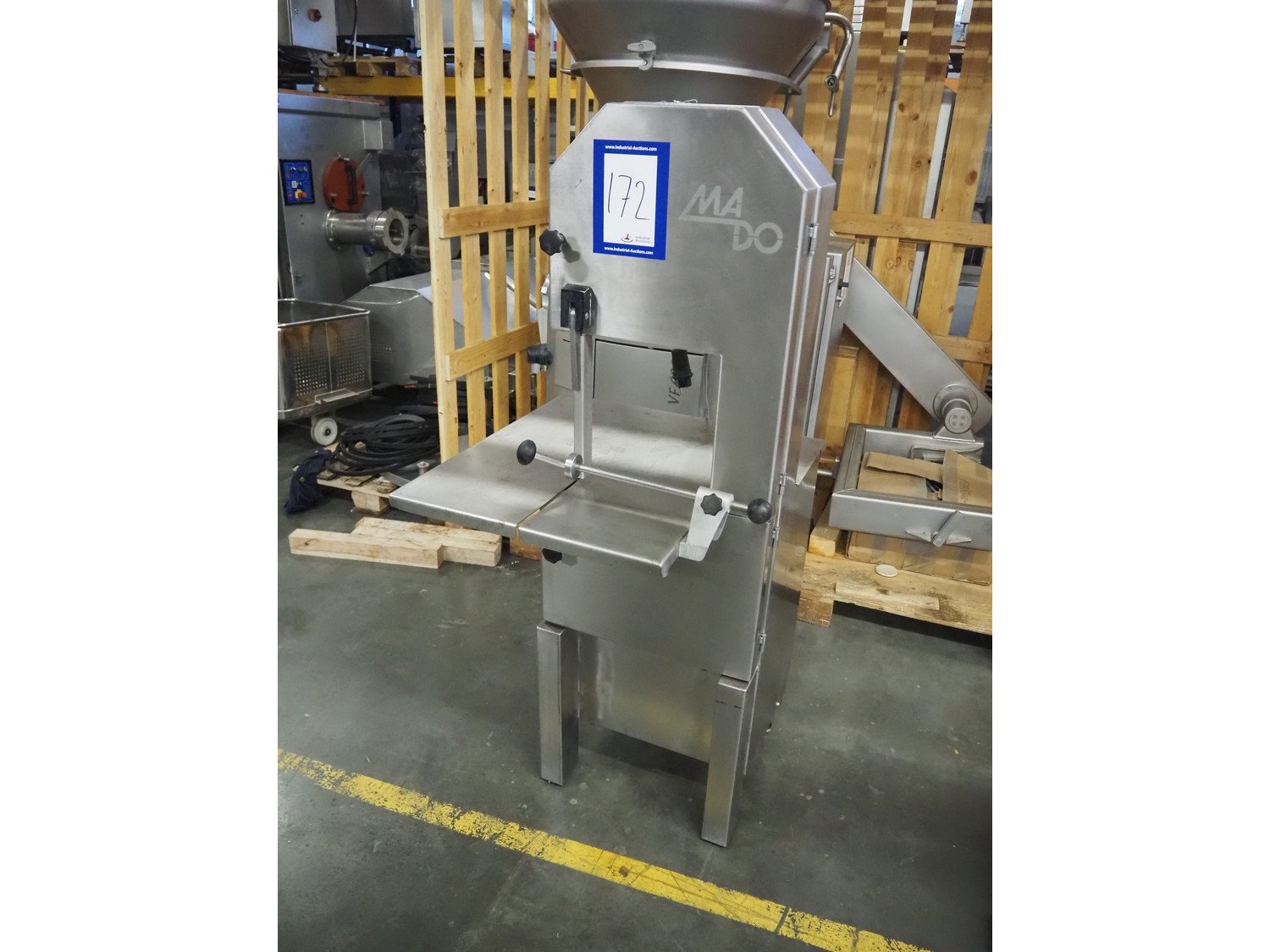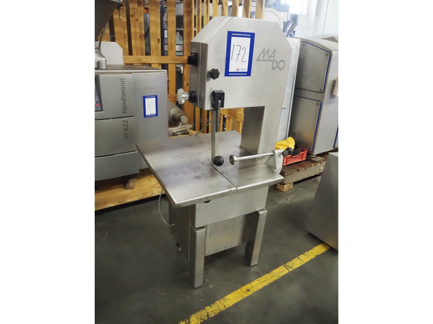 Mado bandsaw, type: MKB 554 D, number: 30564, 220/380 V, 3 Ph, 50 Hz, 2.9 A, 1100 W, dimensions: 720 mm x 720 mm x 1590 mm. Missing saw.