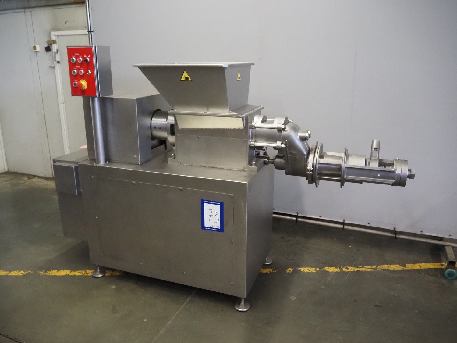 Provisur Technologies beehive separator, type: RSDD04A 28 HP, 380/460 V, 50/60 Hz, 60 A, 34 kVA, s/s worms, dimensions hopper: 650 mm x 500 mm x 300 mm, diameter drum perforations: 1 mm, total dimensions: 2020 mm x 680 mm x 1620 mm.