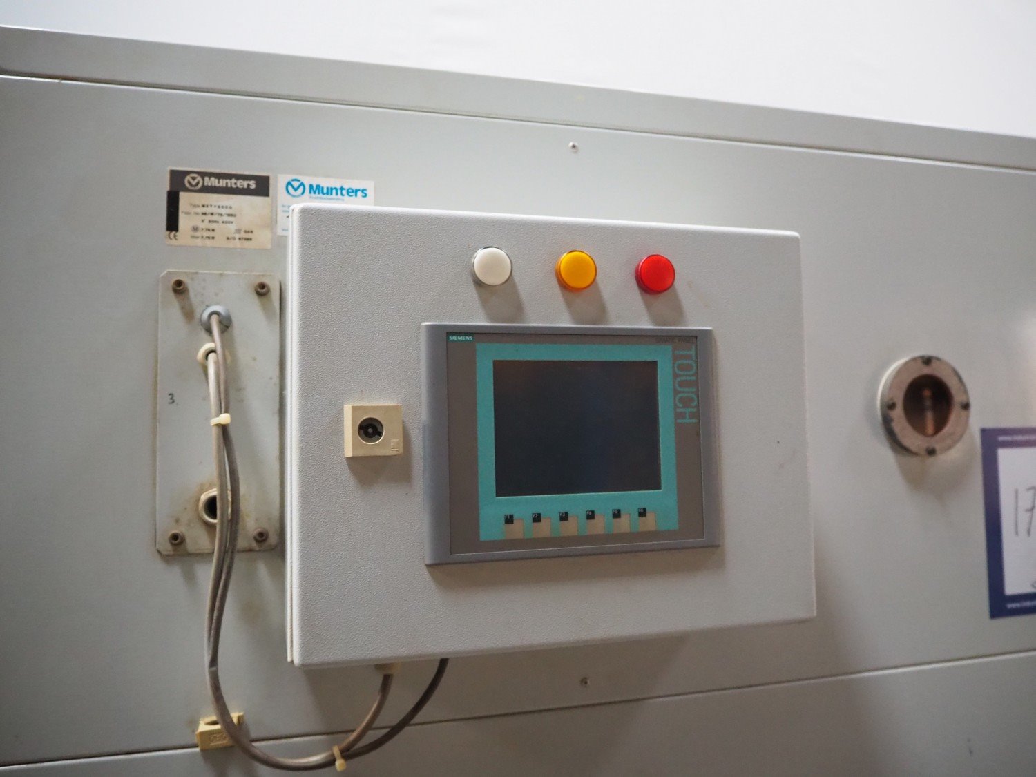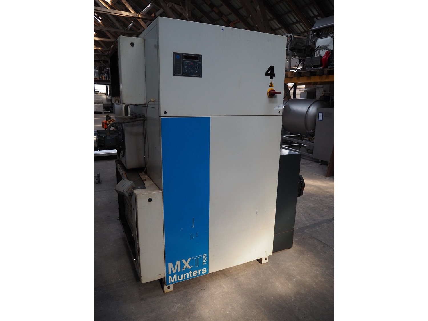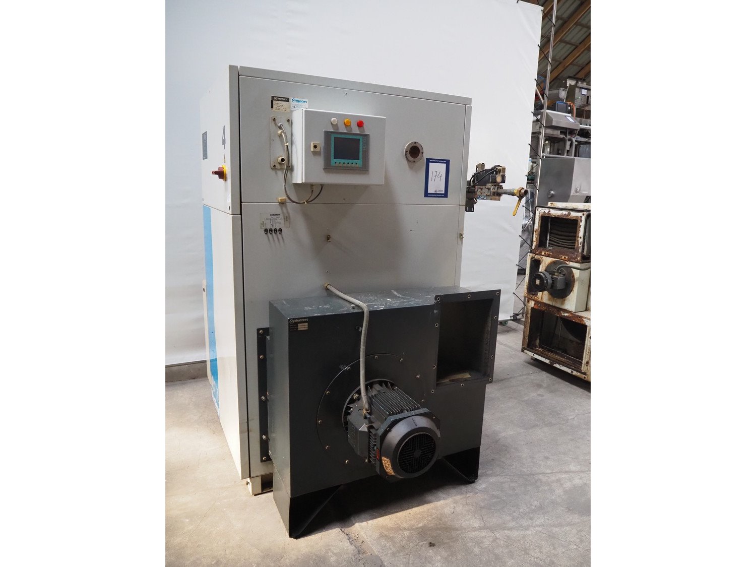 Munters desiccant dehumidifier, model: MXT7500 G, fabrication number: 96 / W / 75 / 1660, 400 V, 3 Ph, 50 Hz, maximum: 7.7 kW, gas, dimensions: 2300 mm x 1400 mm x 2000 mm.