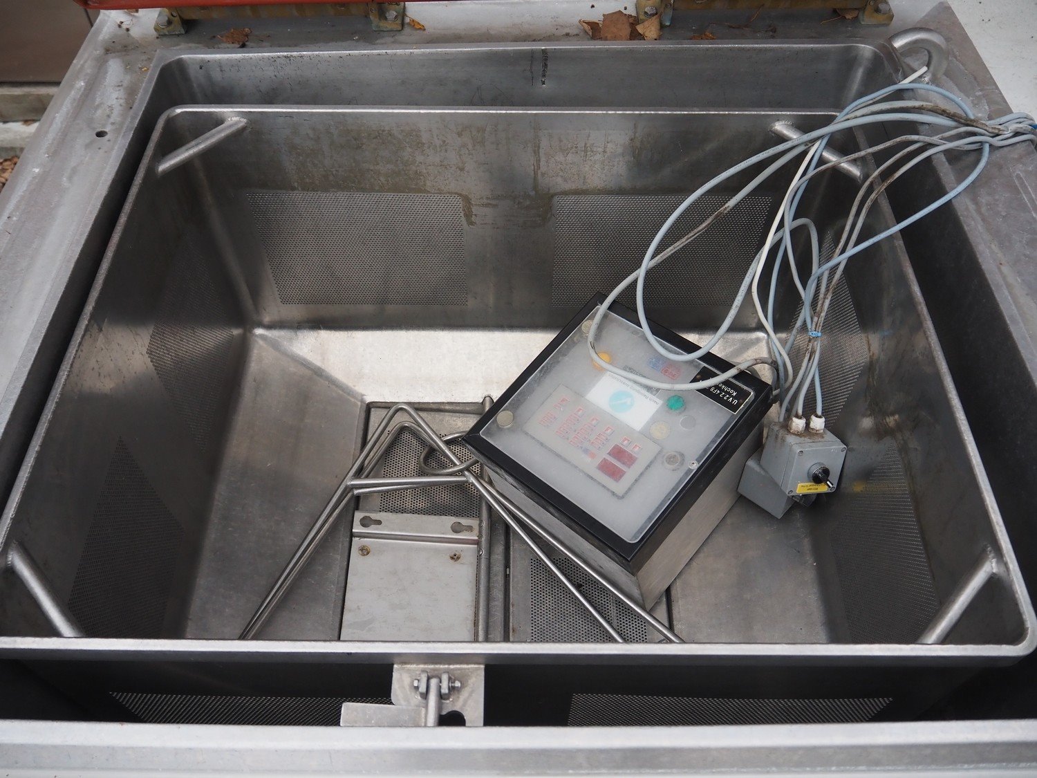 Mauer-Atmos cooking vessel, inside dimensions: 1000 mm x 900 mm x 650 mm, total dimensions: 1300 mm x 1450 mm x 1150 mm.