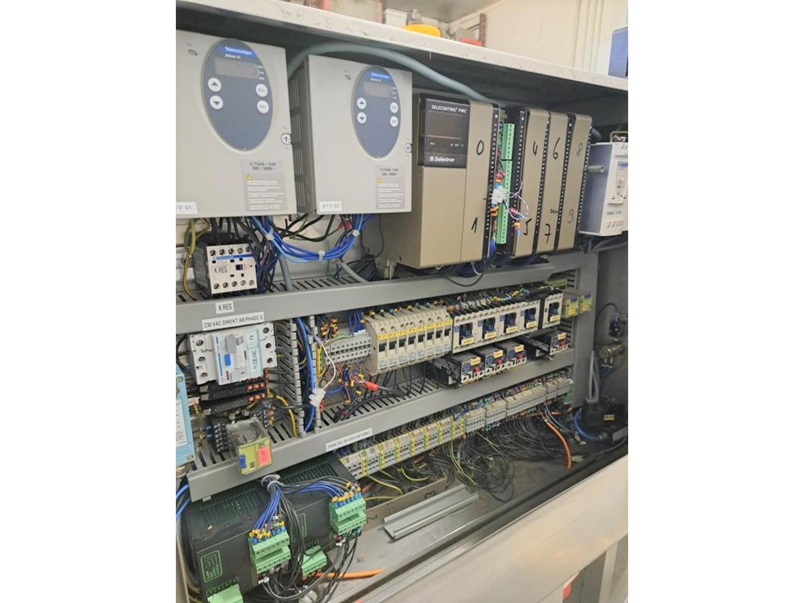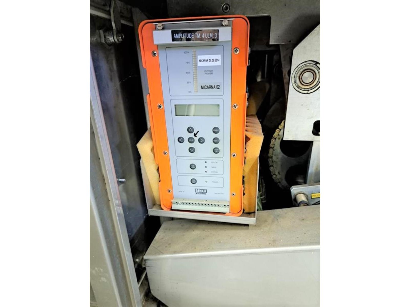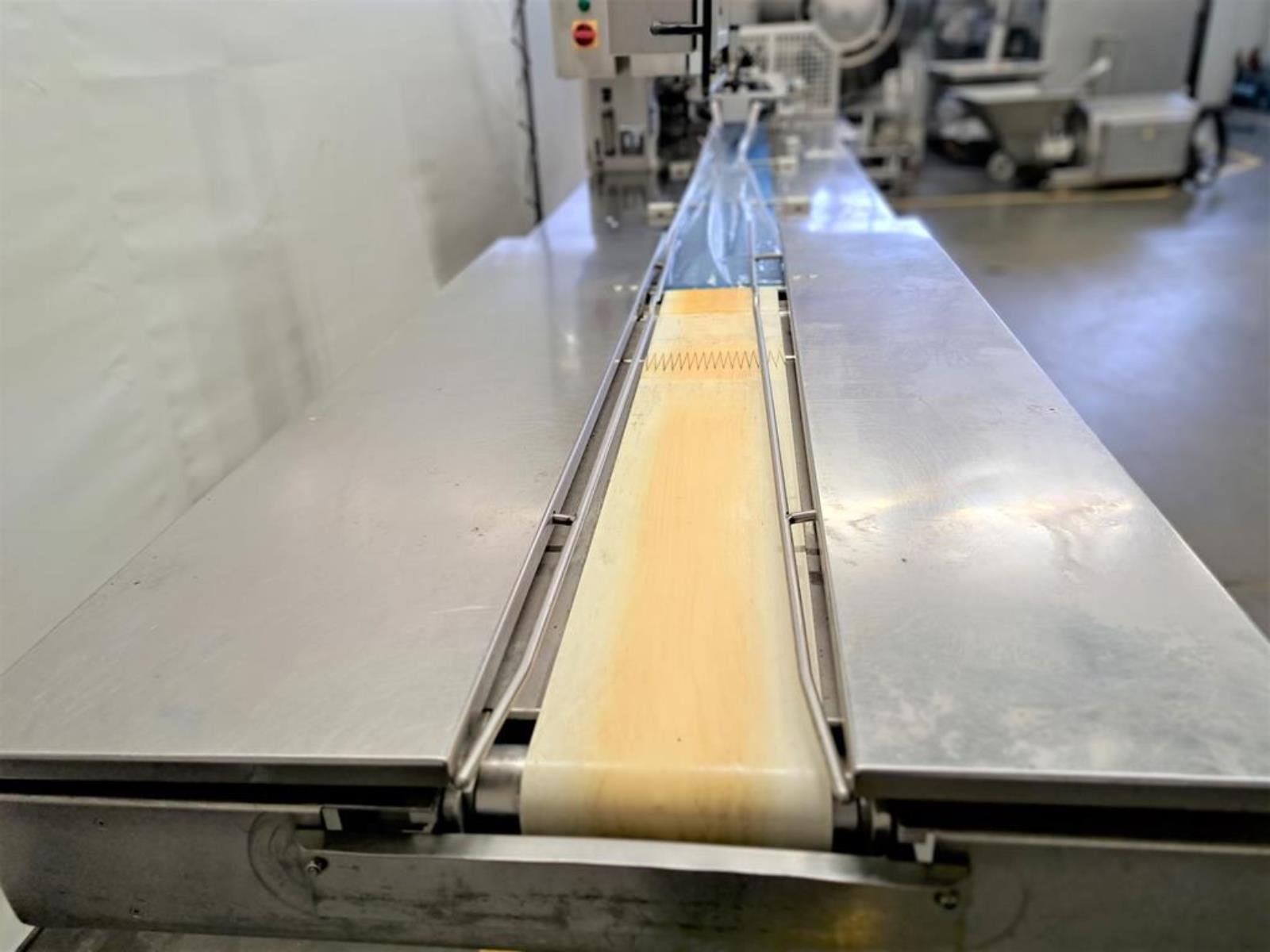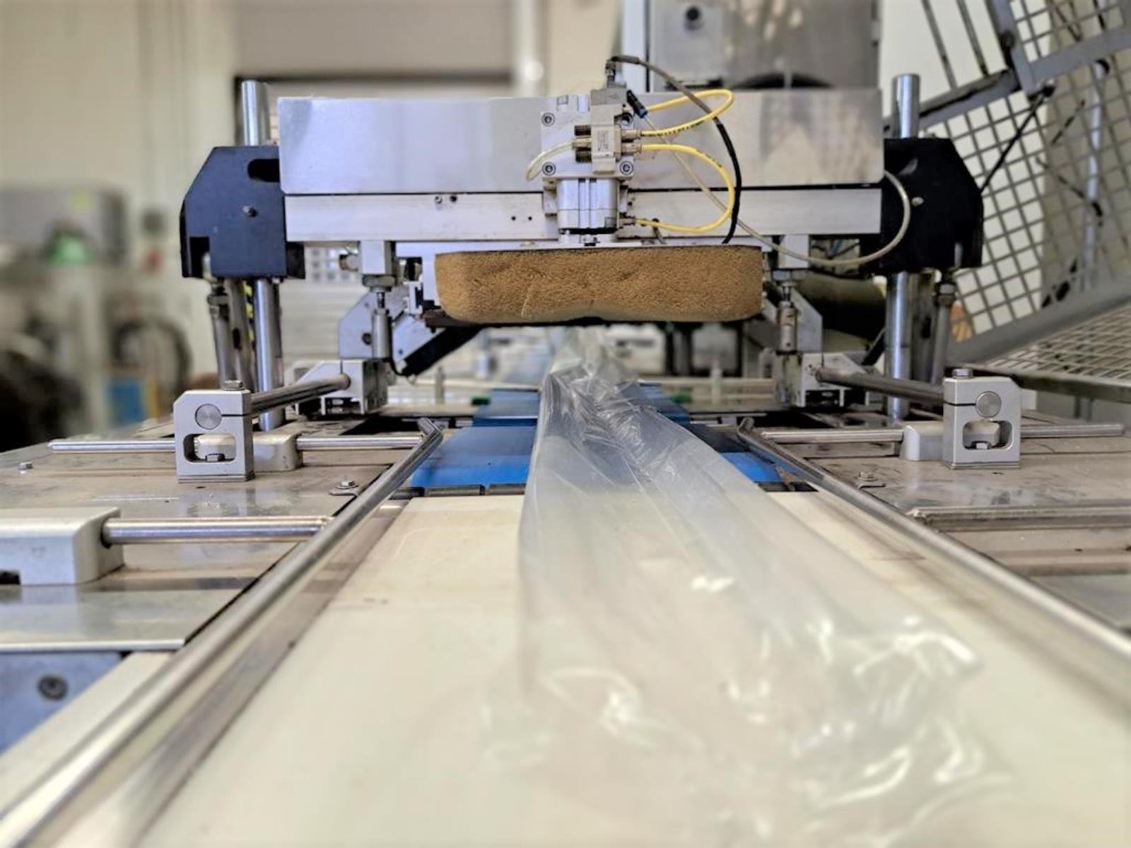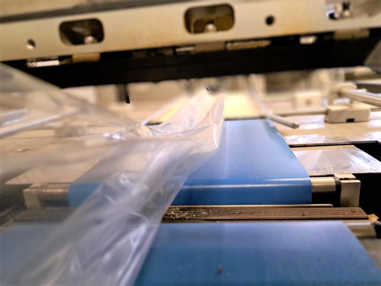 Cryovac flowpacker with gas mixing option, model: CJ50 MD, serial number: 10004, year of construction: 1995, 380 V, 3 Ph, 50 Hz, 4 kW, 6 A, plastic belt, belt width: 190 mm and 220 mm, film width: 400 mm, seal length: 180 mm, total dimensions: 5200 mm x 1000 mm x 1900 mm.