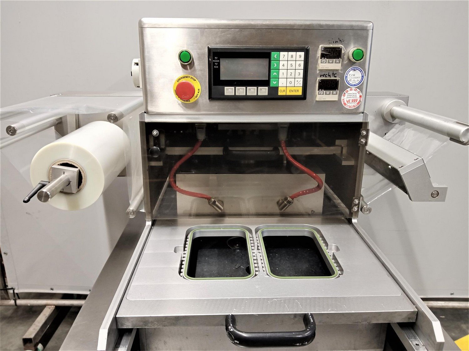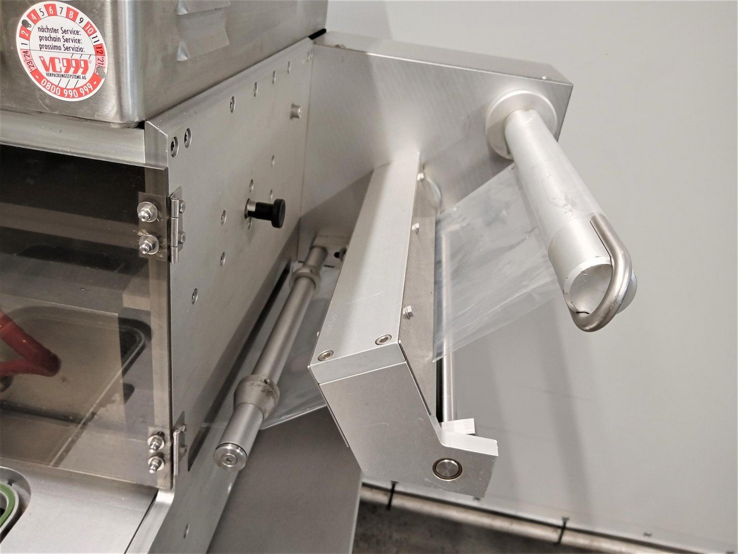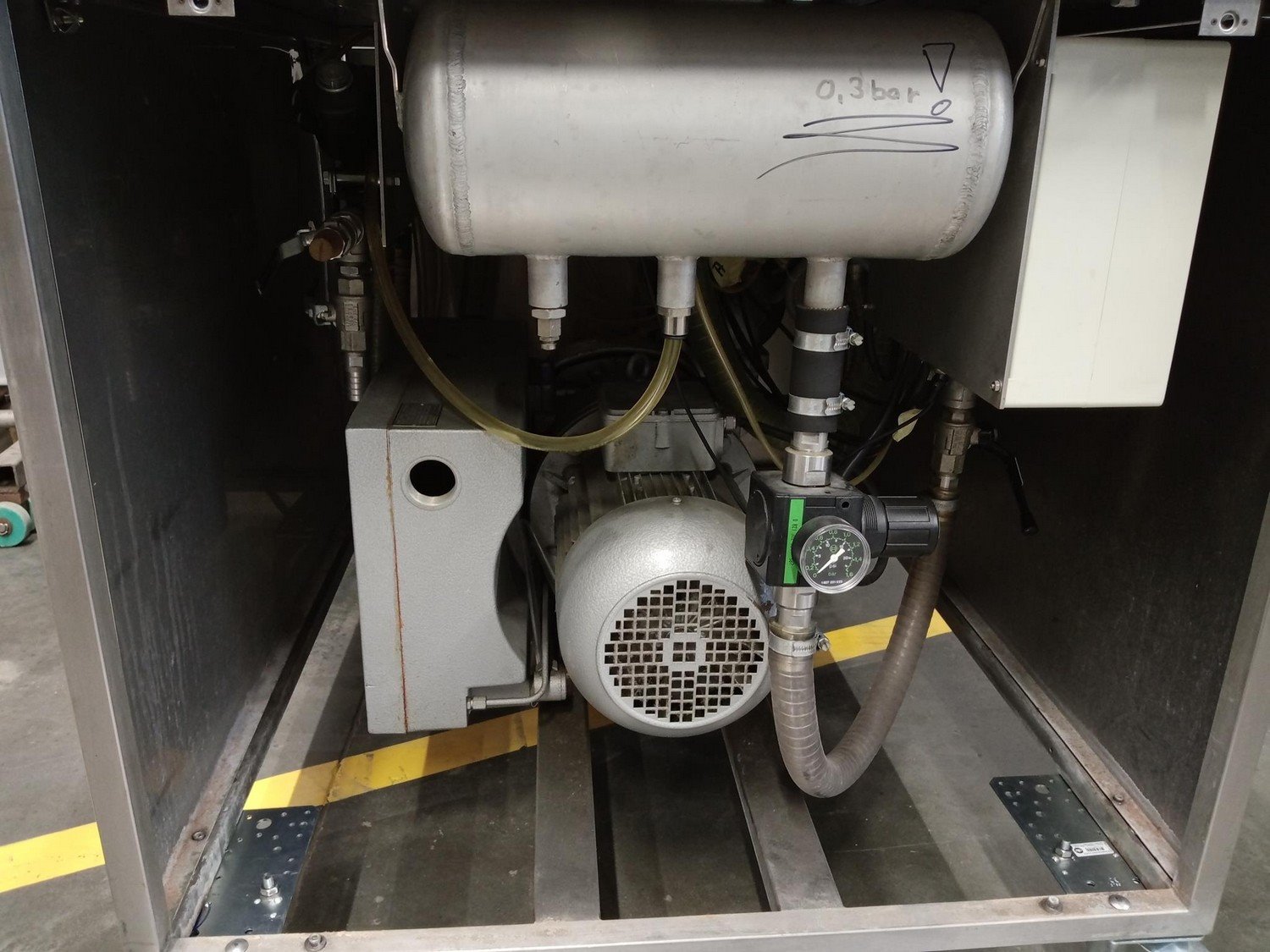 Inauen Maschinen AG mobile traysealer, type: TS 400, 5 kW, dye: (2x) 215 mm x 130 mm, Rietschle vacuum pump, type: VCAM 100 ( 08 ) 102161-0823, capacity: 100 m³ per hour, total dimensions: 1400 mm x 1200 mm x 1500 mm.