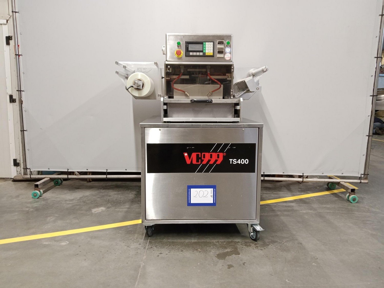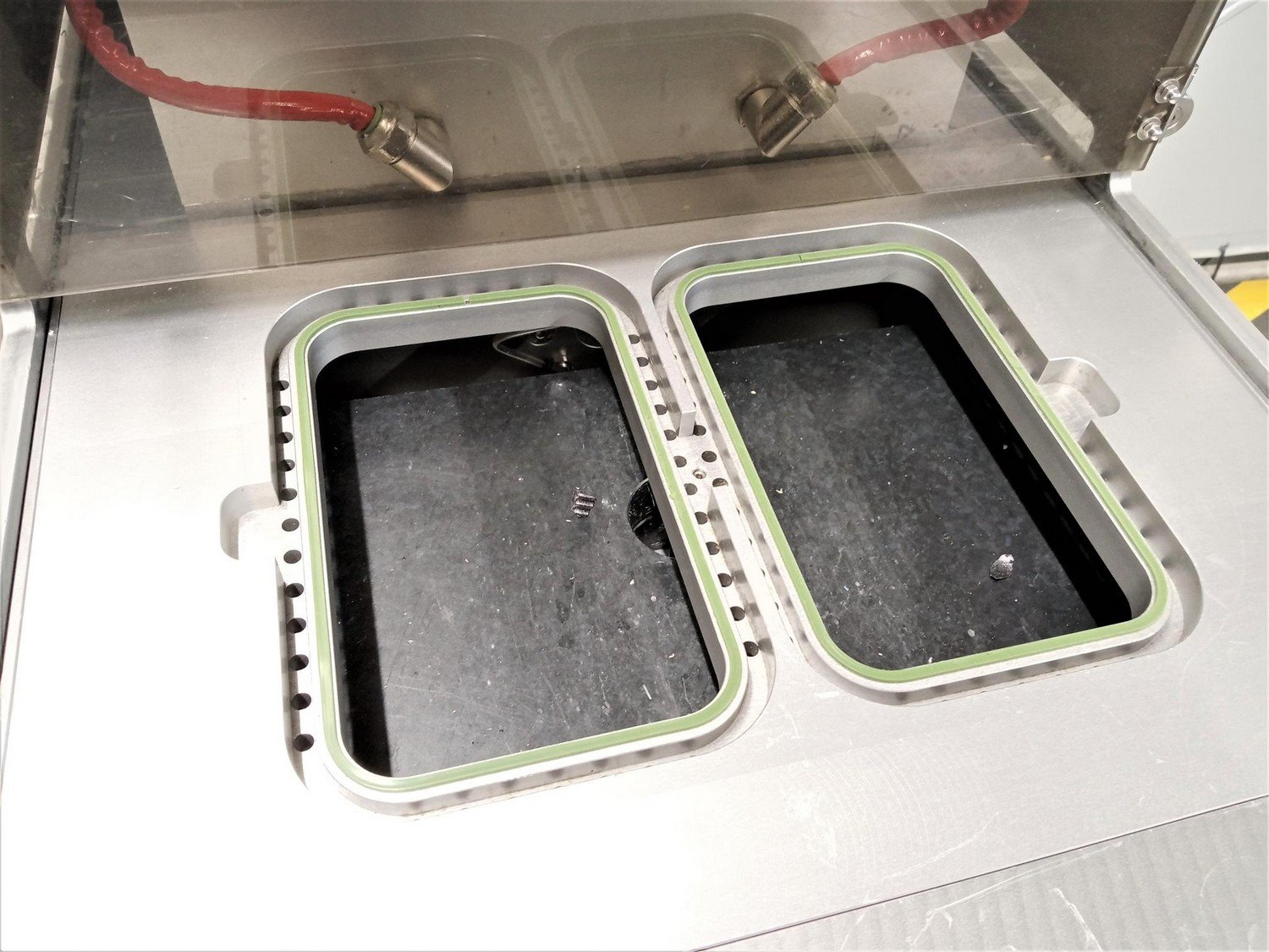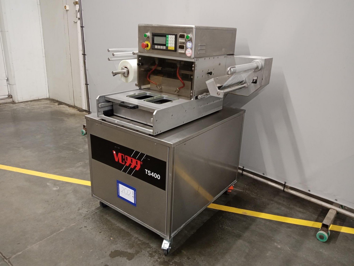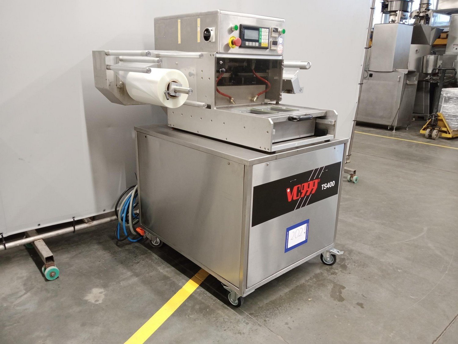 Inauen Maschinen AG mobile traysealer, type: TS 400, 5 kW, dye: (2x) 215 mm x 130 mm, Rietschle vacuum pump, type: VCAM 100 ( 08 ) 102161-0823, capacity: 100 m³ per hour, total dimensions: 1400 mm x 1200 mm x 1500 mm.
