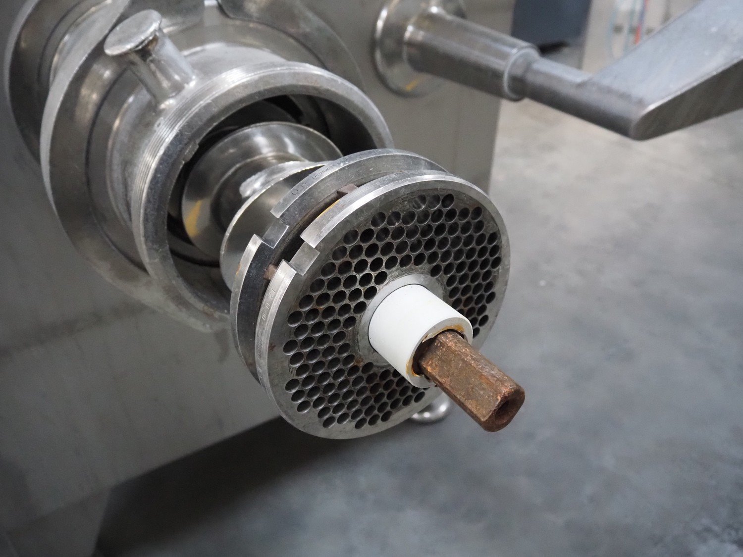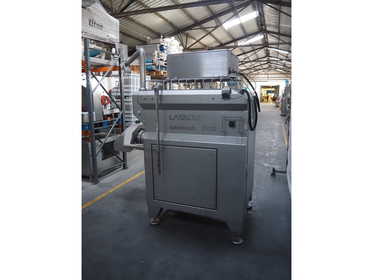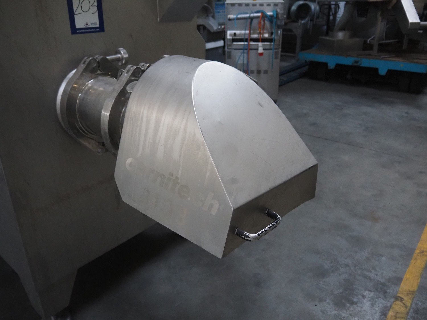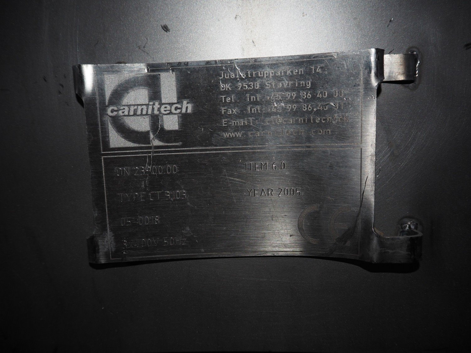 Carnitech grinder, type: CT 3103, serial number: 05-0018, year of construction: 2005, 400 V, 3 Ph, 50 Hz, diameter plate: 180 mm, total dimensions: 1100 mm x 2200 mm x 1940 mm.