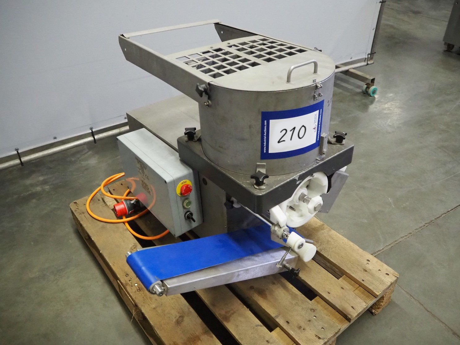Deighton Manufacturing UK LTD forming machine, oval shaped dye, dimensions dye: 50 mm x 30 mm, plastic belt, belt width: 125 mm, total dimensions: 950 mm x 500 mm x 750 mm. Without plastic cover for forms.