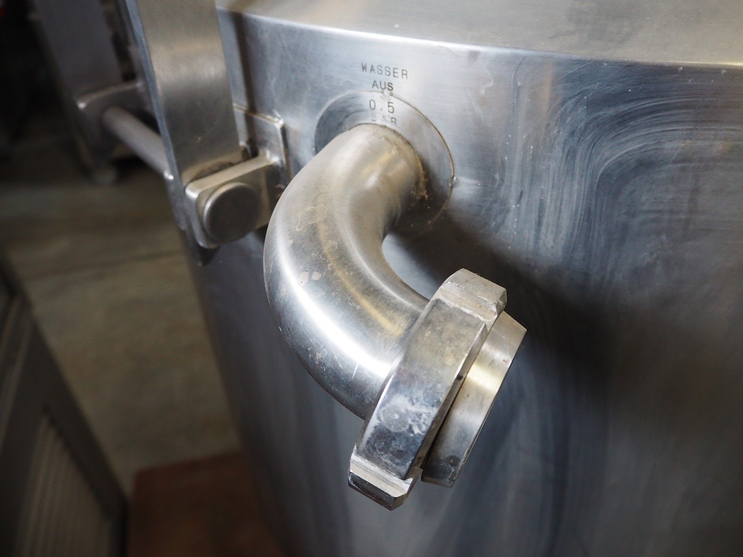 S/s double jacketed tank, inside dimensions: Ø 710 mm x 580 mm, total dimensions: 1050 mm x 1000 mm x 1550 mm.
