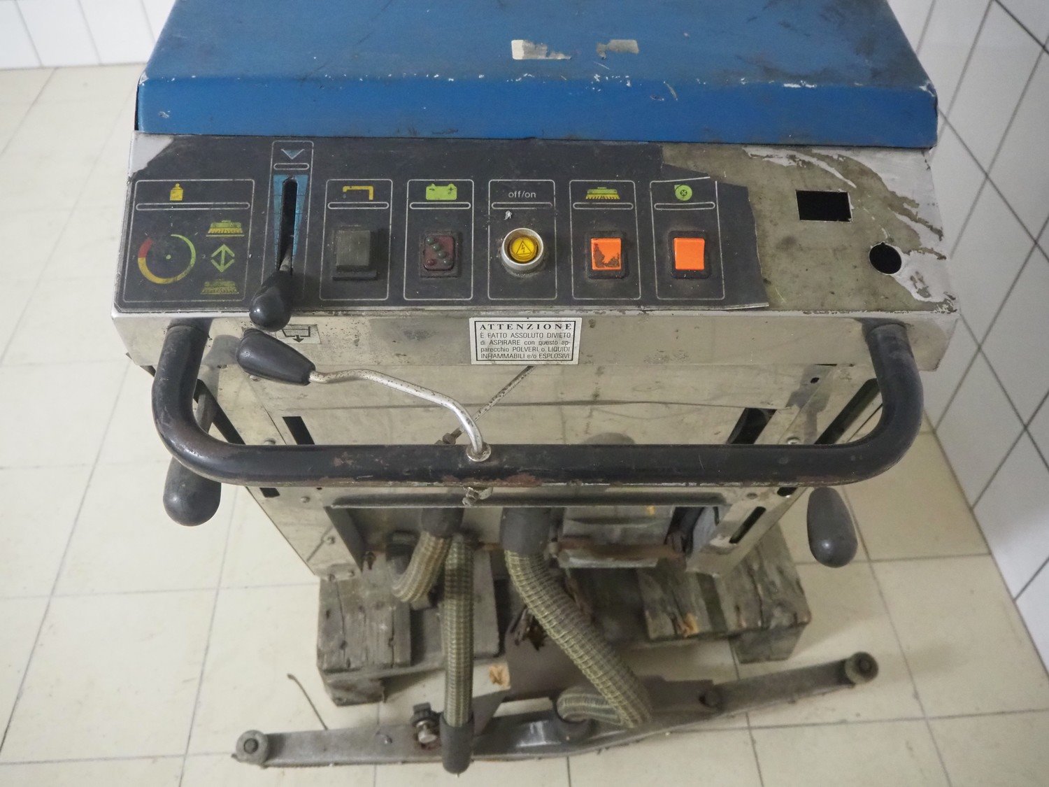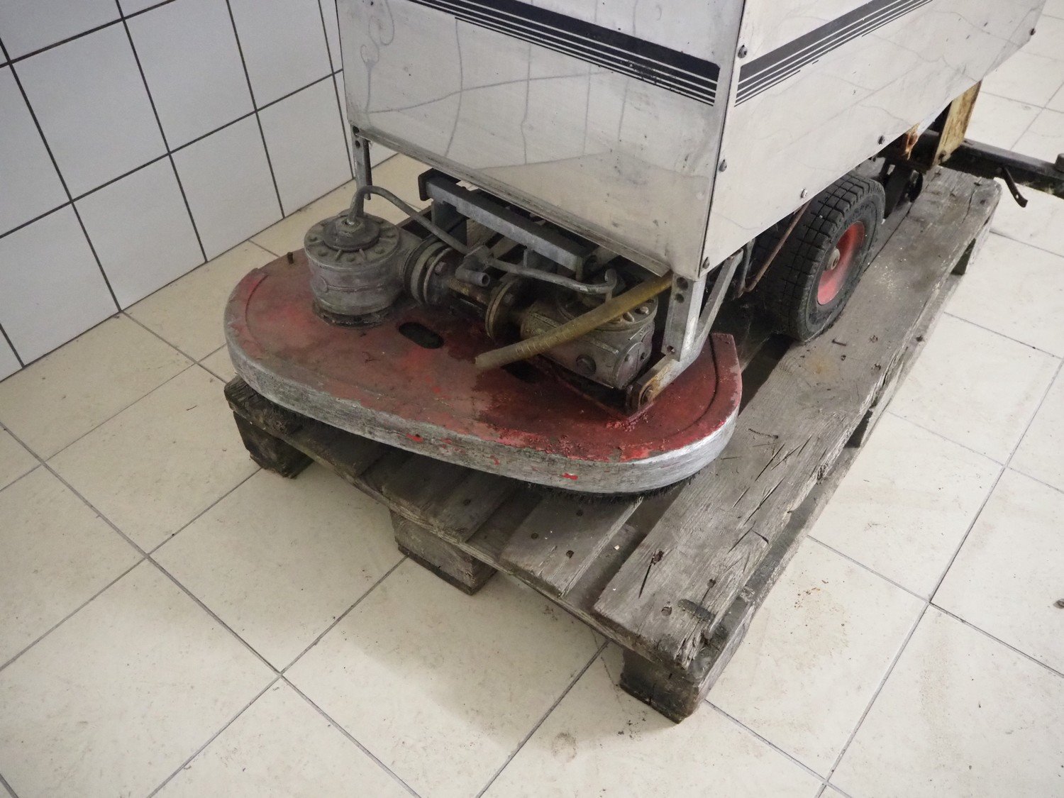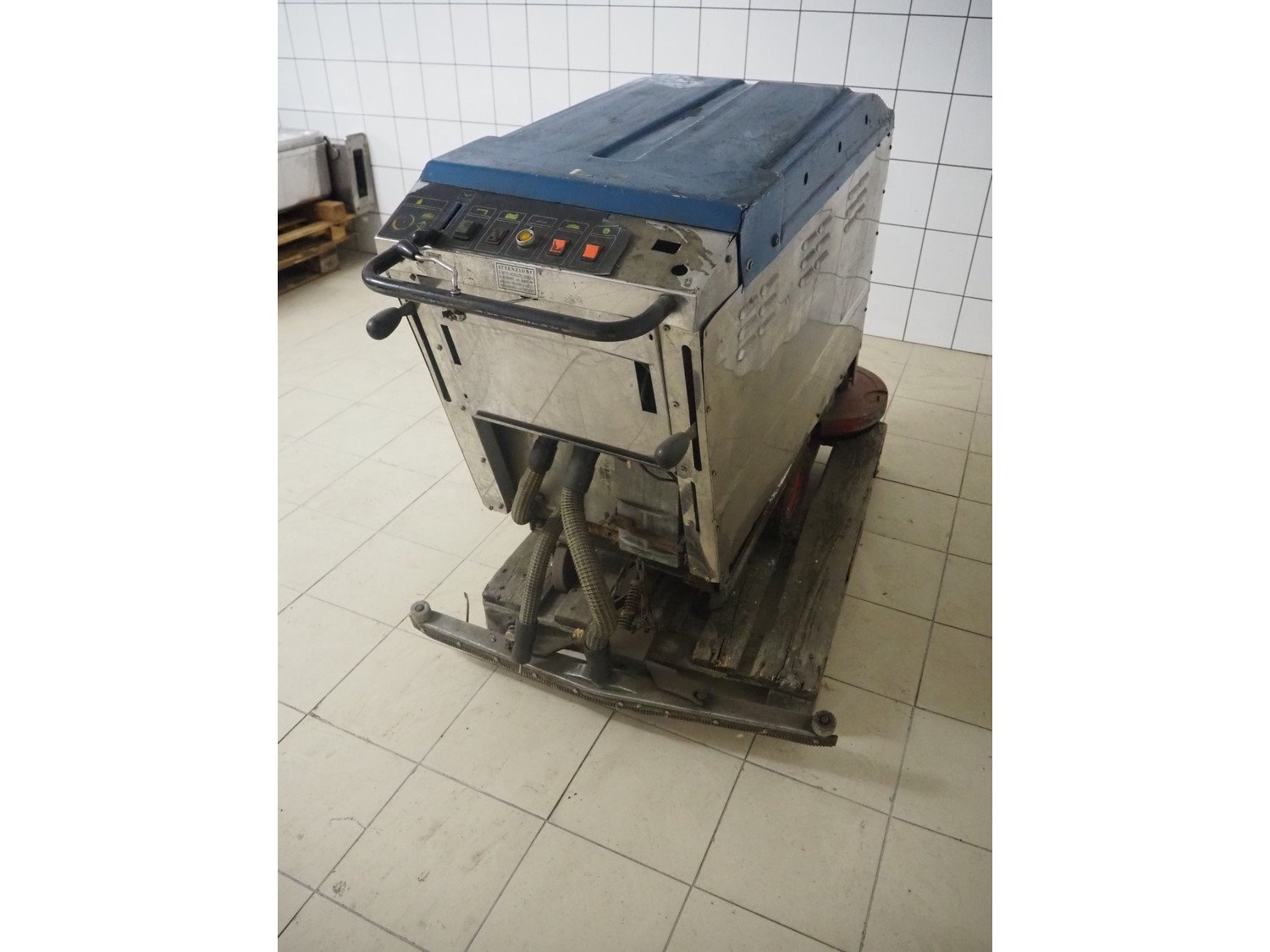 Comoc floor scrubbing machine, dimensions: 1510 mm x 950 mm x 1030 mm.