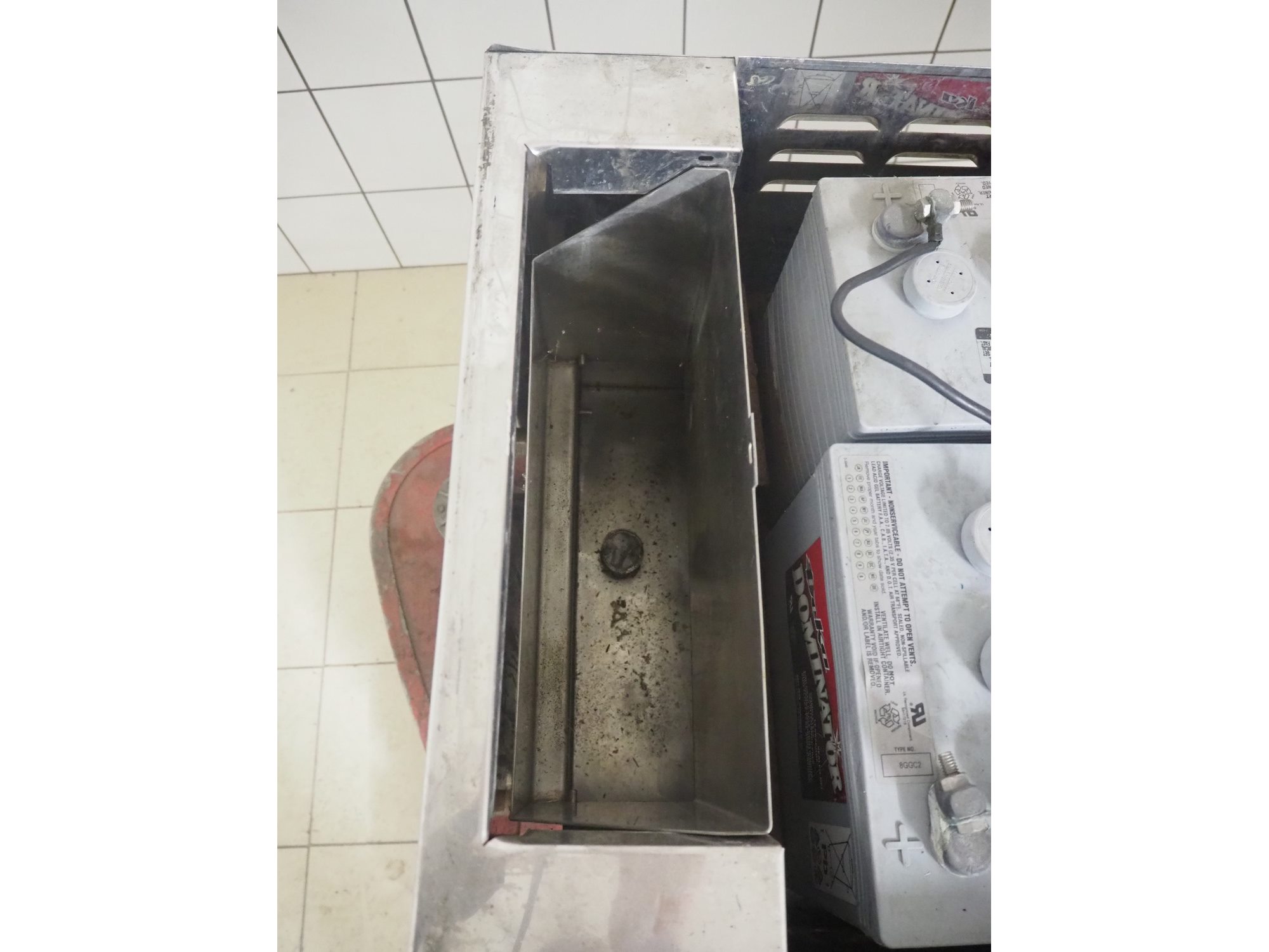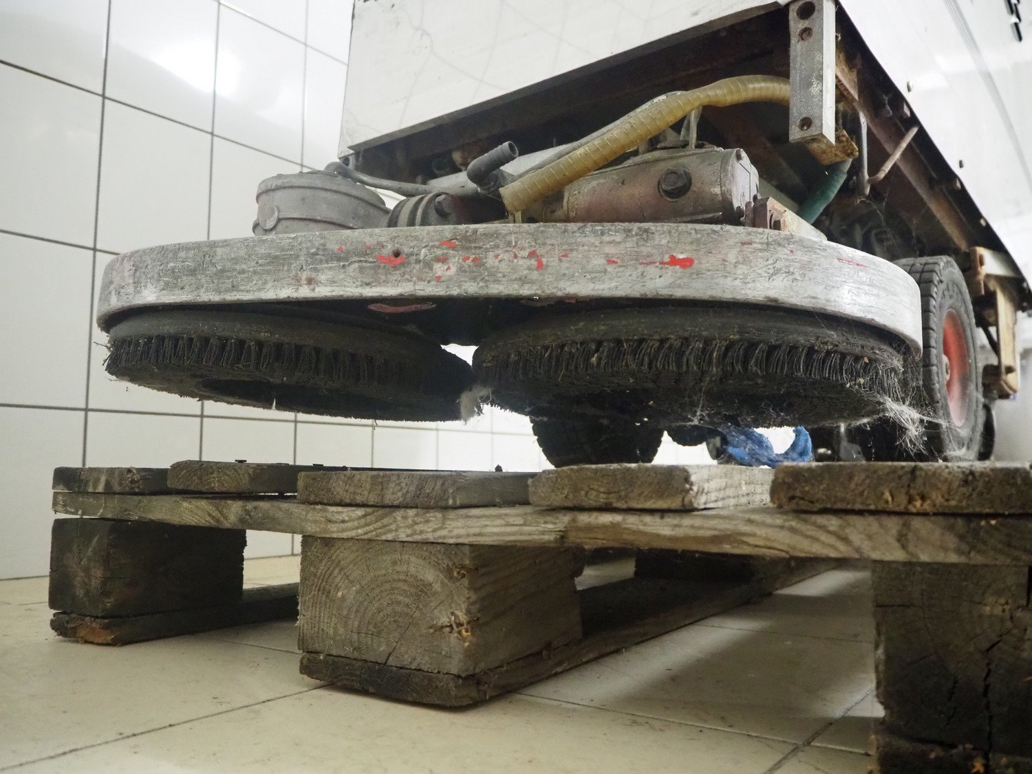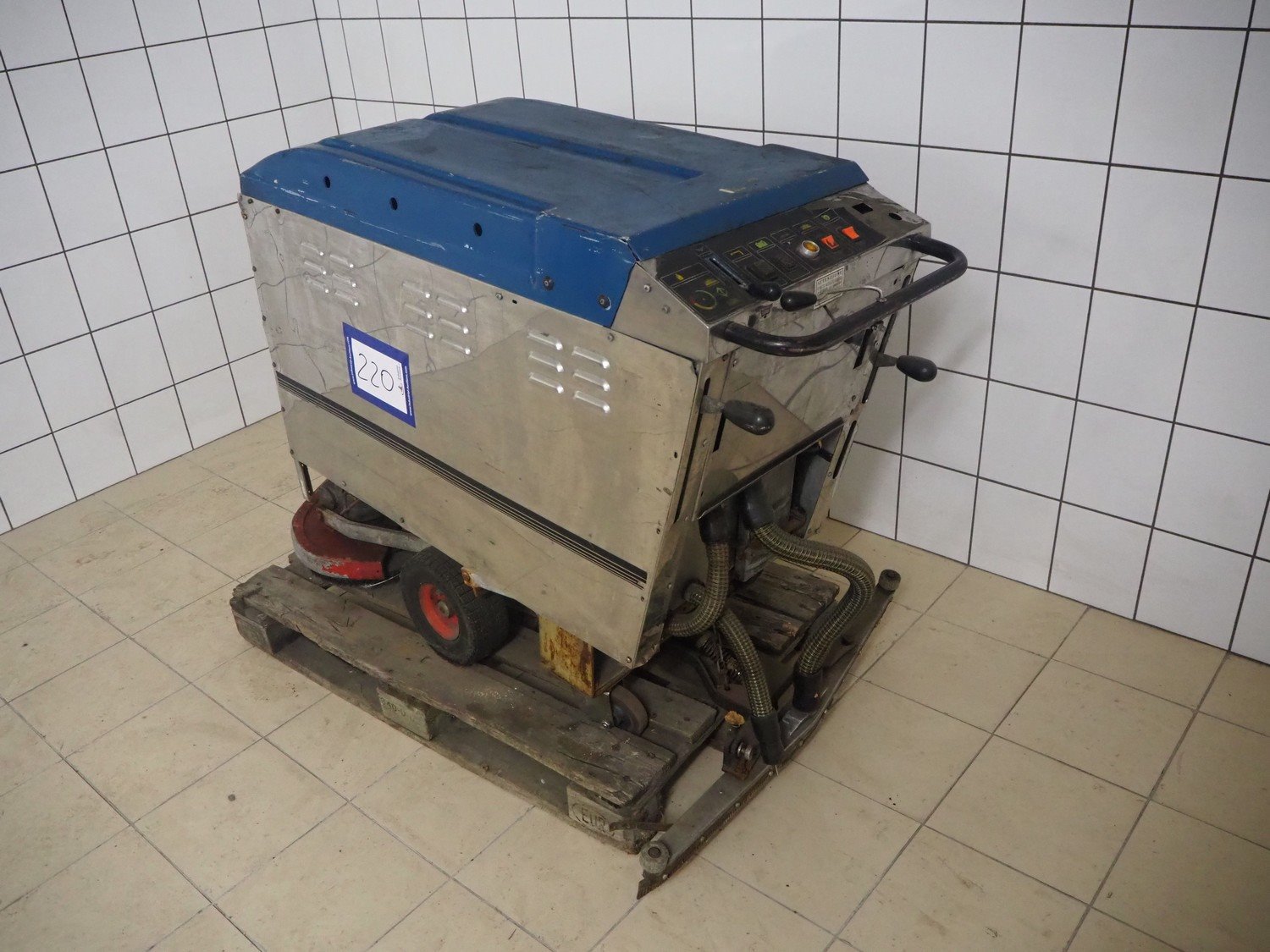 Comoc floor scrubbing machine, dimensions: 1510 mm x 950 mm x 1030 mm.
