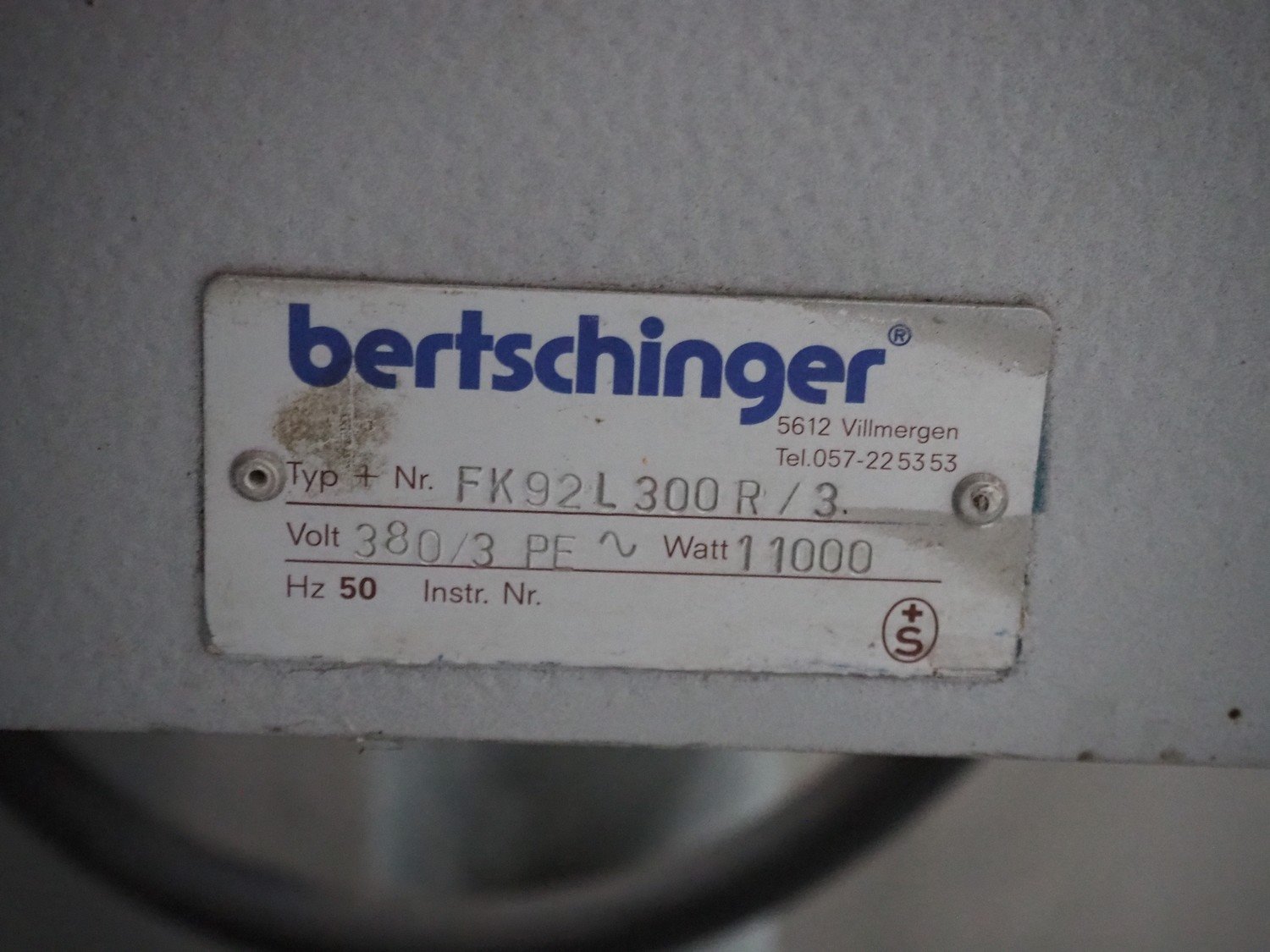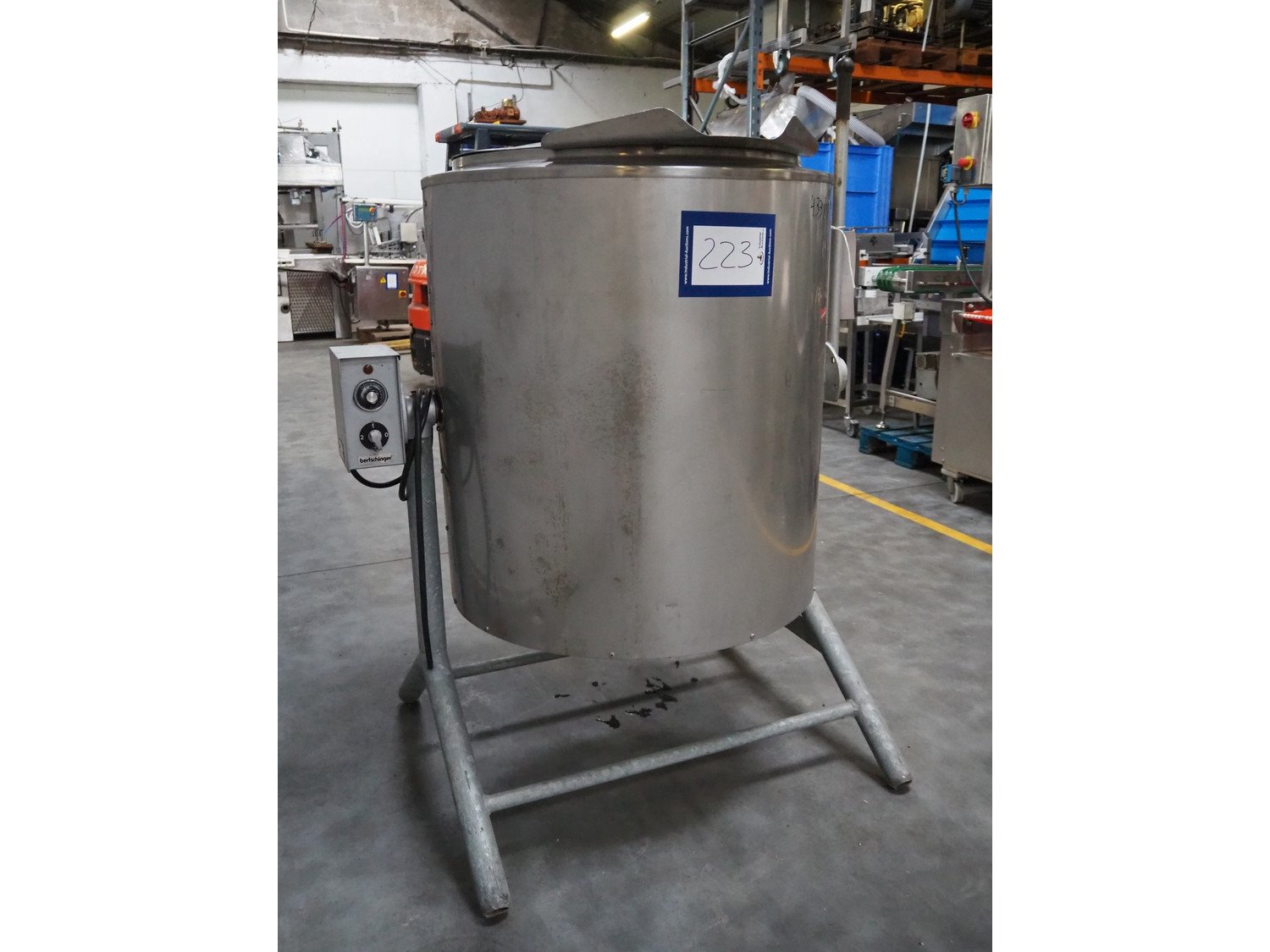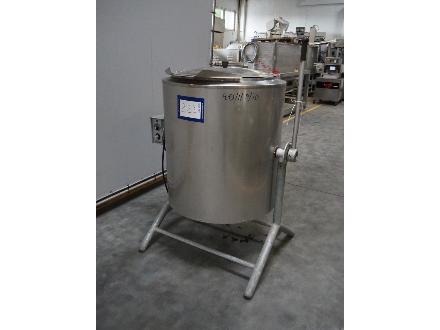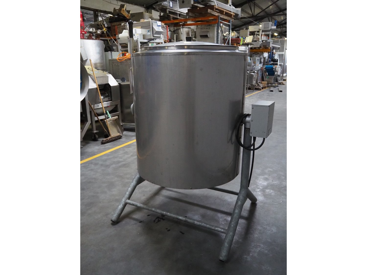 Bertschinger cooking vessel, type: FK92L300R/3, 380 V, 3 Ph, 50 Hz, 11000 W, capacity: 92 liter, dimensions: 1200 mm x 950 mm x 1630 mm.