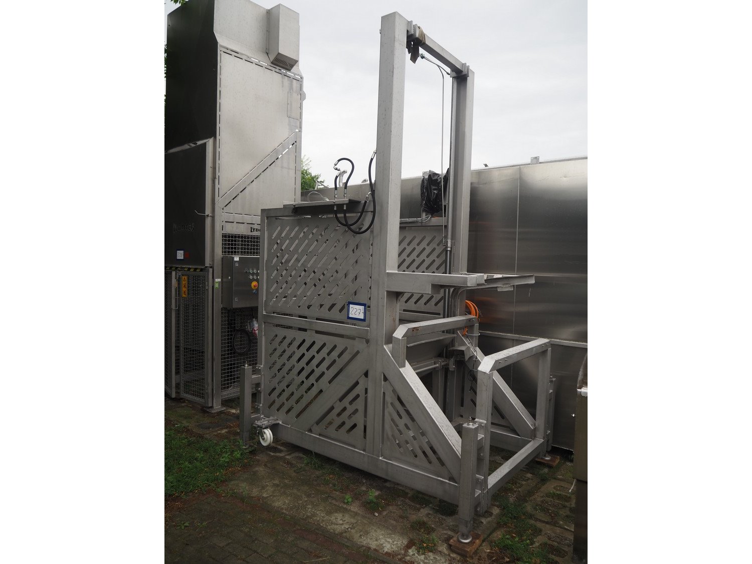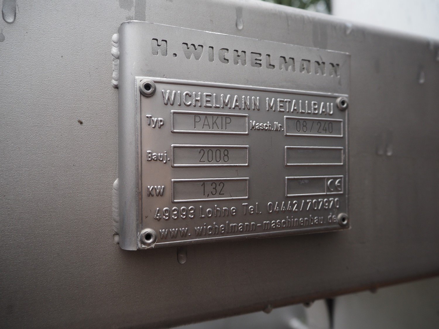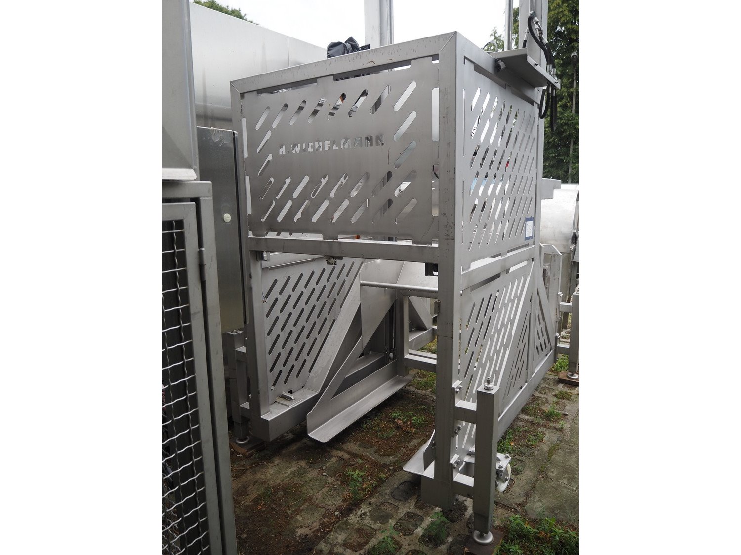 H.Wichelmann s/s lifter for pallet boxes, type: PAKIP, machine number: 08/240, year of construction: 2008, 1.32 kW, dimensions: 2400 mm x 1800 mm x 3600 mm.