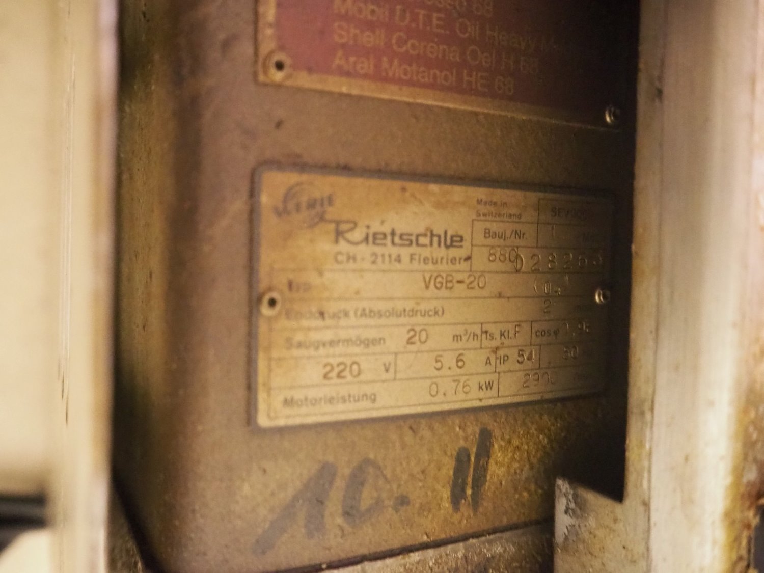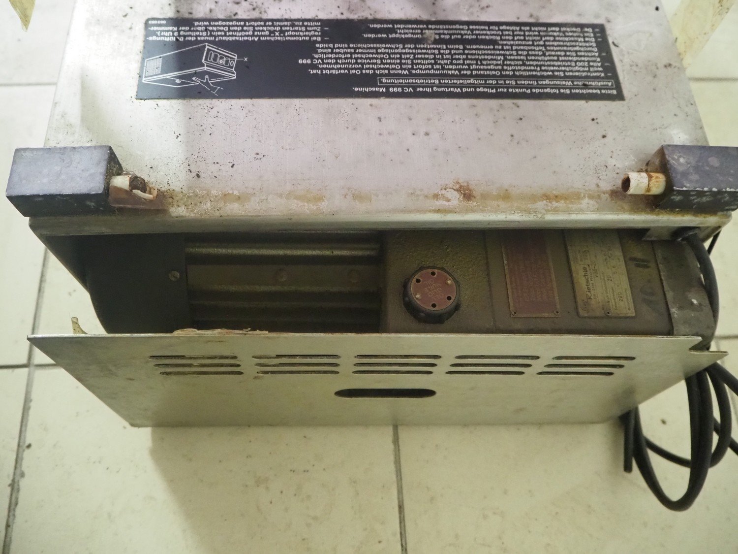 Inauen Maschinen AG vacuum machine, type: VC 999/06E, number: 06E881945, 220 V, 50 Hz, 10 A, 19 kW, seal width: 350 mm, dimensions chamber: 350 mm x 360 mm, Rietschle vacuum pump, type: VGB-20, capacity: 20 m³/h, total dimensions: 650 mm x 400 mm x 250 mm.