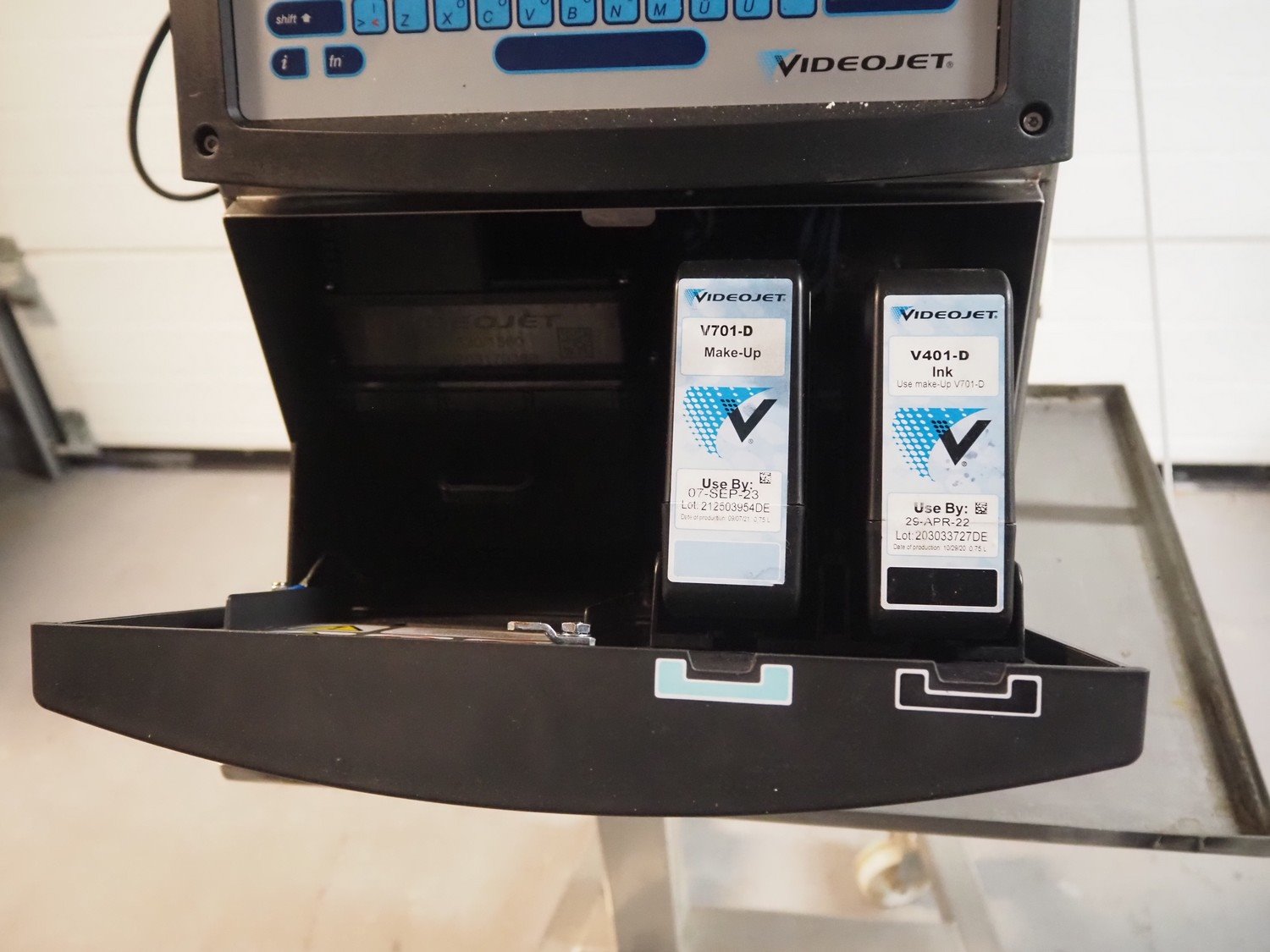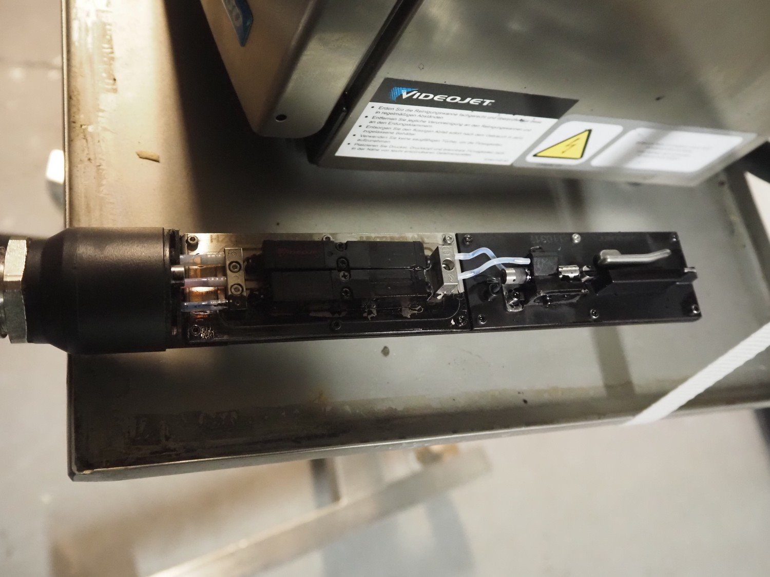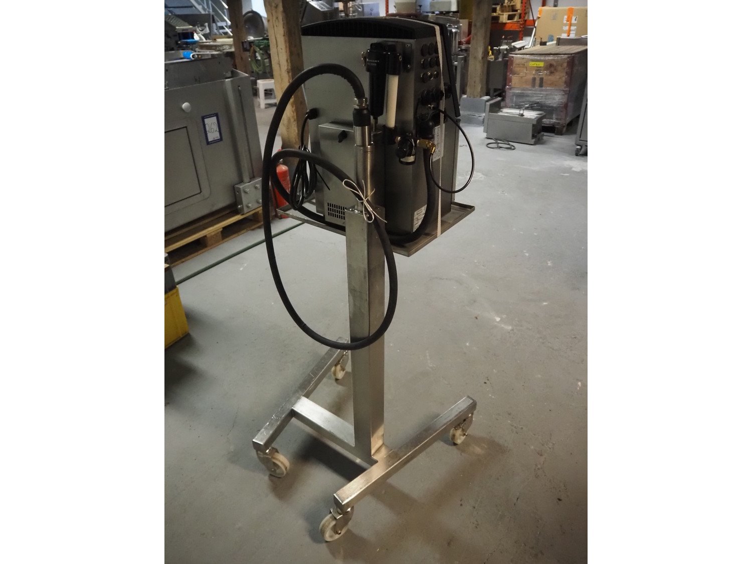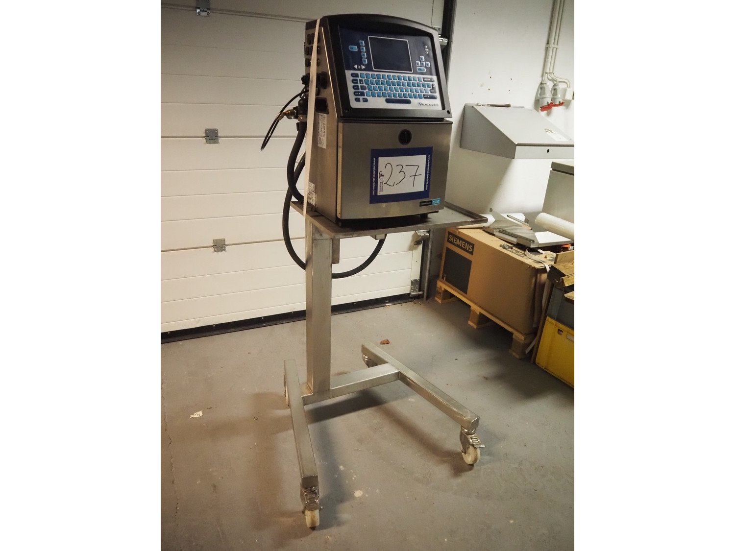 Videojet inkjet printer on s/s mobile frame, model: 1530, serial number: 1708001C44ZH, 100-120/200-240 V, 1 Ph, 50/60 Hz, 3 A, 120 W, dimensions: 700 mm x 700 mm x 1510 mm.