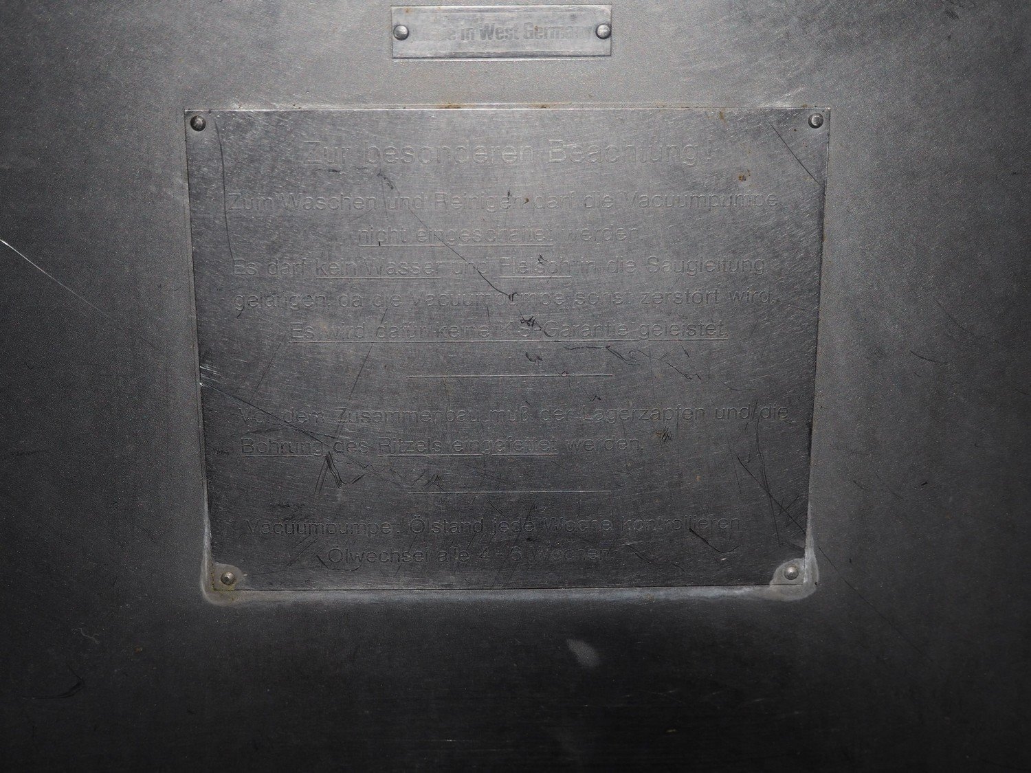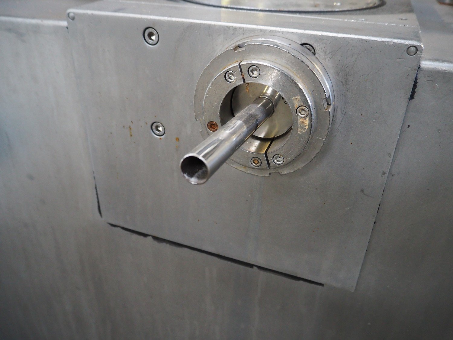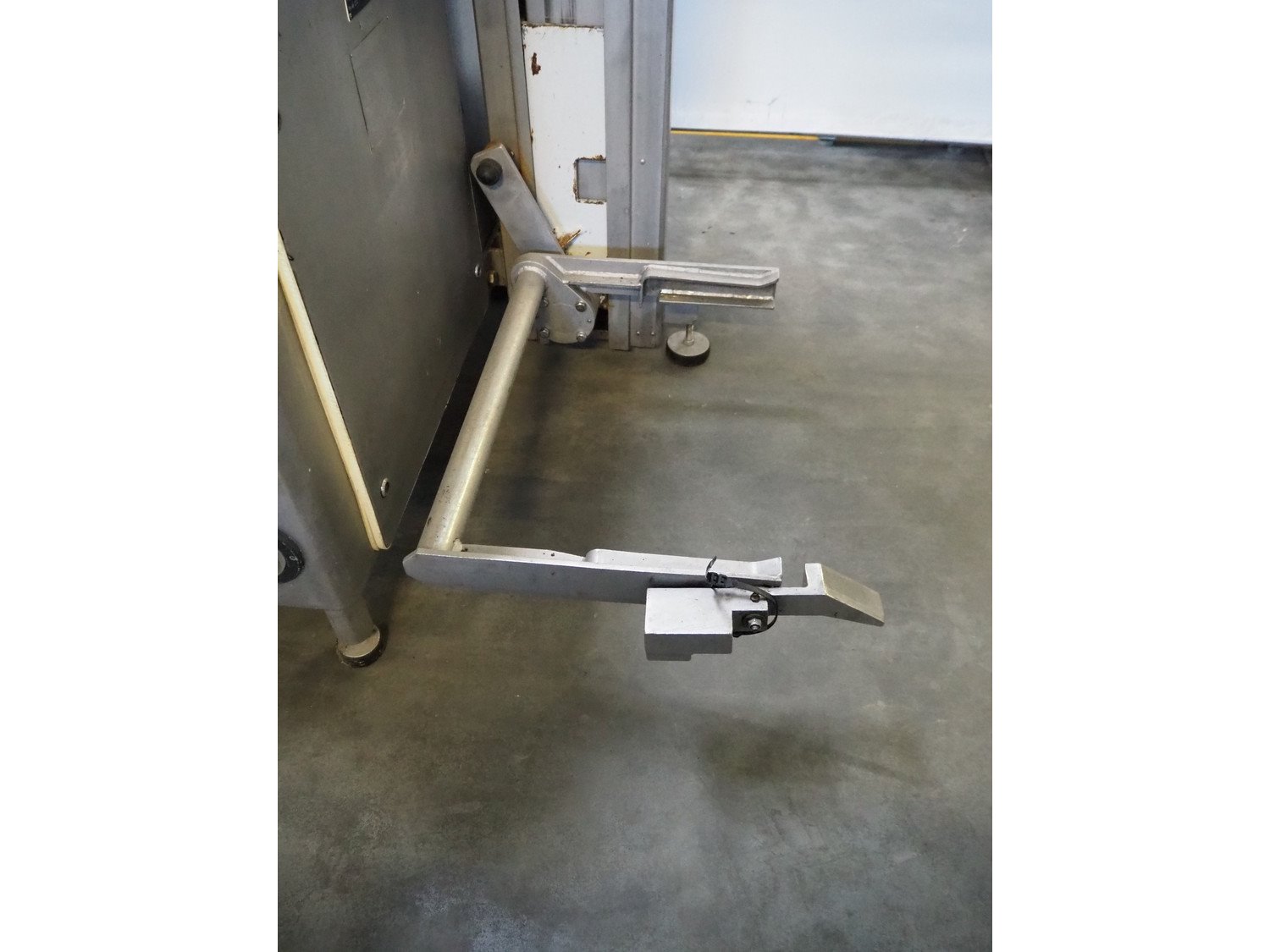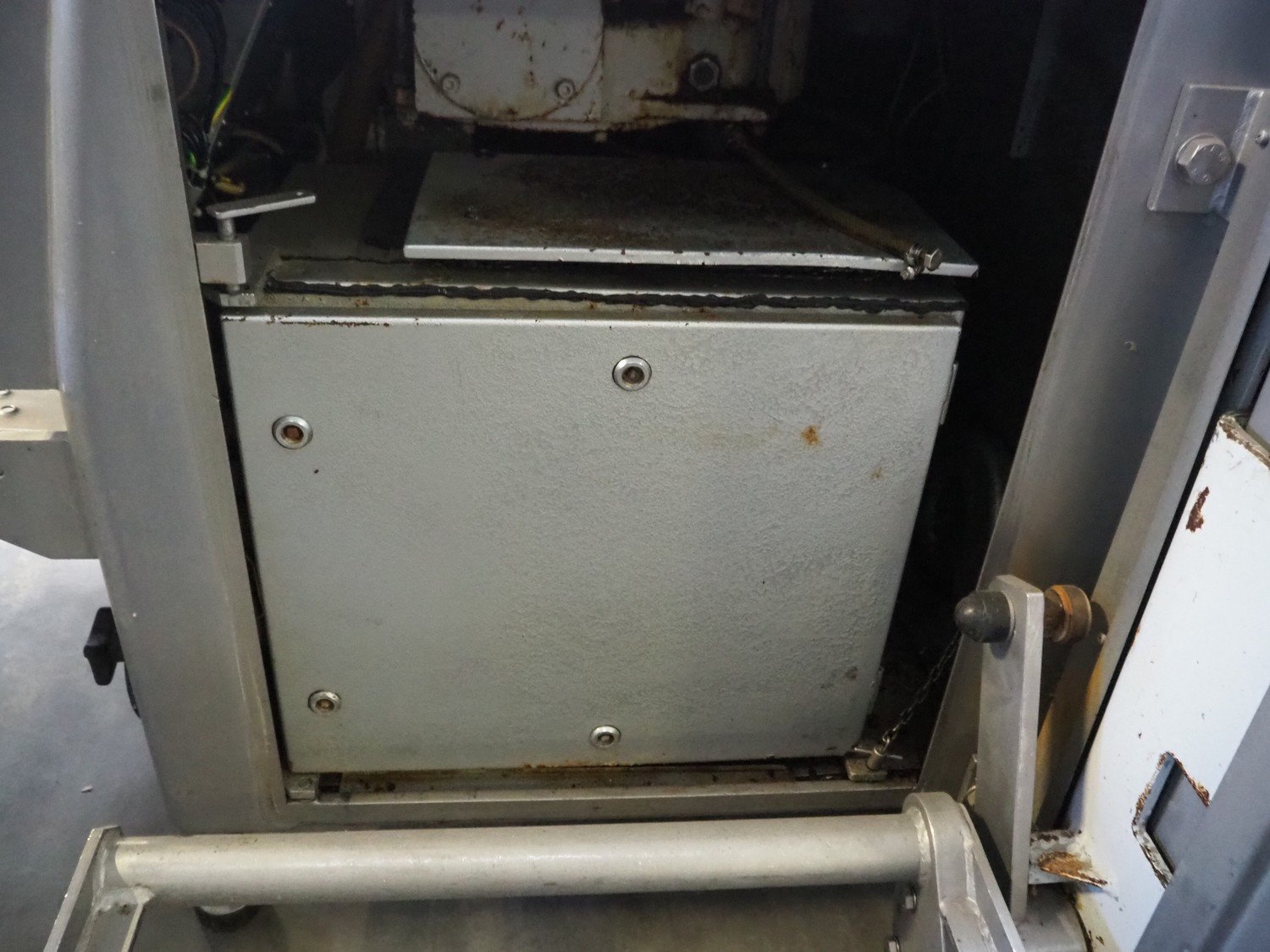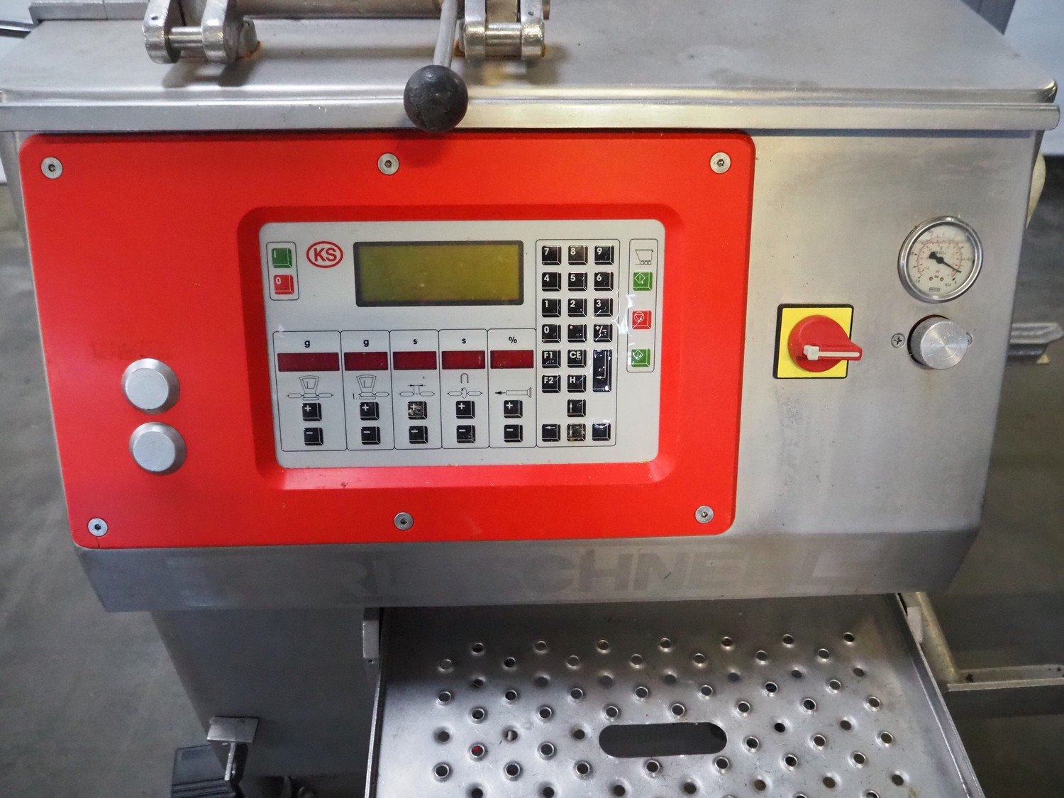 Karl Schnell vacuum filling machine with lifter for 200 liter meat bins, model: P10, type: 573 SE, number: 20547, 380 V, 3 Ph, 50 Hz, 15.8 A, 7.5 kW, Seevic vacuum pump, model: SV45FP, dimensions: 1800 mm x 1370 mm x 2400 mm. Including 3 crates with extra parts.