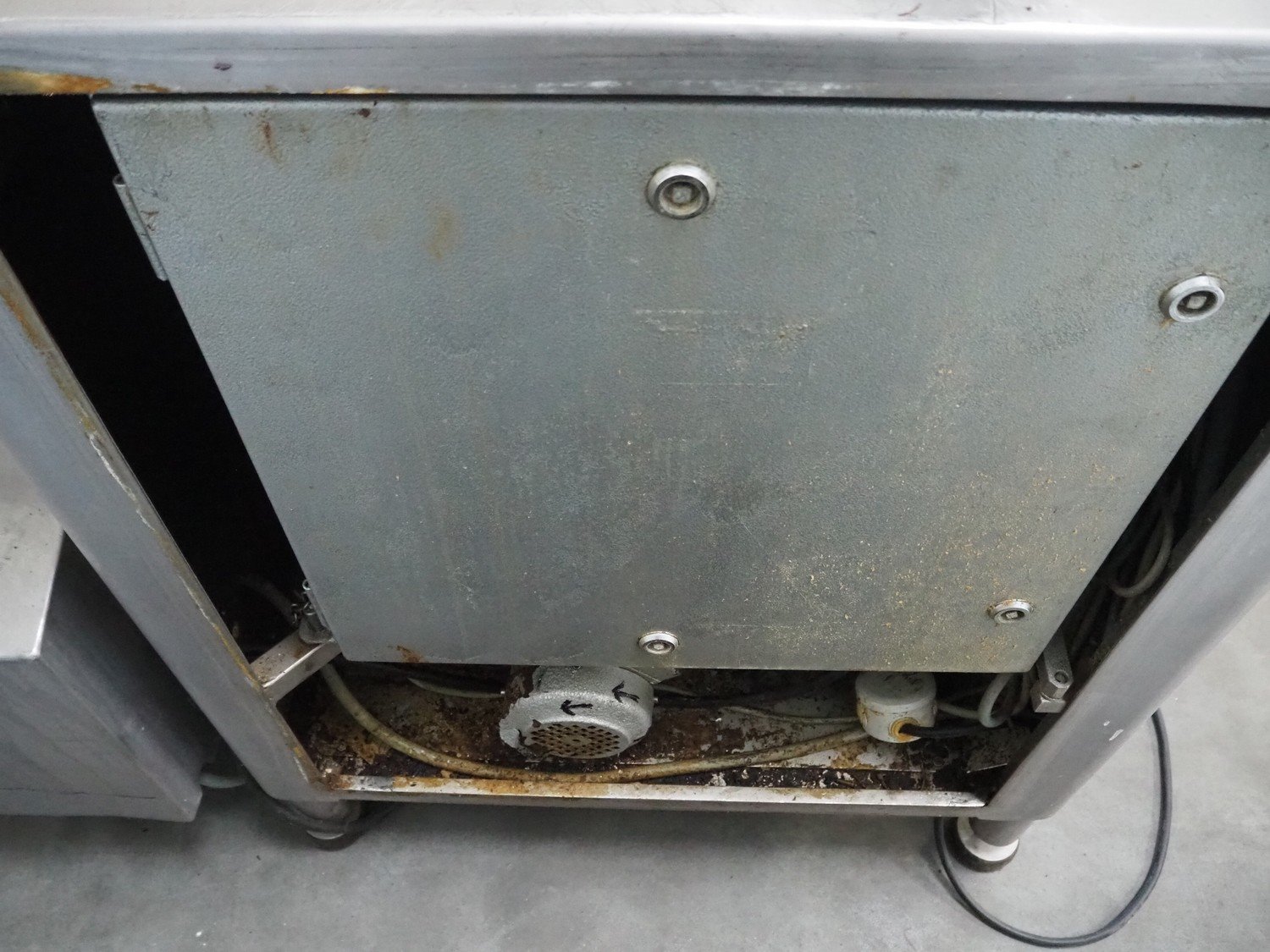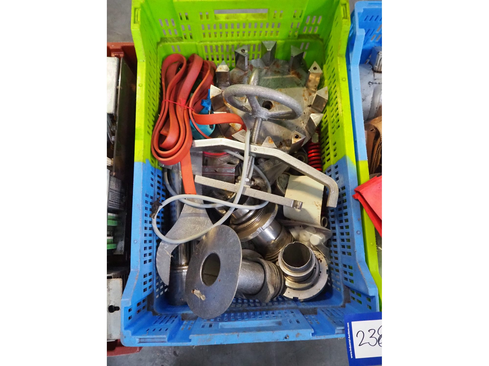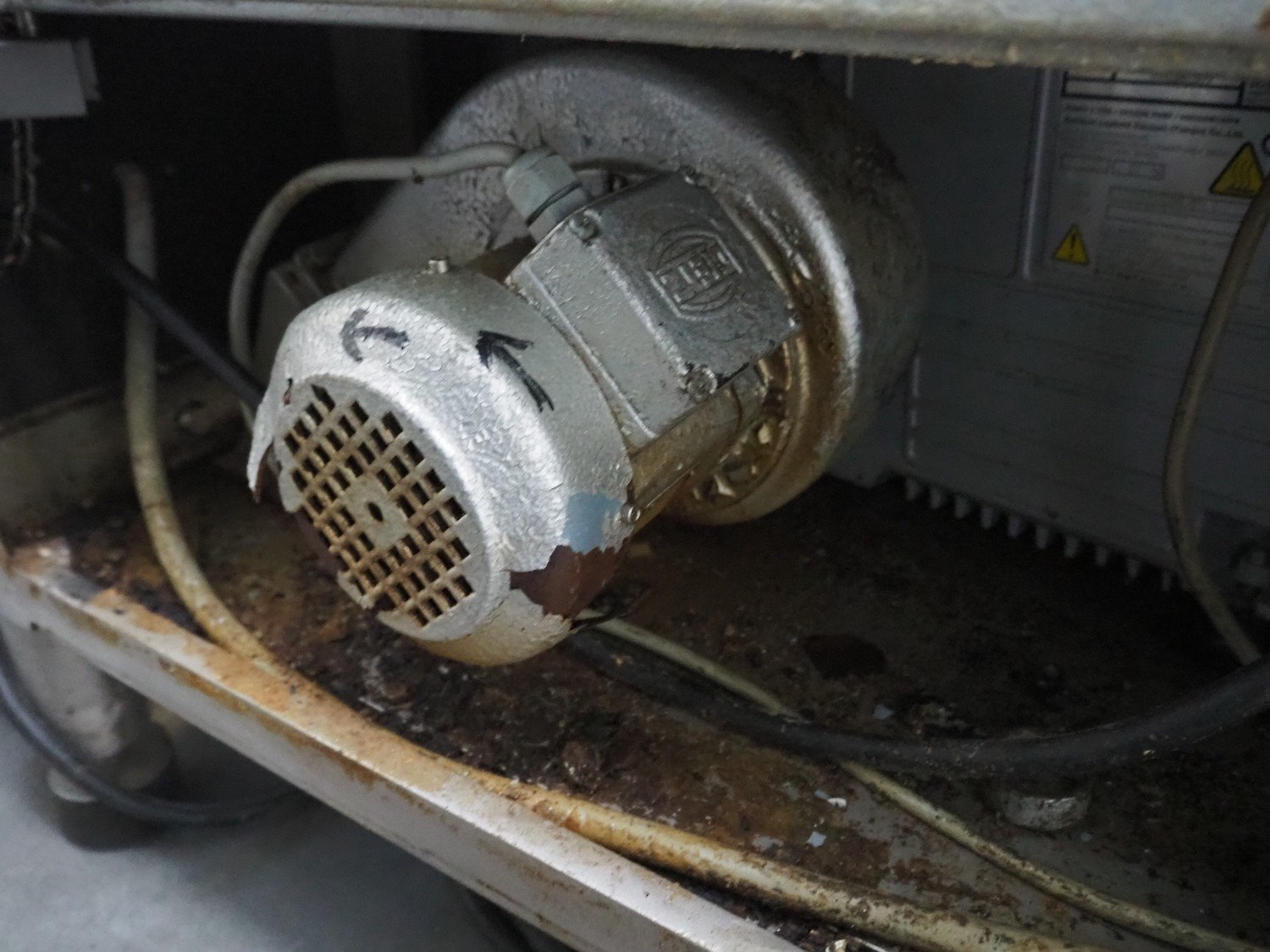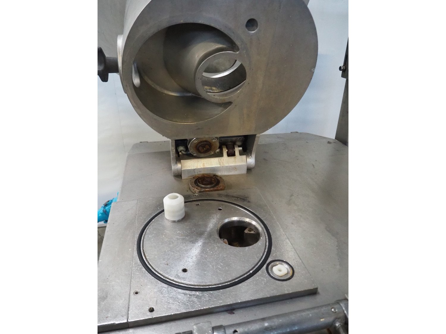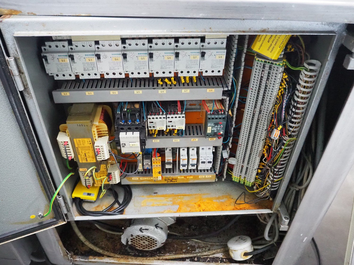 Karl Schnell vacuum filling machine with lifter for 200 liter meat bins, model: P10, type: 573 SE, number: 20547, 380 V, 3 Ph, 50 Hz, 15.8 A, 7.5 kW, Seevic vacuum pump, model: SV45FP, dimensions: 1800 mm x 1370 mm x 2400 mm. Including 3 crates with extra parts.