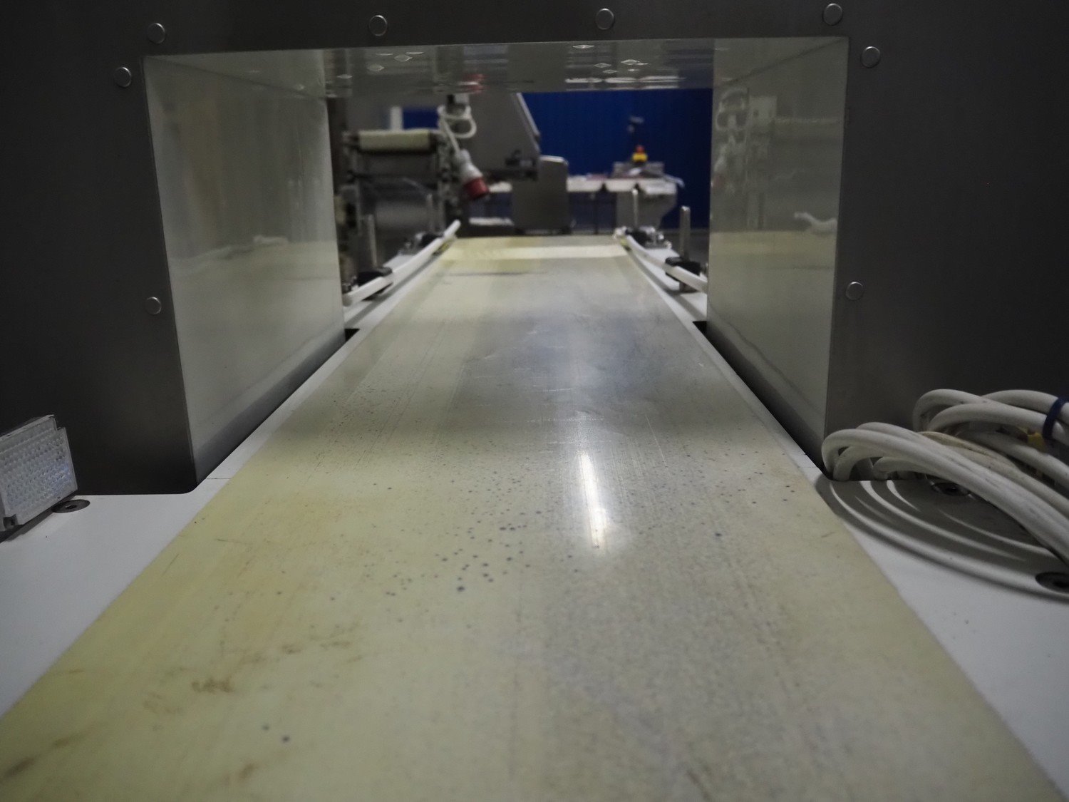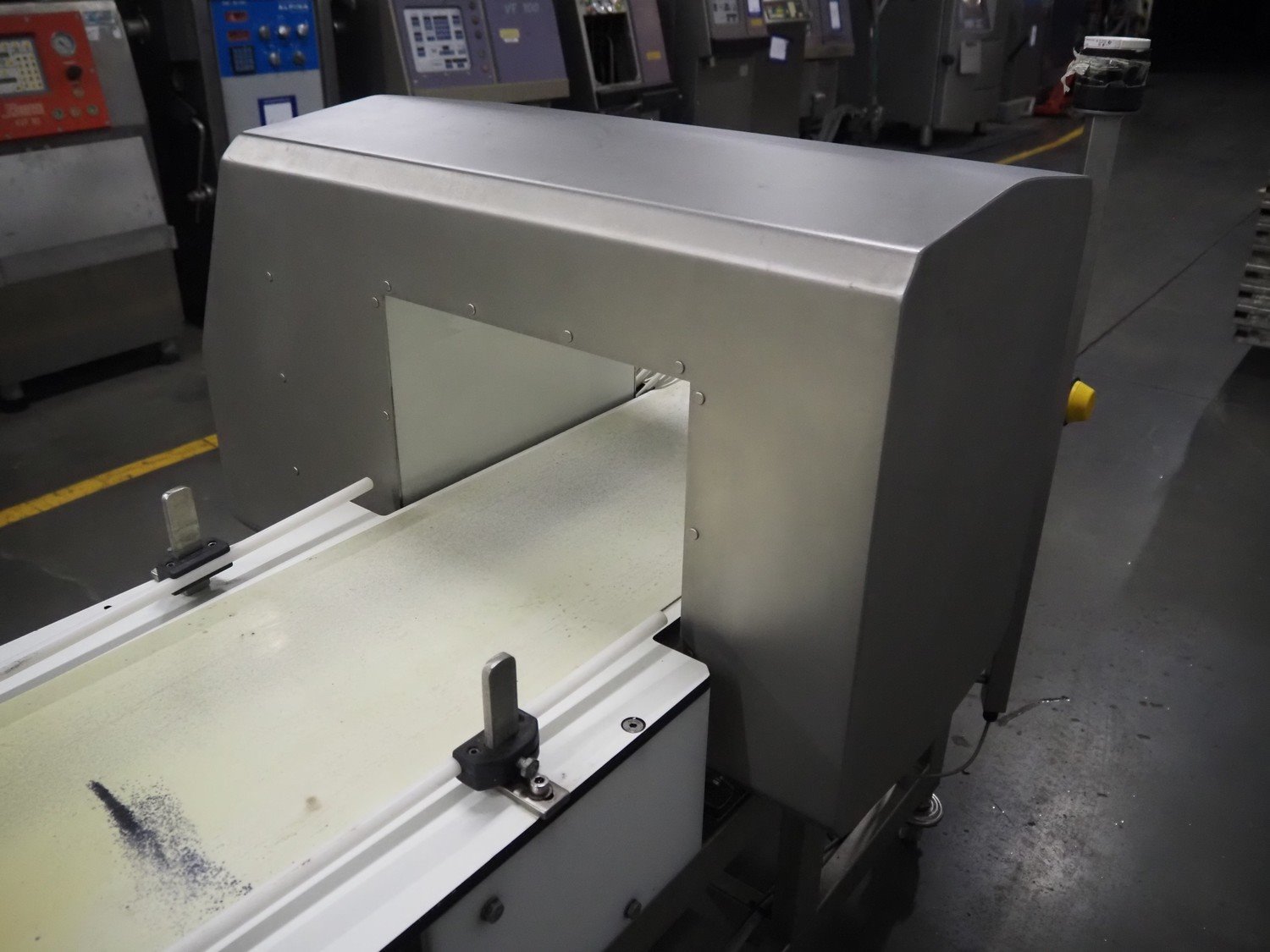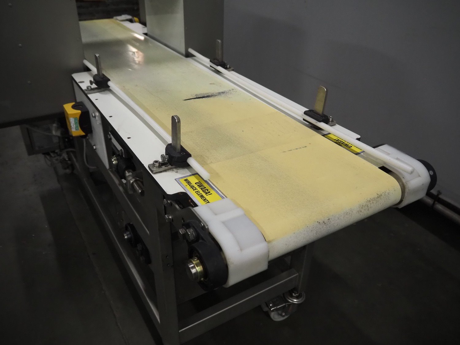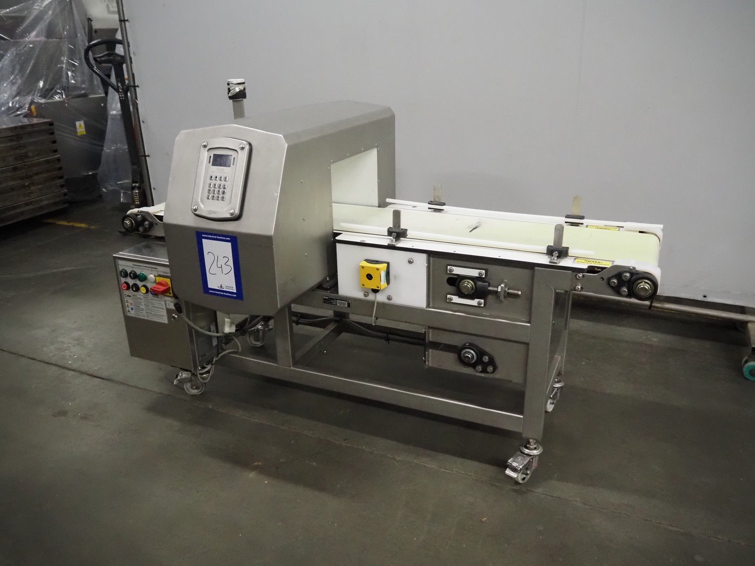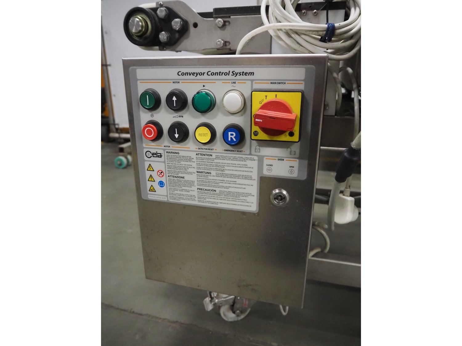 Ceia mobile metal detector, model: T/21, serial number: 21100219048, year of construction: 2011, 200-240 V, 1 Ph, 50/60 Hz, 11.4 A, plastic belt, belt width: 300 mm, clearance: 350 mm x 210 mm, total dimensions: 1820 mm x 850 mm x 1130 mm.