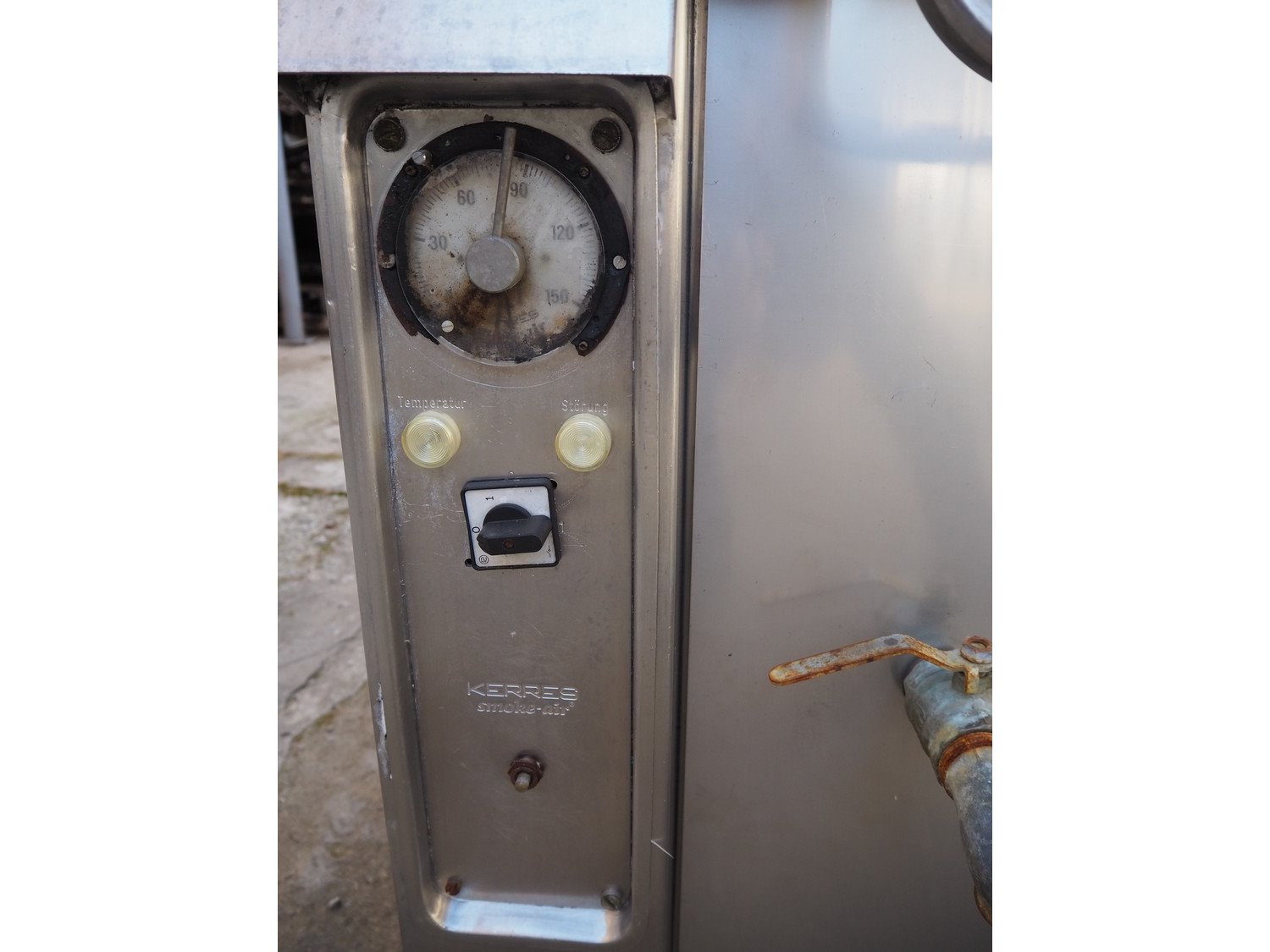 Kerres cooking vessel, gas heated, inside dimensions: 900 mm x 800 mm x 400 mm, total dimensions: 1300 mm x 1150 mm x 1000 mm.