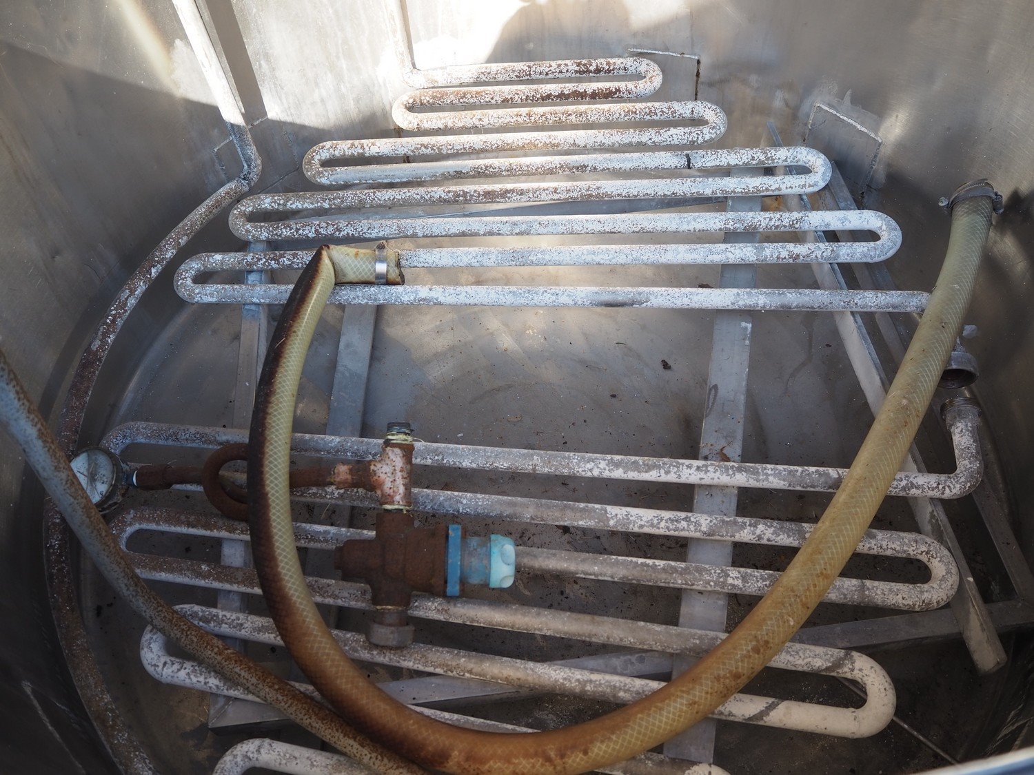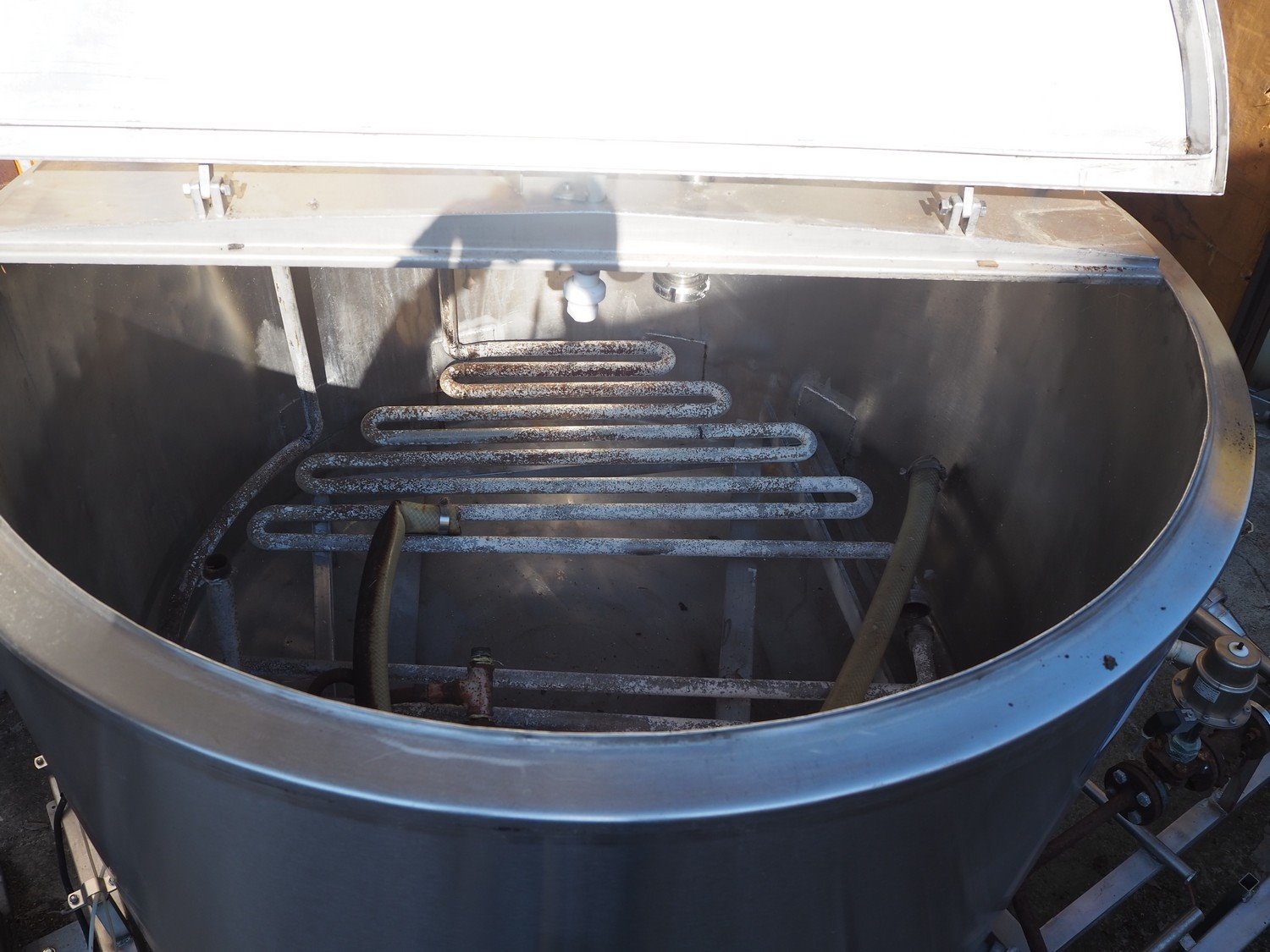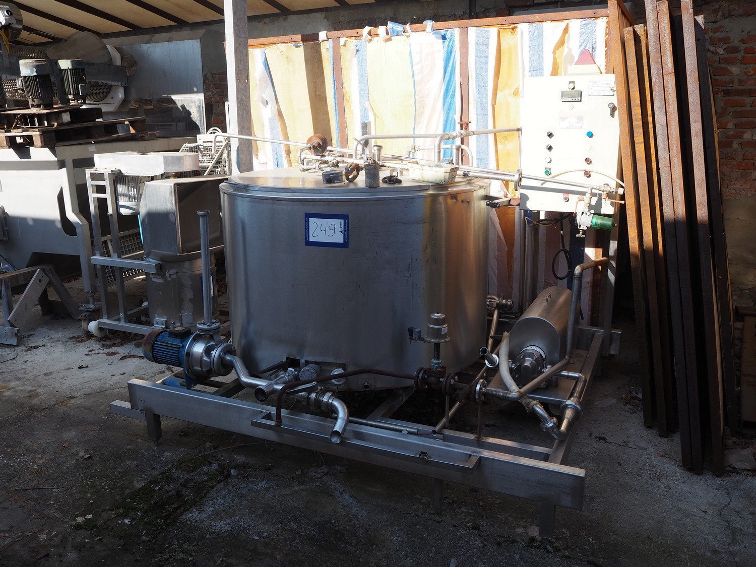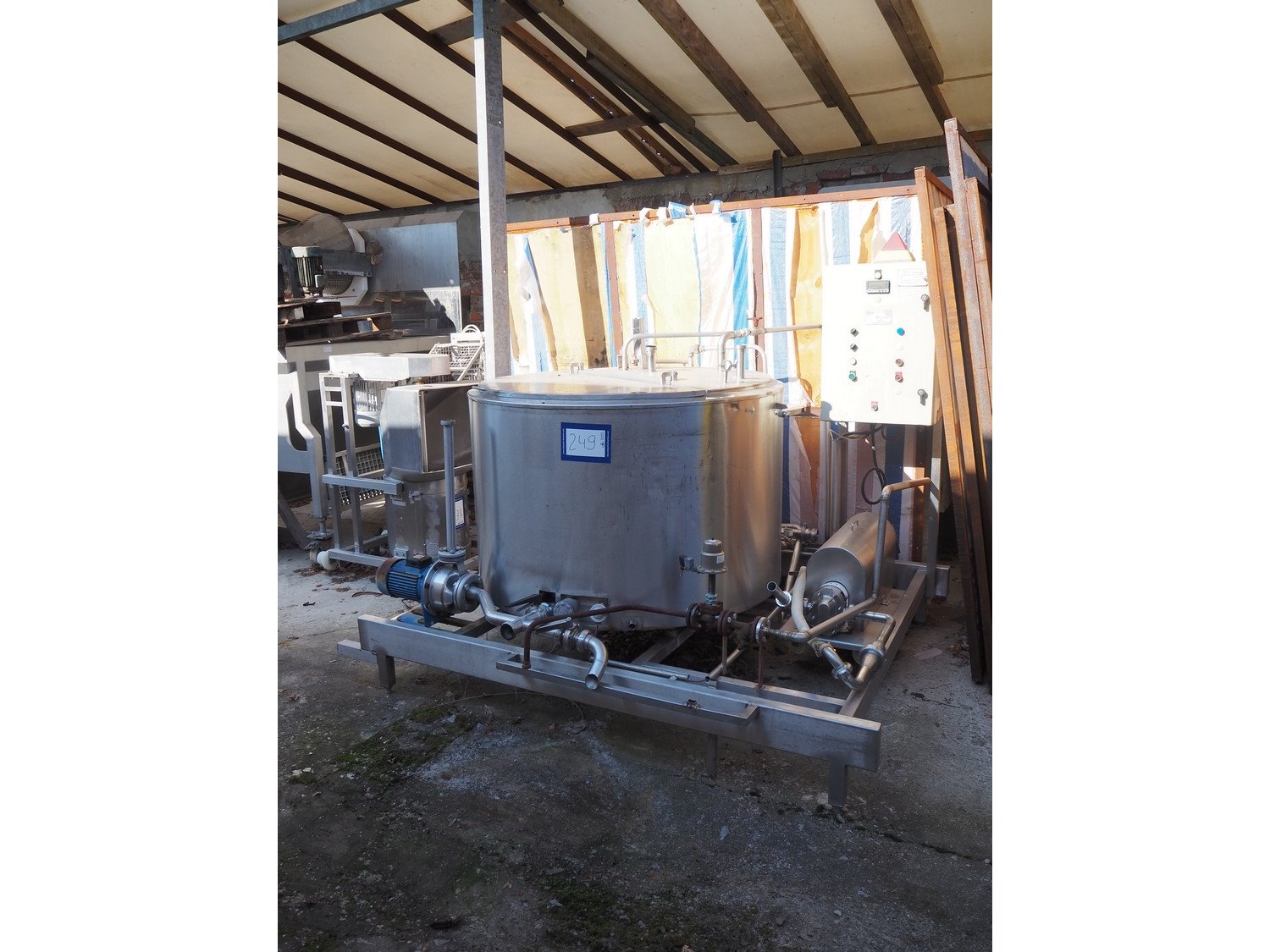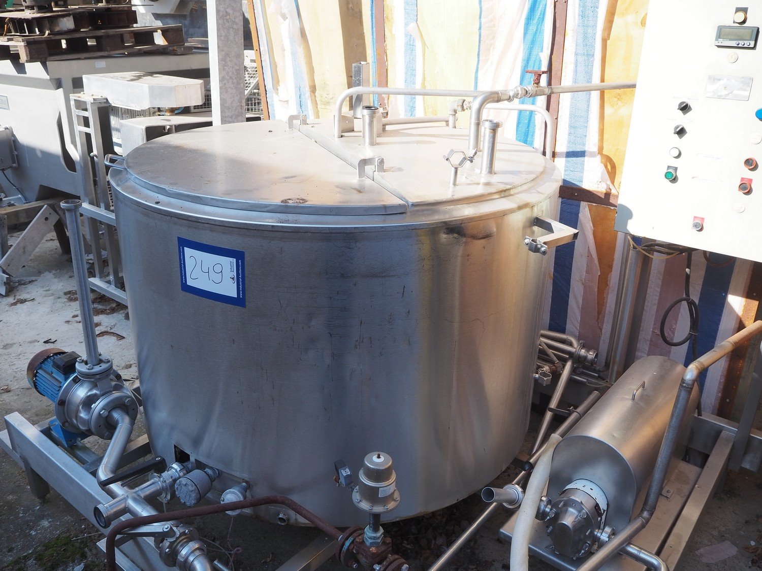 Tech Montage double jacketed s/s cooking vessel on s/s frame, steam heated, inside dimensions: 1300 mm x 1300 mm x 800 mm, total dimensions: 2200 mm x 1900 mm x 1900 mm.