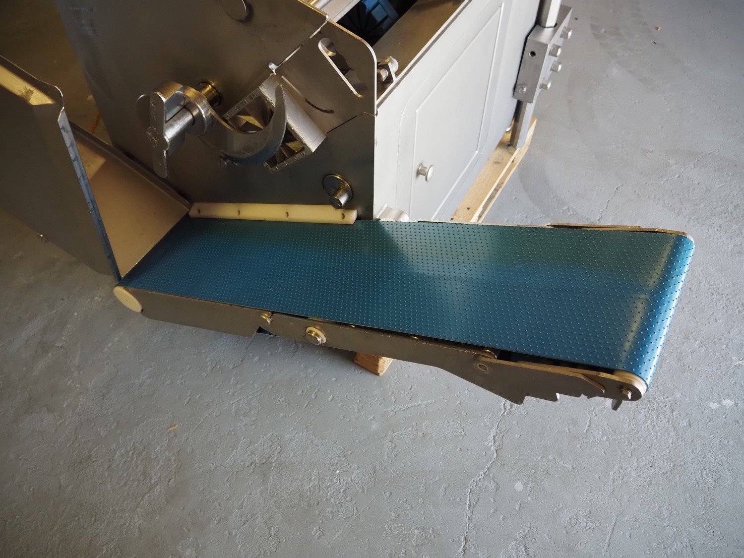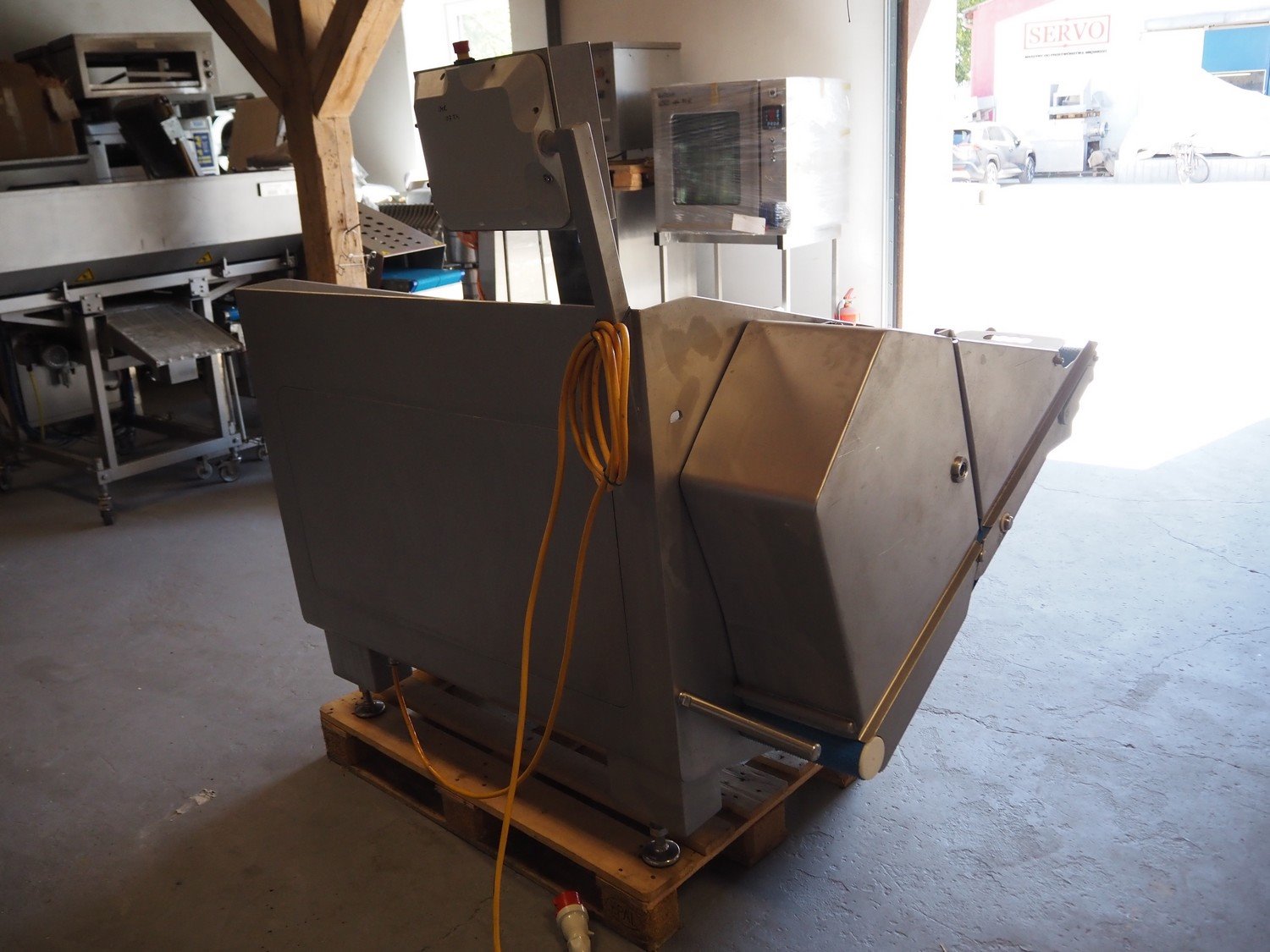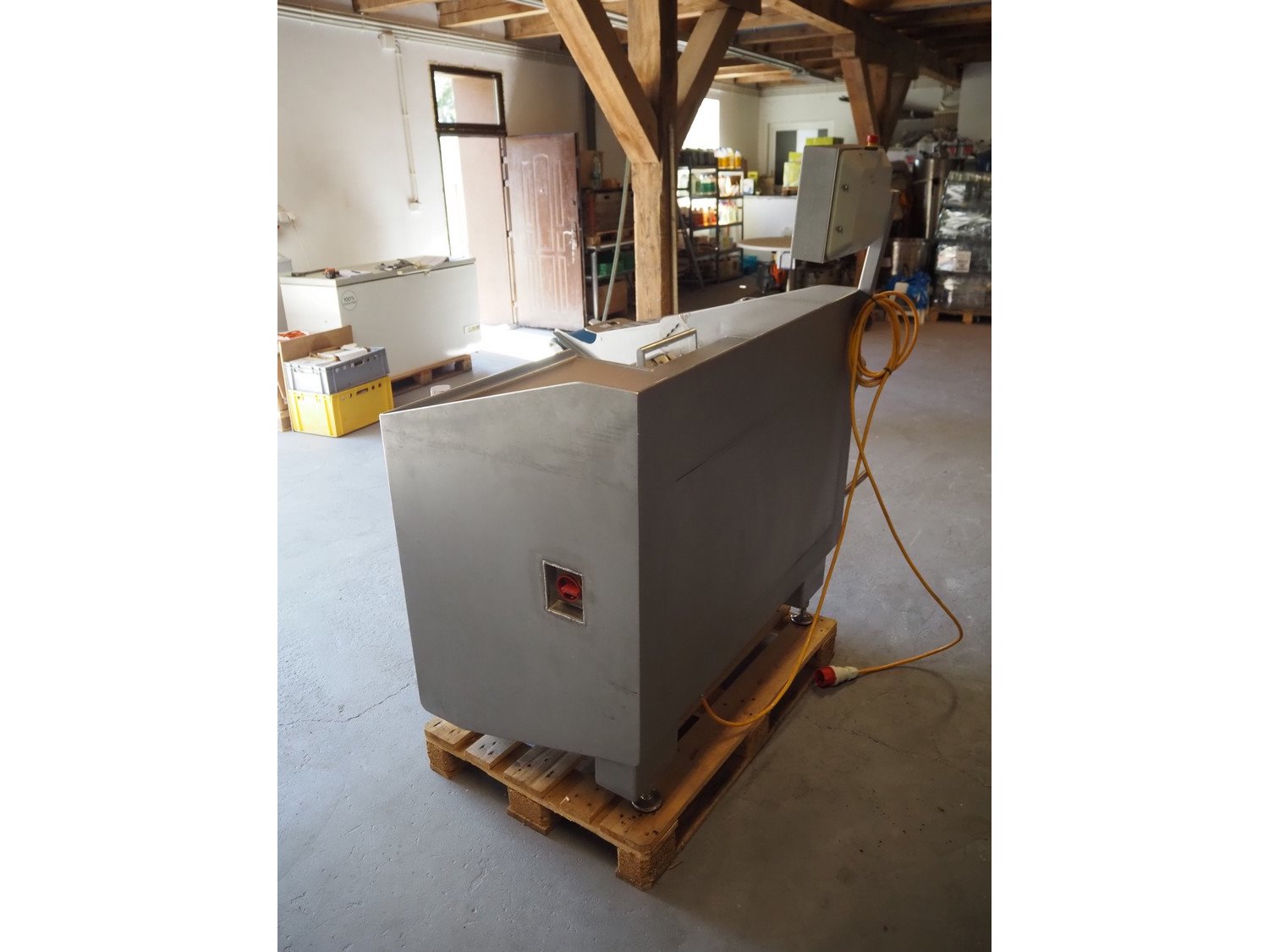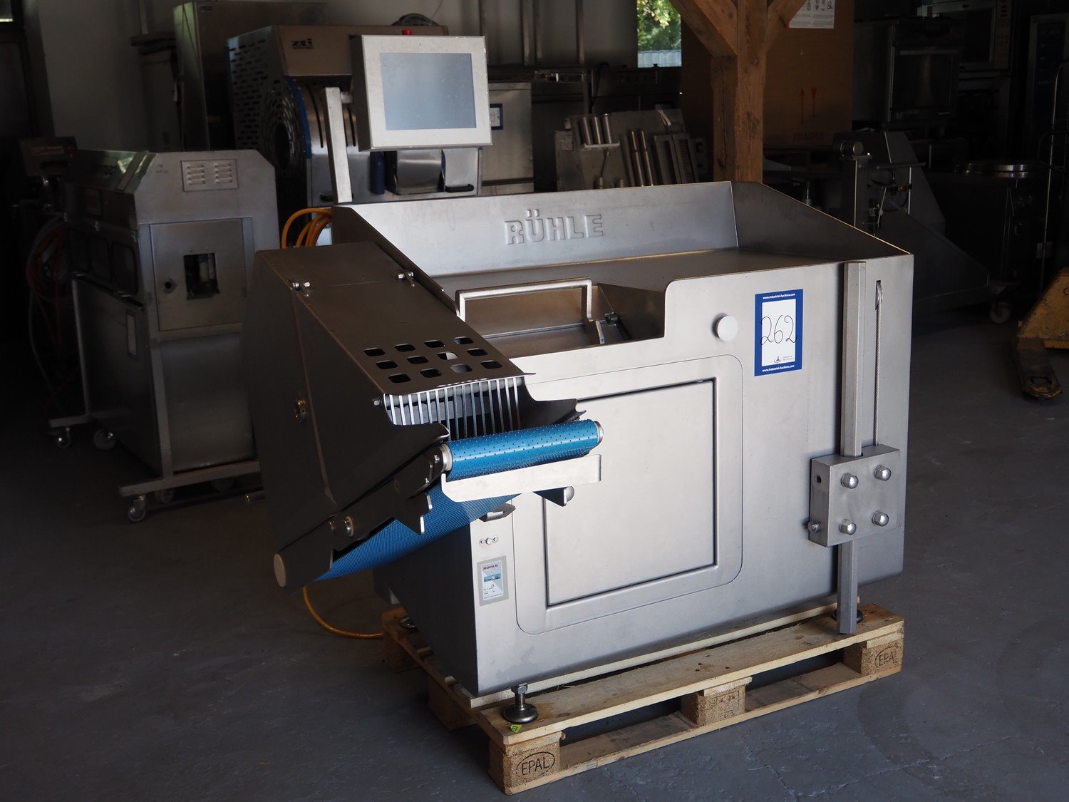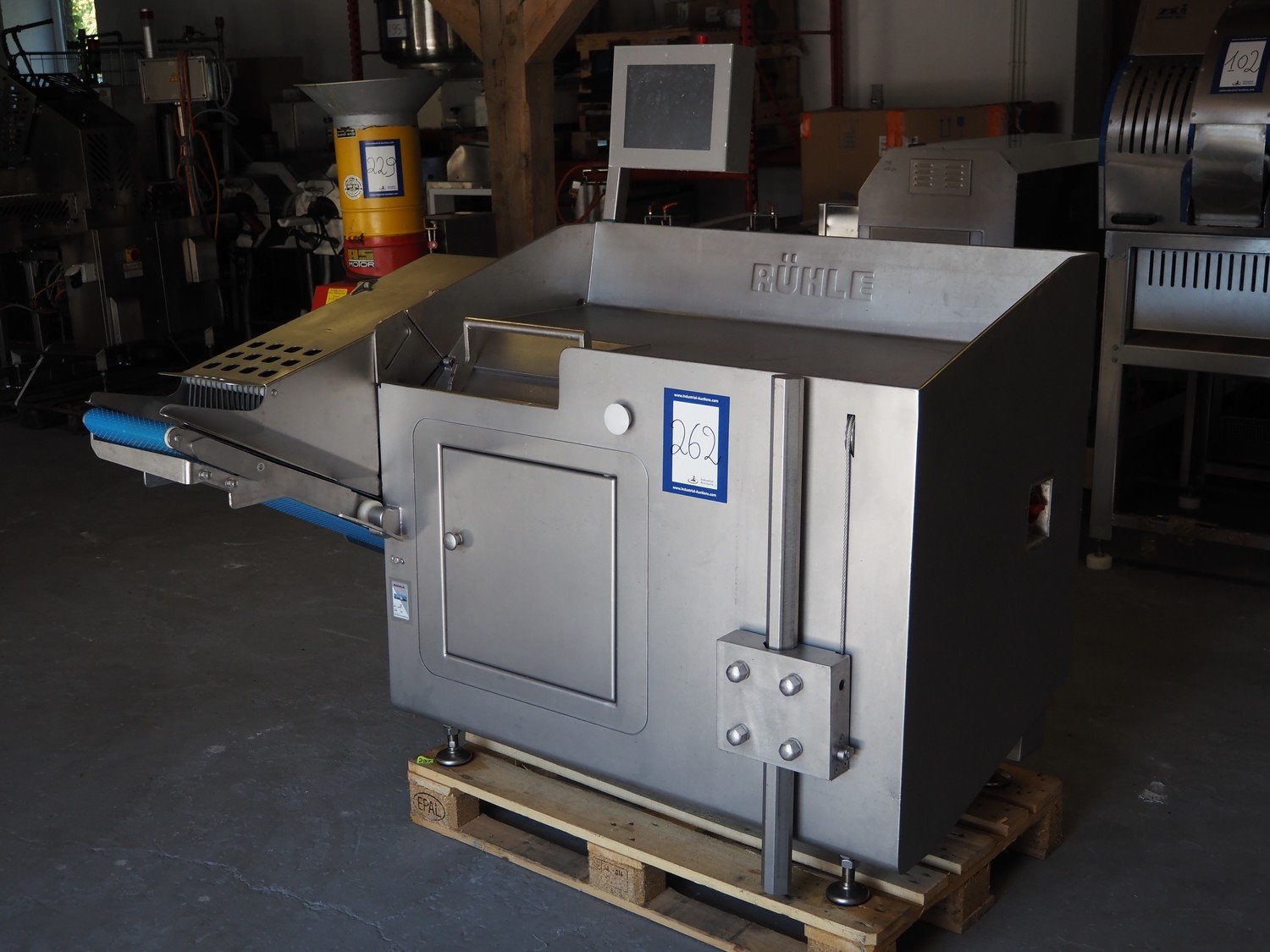 Rühle dicer, type: SR 2 turbo, number: 181, year of construction: 2004, 400 V, 3 Ph, 50 Hz, 16 A, 6.8 kW, chamber dimensions: 145 mm x 145 mm, plastic belt, belt width: 260 mm, total dimensions: 1280 mm x 1600 mm x 1700 mm.