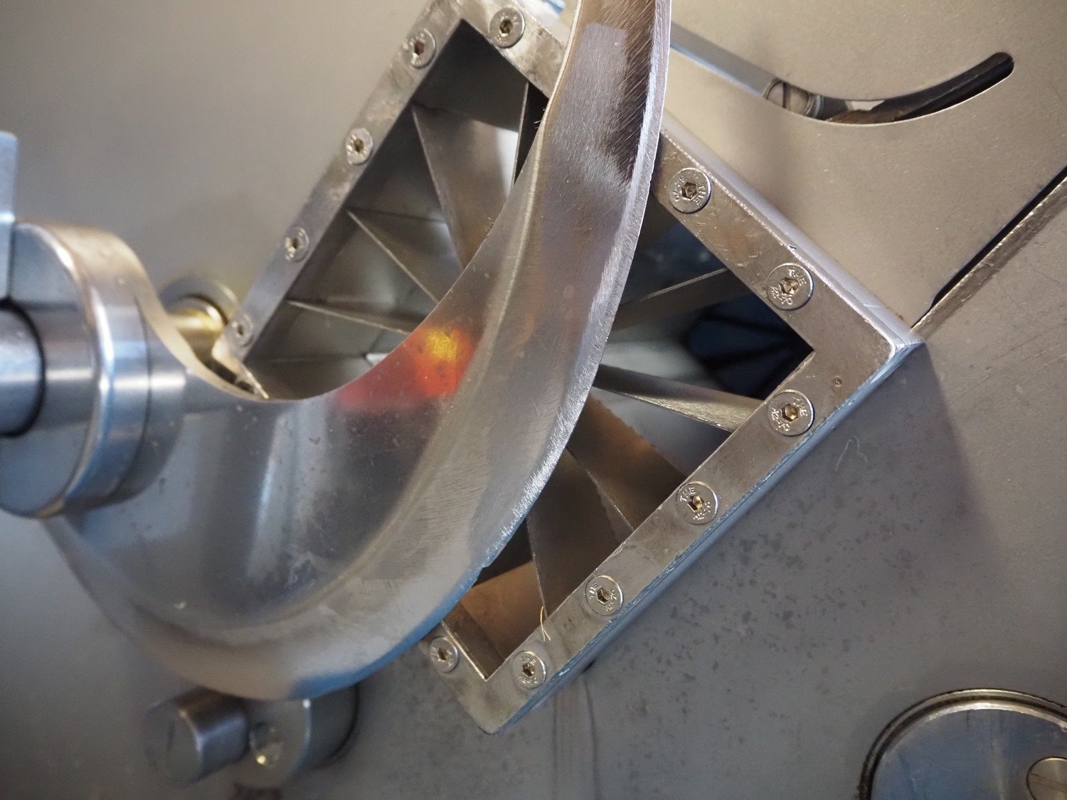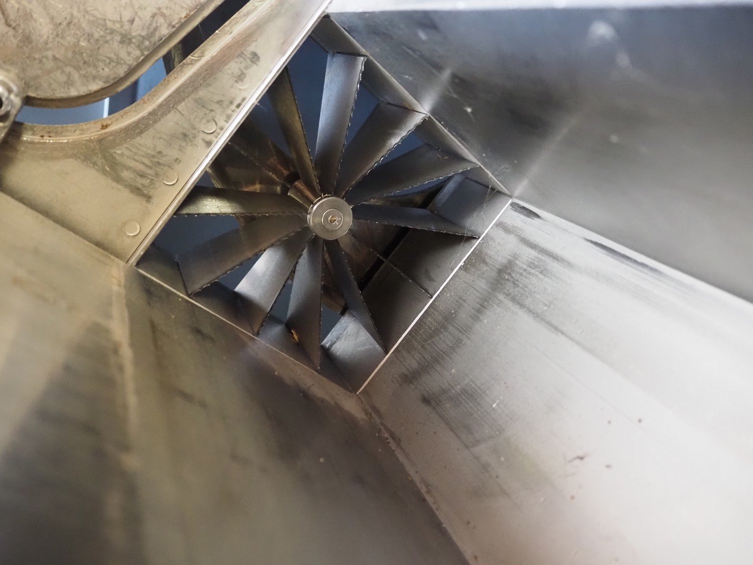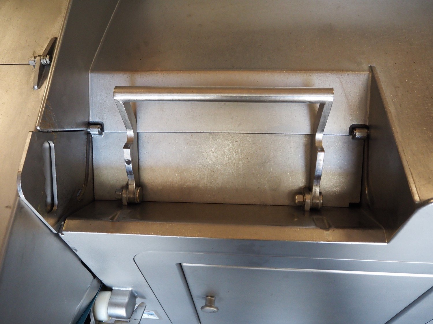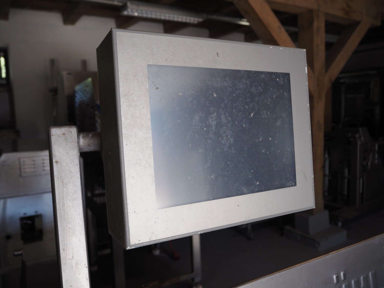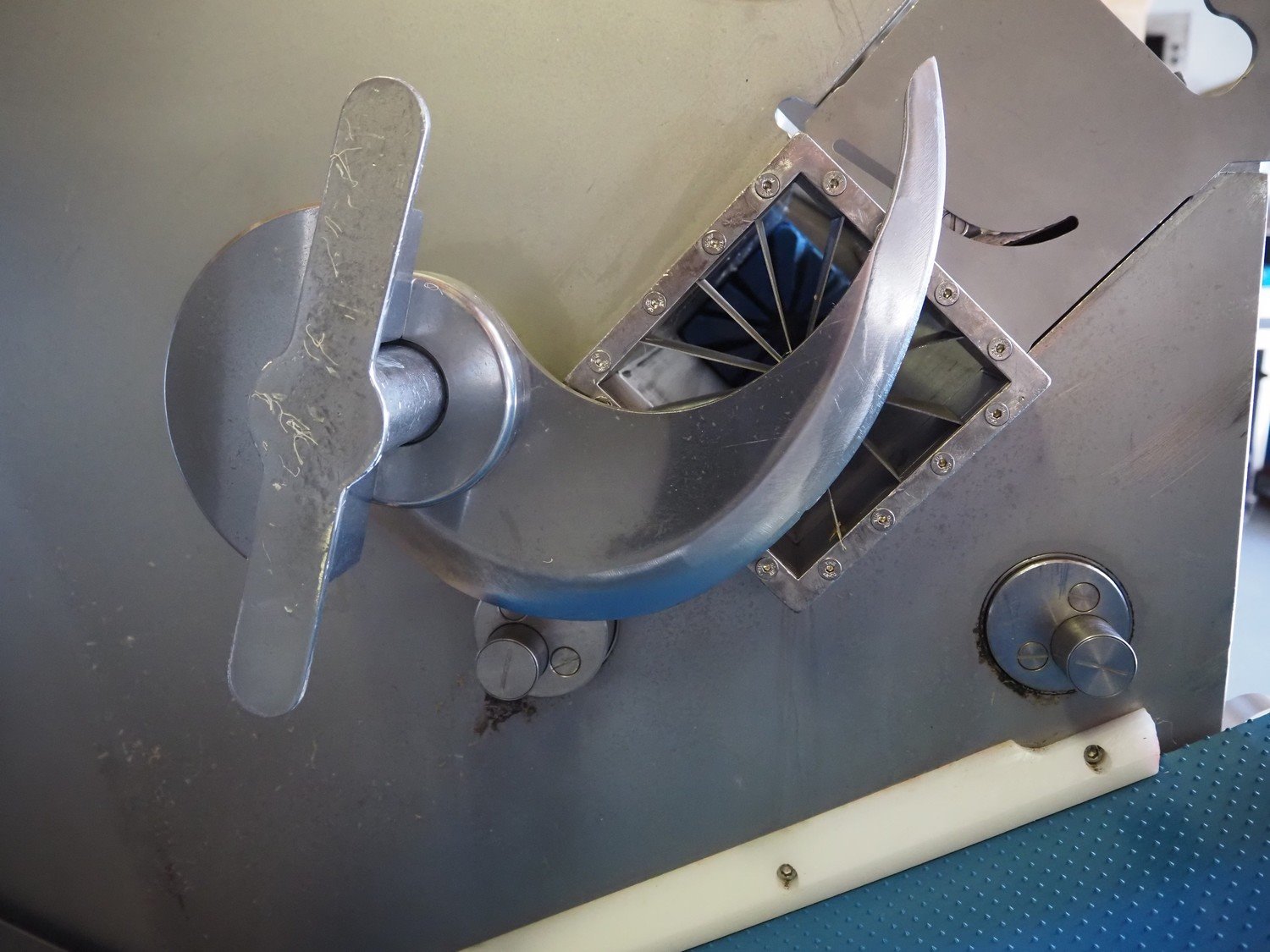 Rühle dicer, type: SR 2 turbo, number: 181, year of construction: 2004, 400 V, 3 Ph, 50 Hz, 16 A, 6.8 kW, chamber dimensions: 145 mm x 145 mm, plastic belt, belt width: 260 mm, total dimensions: 1280 mm x 1600 mm x 1700 mm.