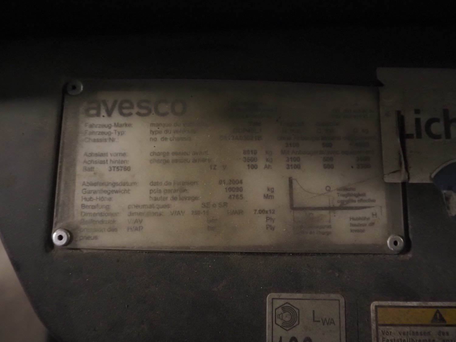 Yale forklift truck, type: GDP40LJ, chassis number: C813A03021B, year of delivery: 2004, weight: 10000 kg, fork dimensions: 2000 mm x 175 mm, total dimensions: 4750 mm x 1370 mm x 2270 mm.