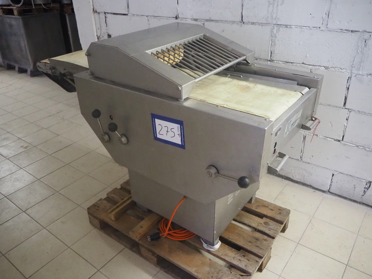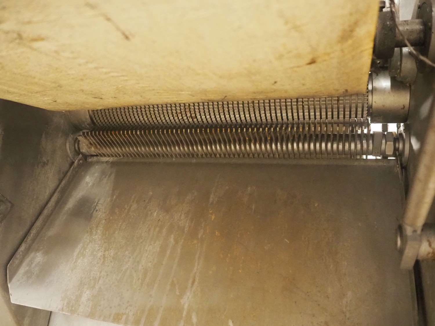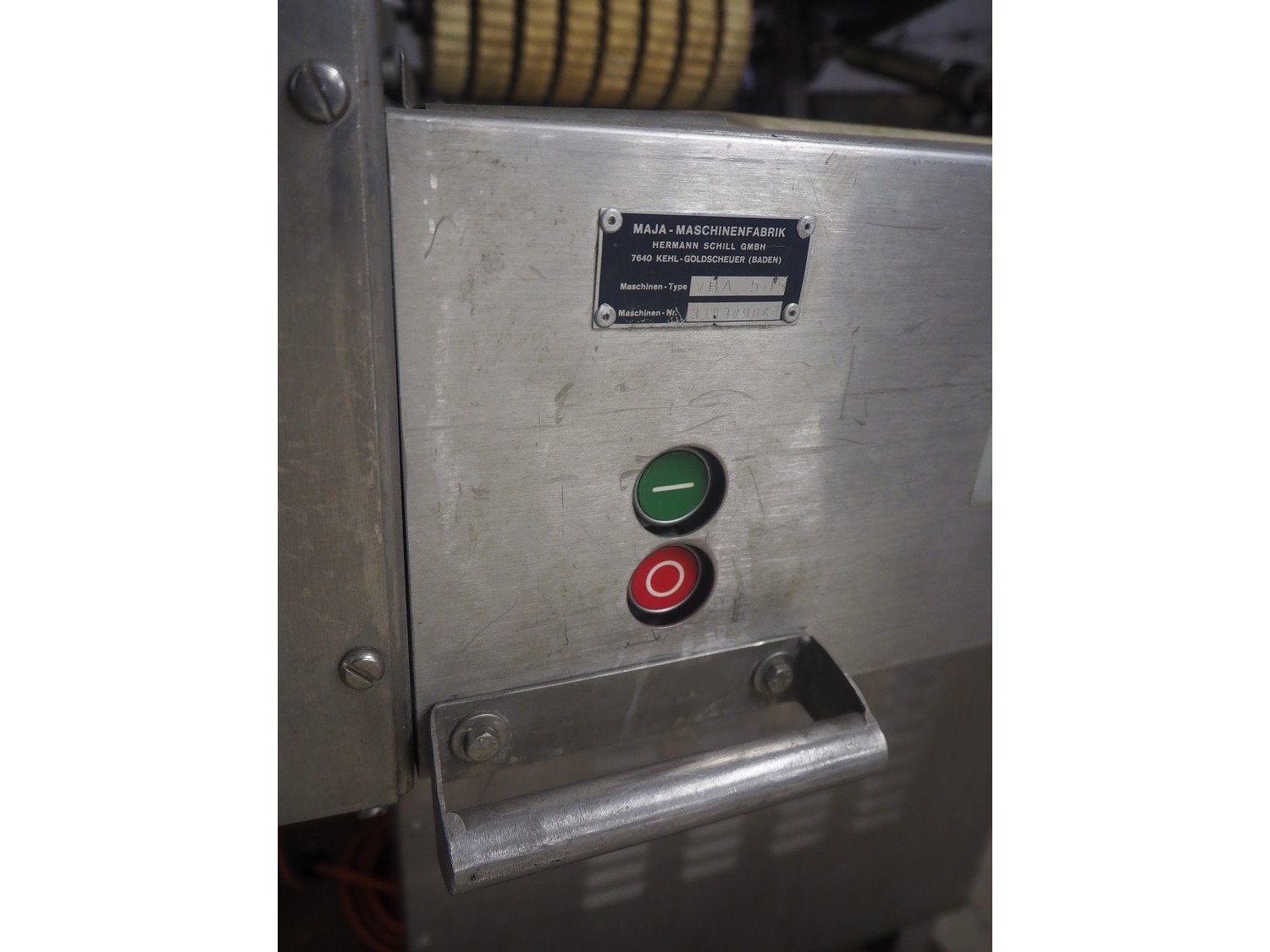 Maja skinning and derinding machine, type: VBA 505, machine number: 338329041, plastic belt, belt width: 380 mm, working width: 420 mm, total dimensions: 1900 mm x 900 mm x 1750 mm.