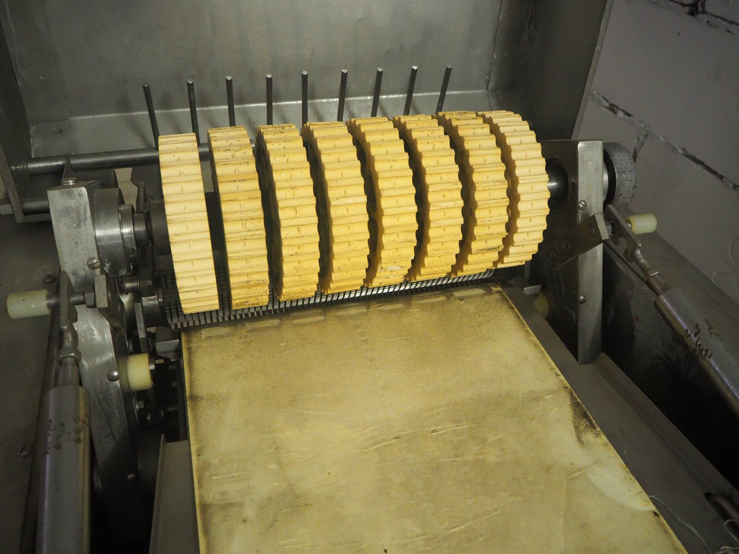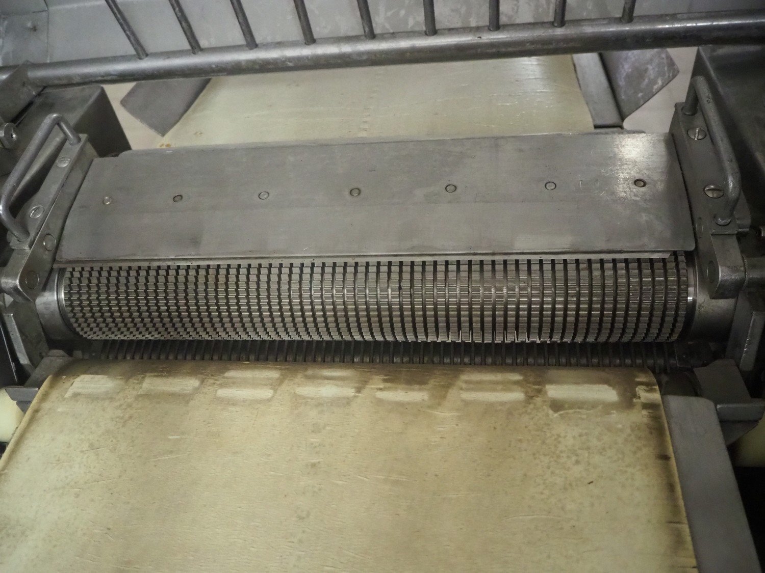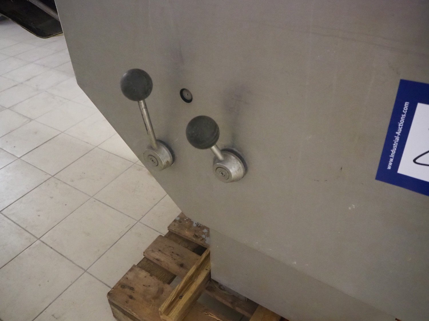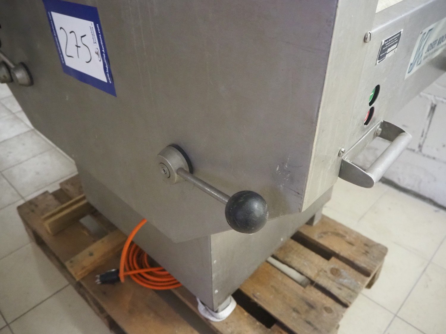 Maja skinning and derinding machine, type: VBA 505, machine number: 338329041, plastic belt, belt width: 380 mm, working width: 420 mm, total dimensions: 1900 mm x 900 mm x 1750 mm.