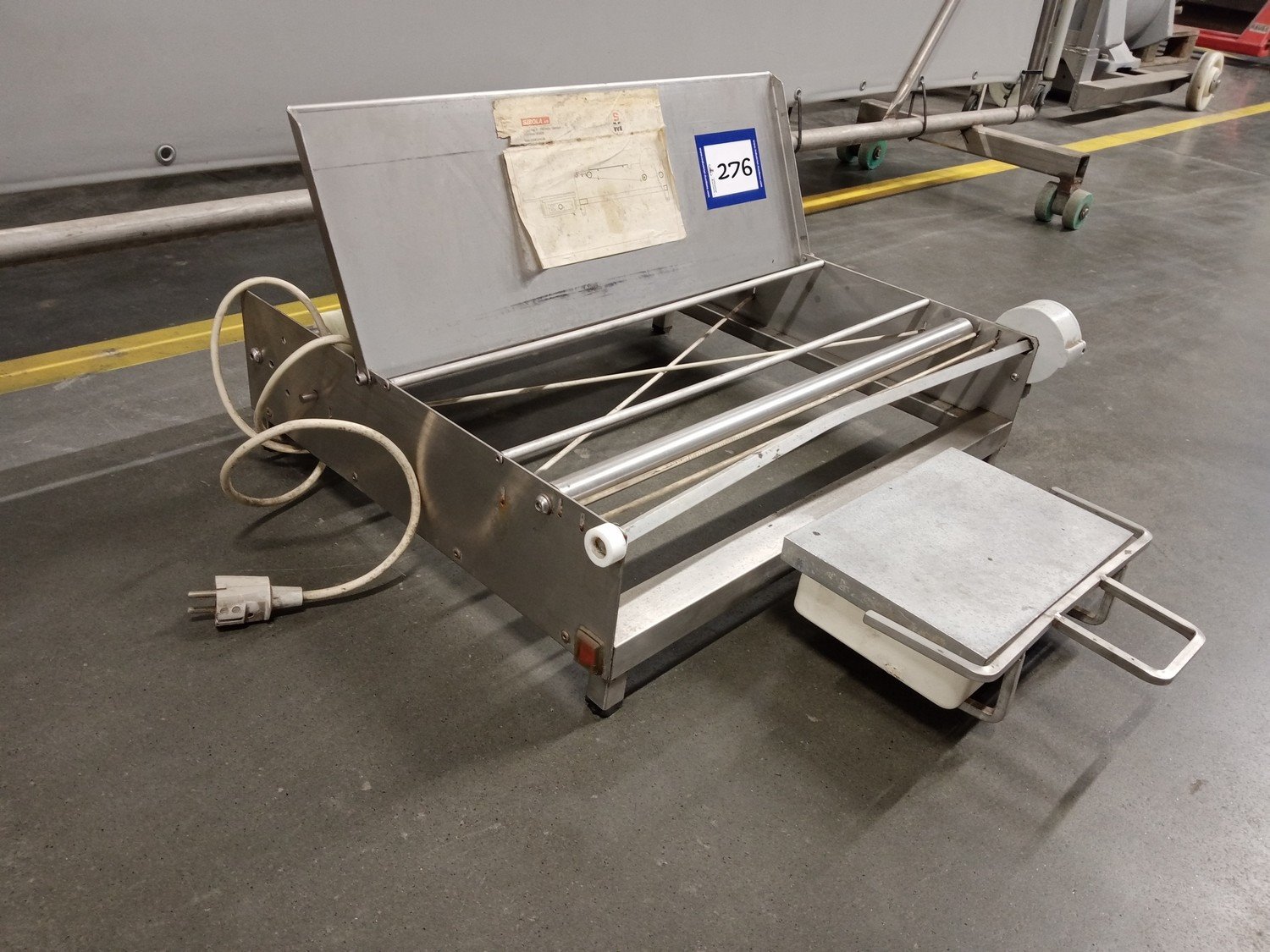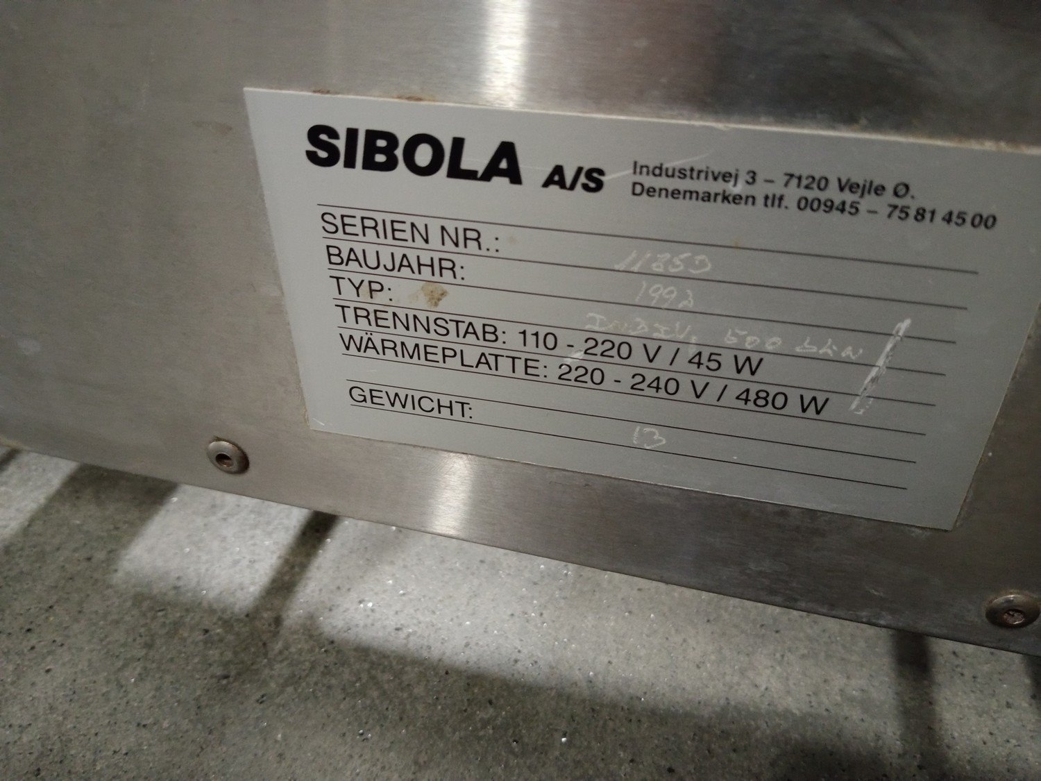 Sibola A/S sealing machine, type: 500 BKW, serial number: 11850, year of construction: 1993, 240 V, 50 Hz, 3 Ph, dimensions: 800 mm x 650 mm x 340 mm.