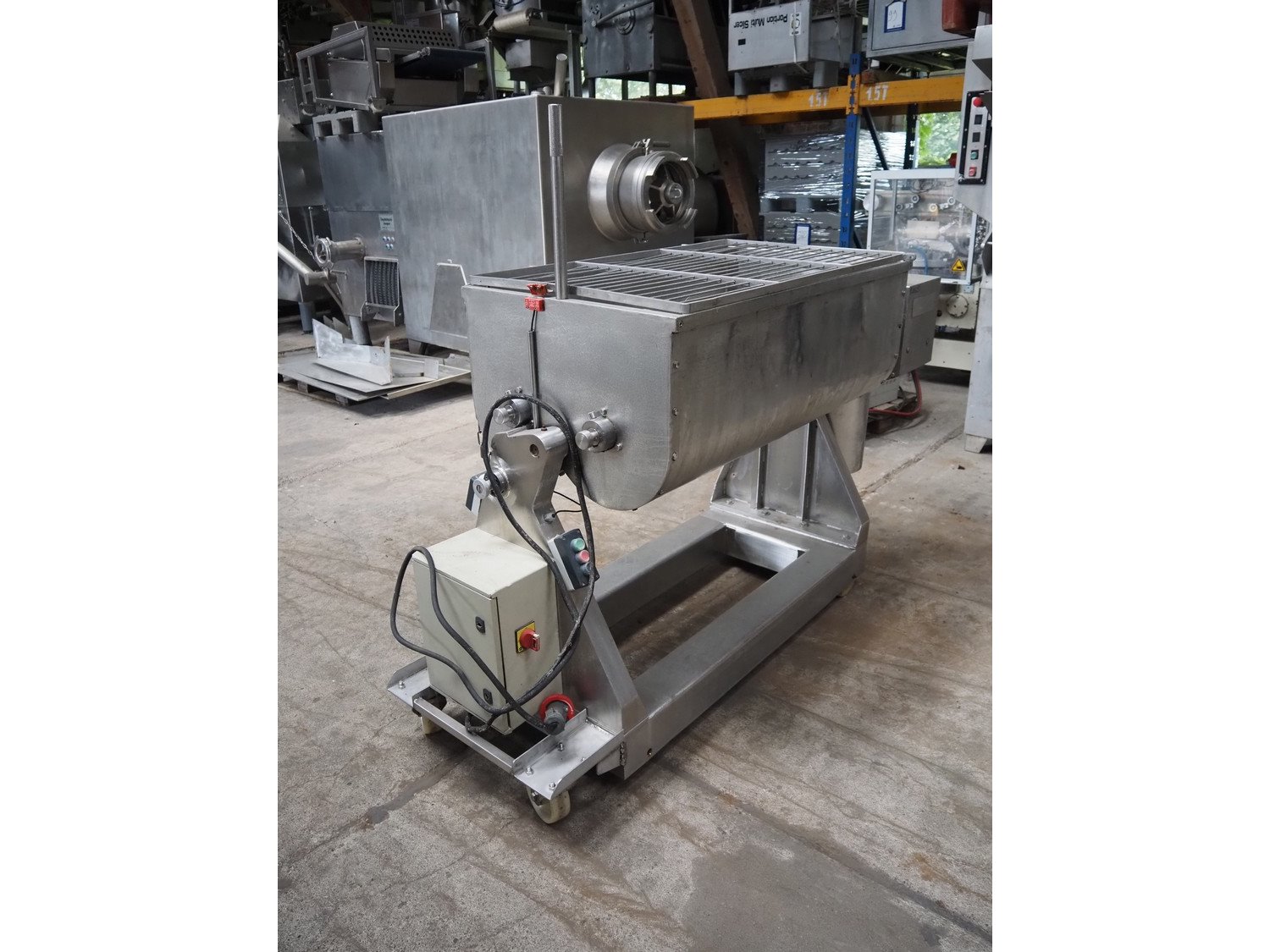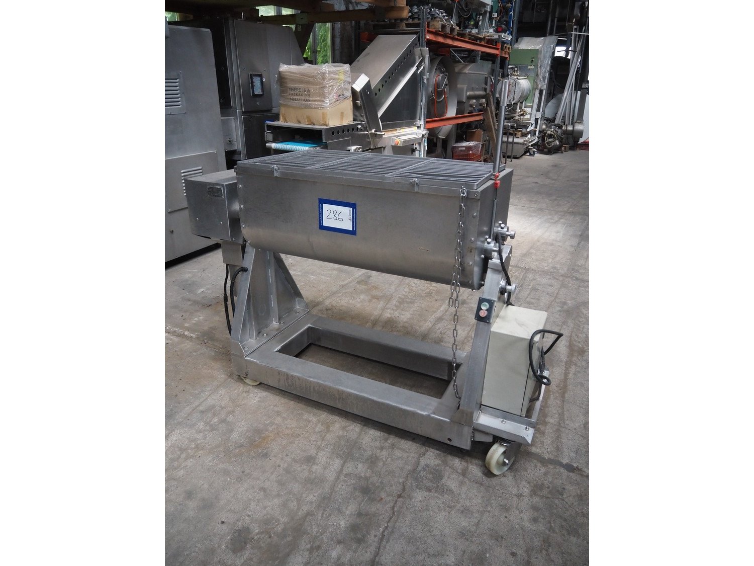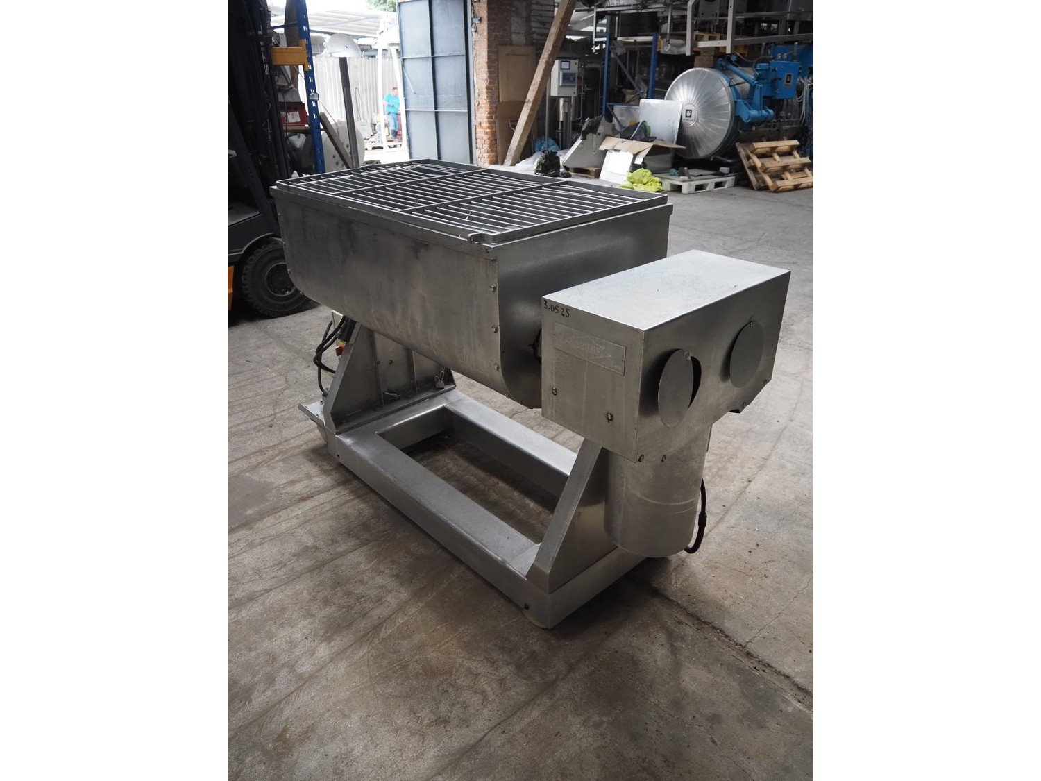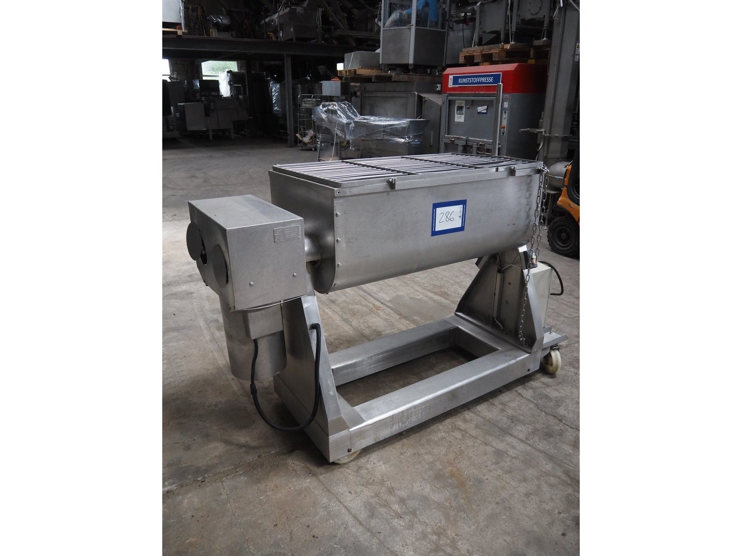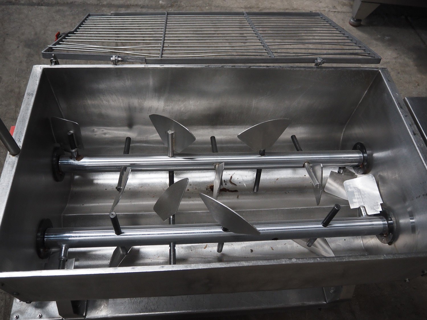 Velati mobile double shaft paddle mixer, number: 22130, year of construction: 11. 2002, volume: 300 liter, total dimensions: 1950 mm x 650 mm x 1650 mm.